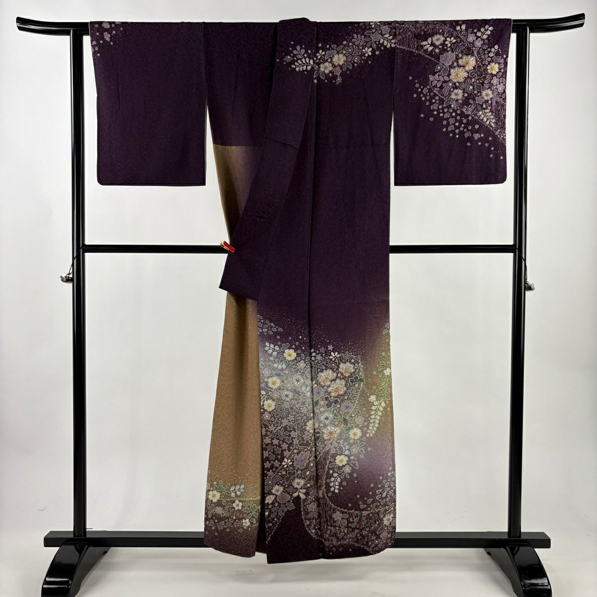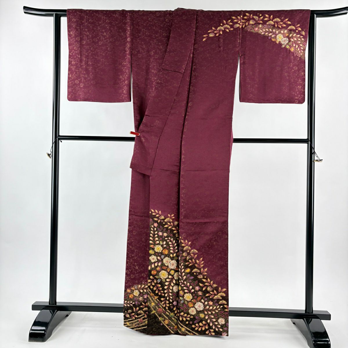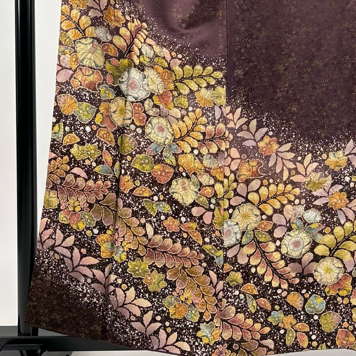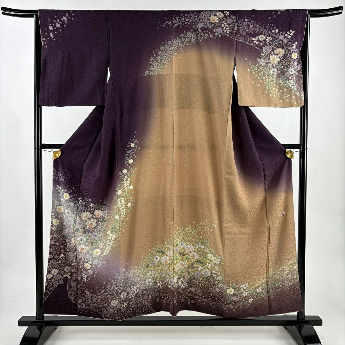 訪問着 身丈159cm 裄丈65.5cm M 袷 翠山工房 やまと 落款あり 辻が花 金通し 茶紫 正絹 逸品