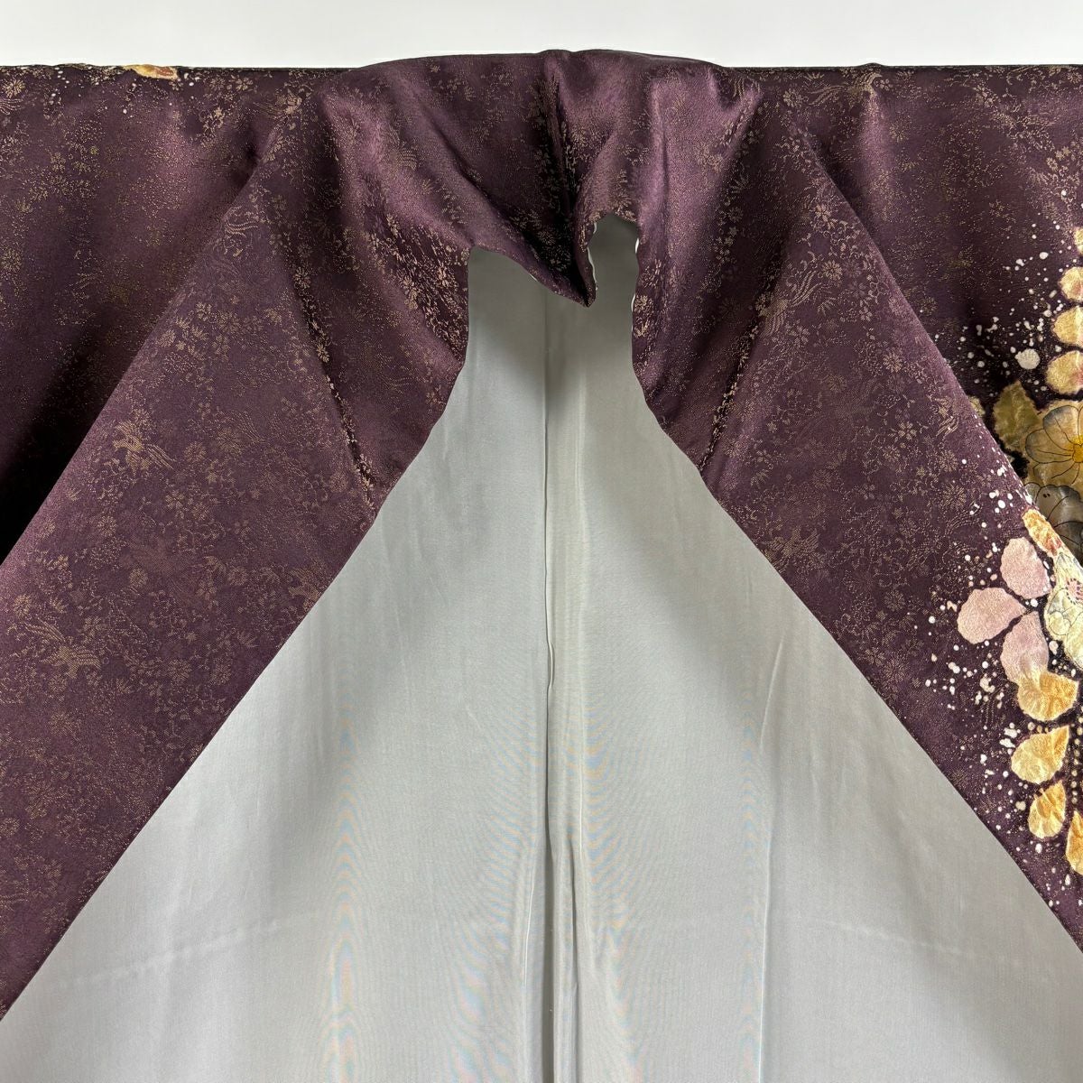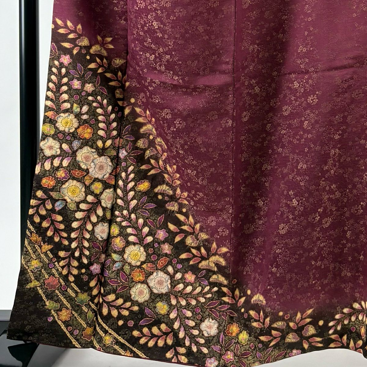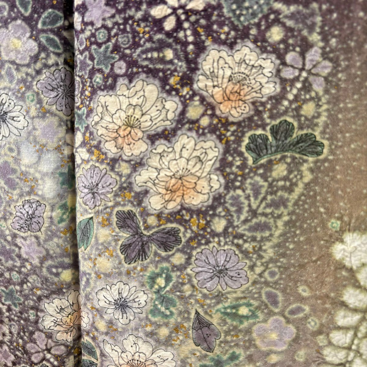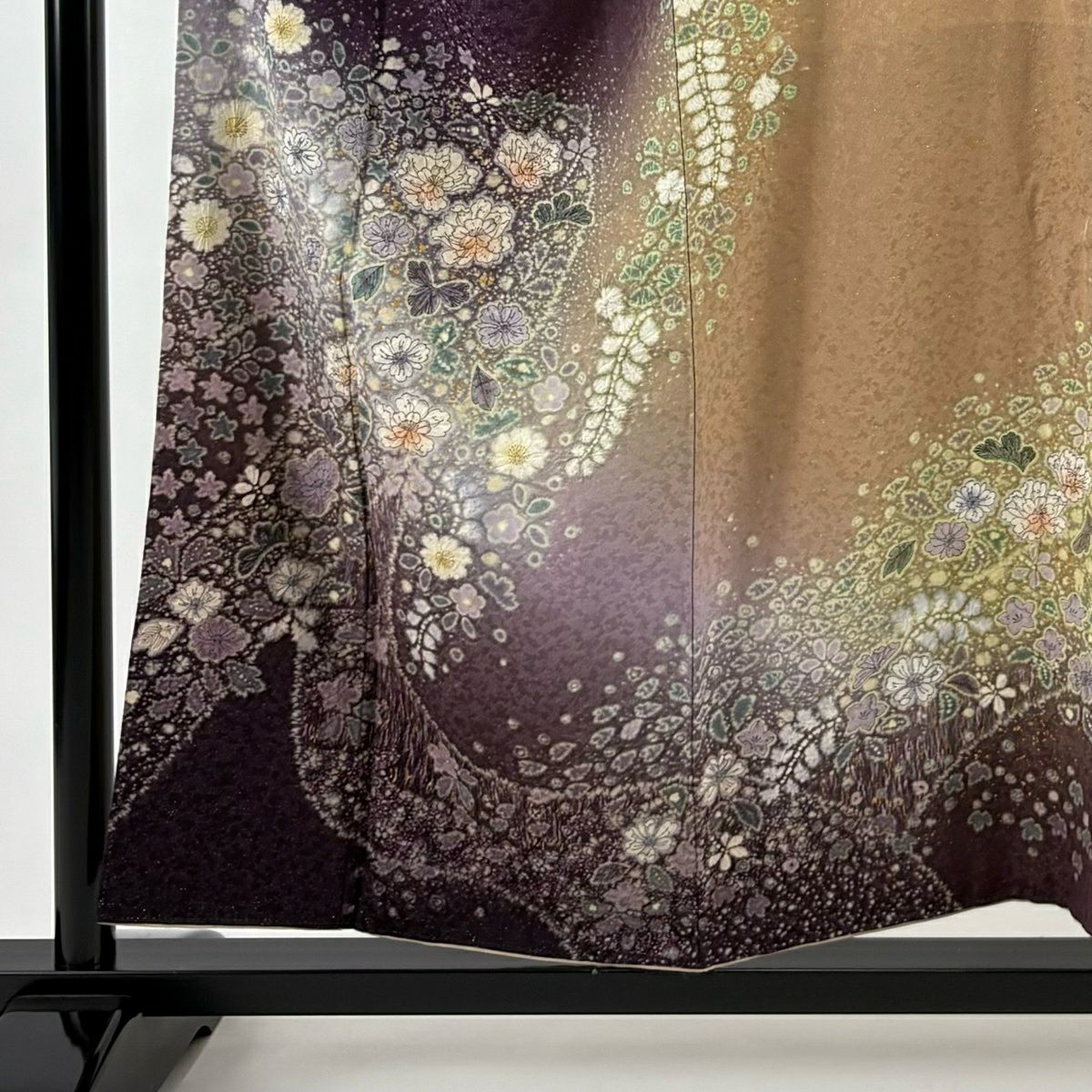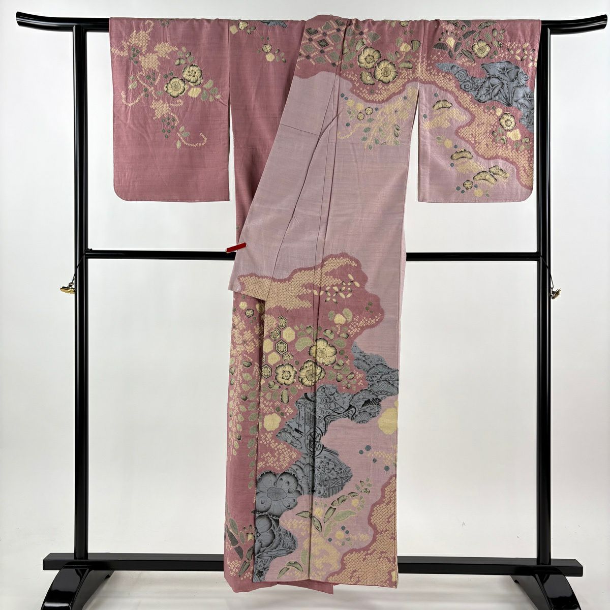 訪問着 身丈159cm 裄丈65.5cm M 袷 翠山工房 やまと 落款あり 辻が花 金通し 茶紫 正絹 逸品