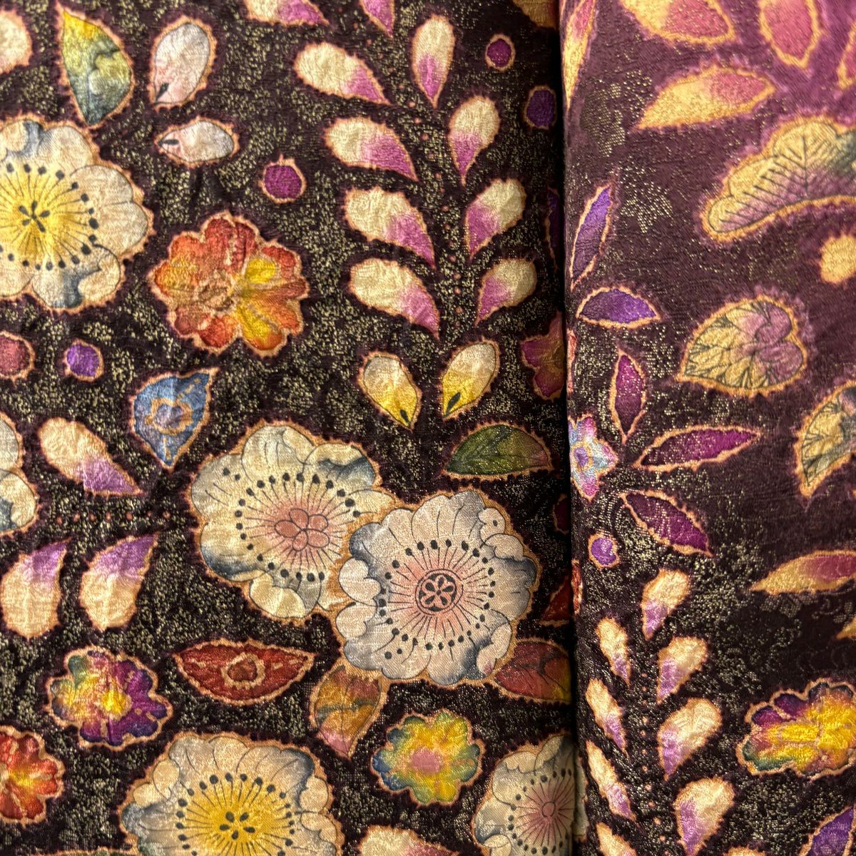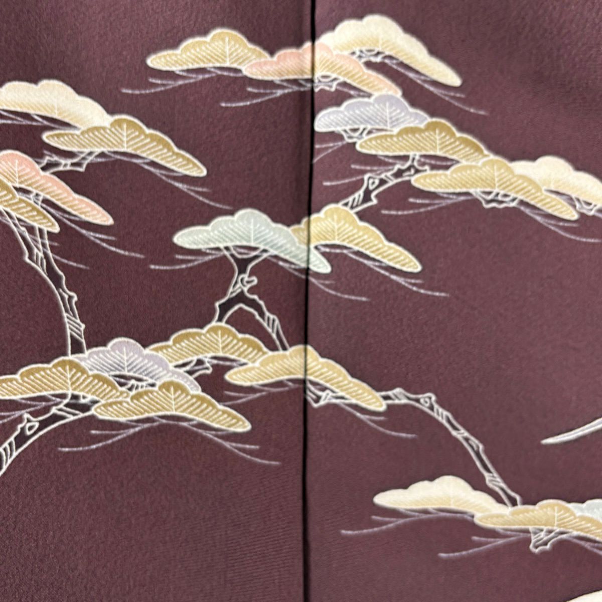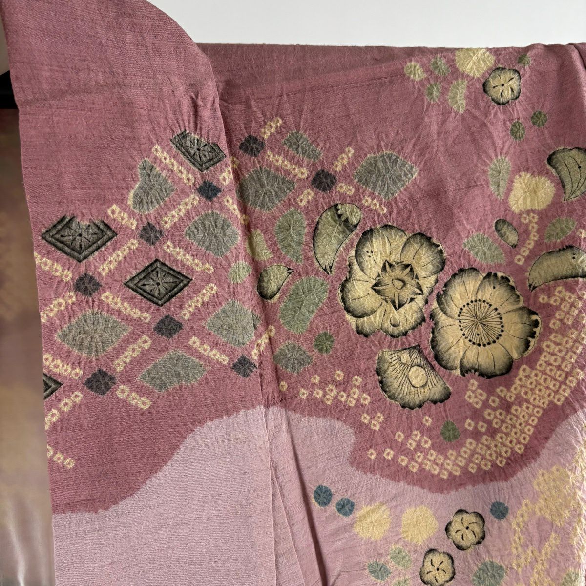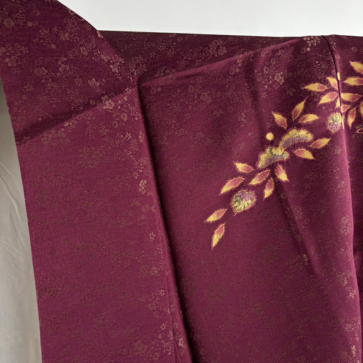 訪問着 身丈159cm 裄丈65.5cm M 袷 翠山工房 やまと 落款あり 辻が花 金通し 茶紫 正絹 逸品