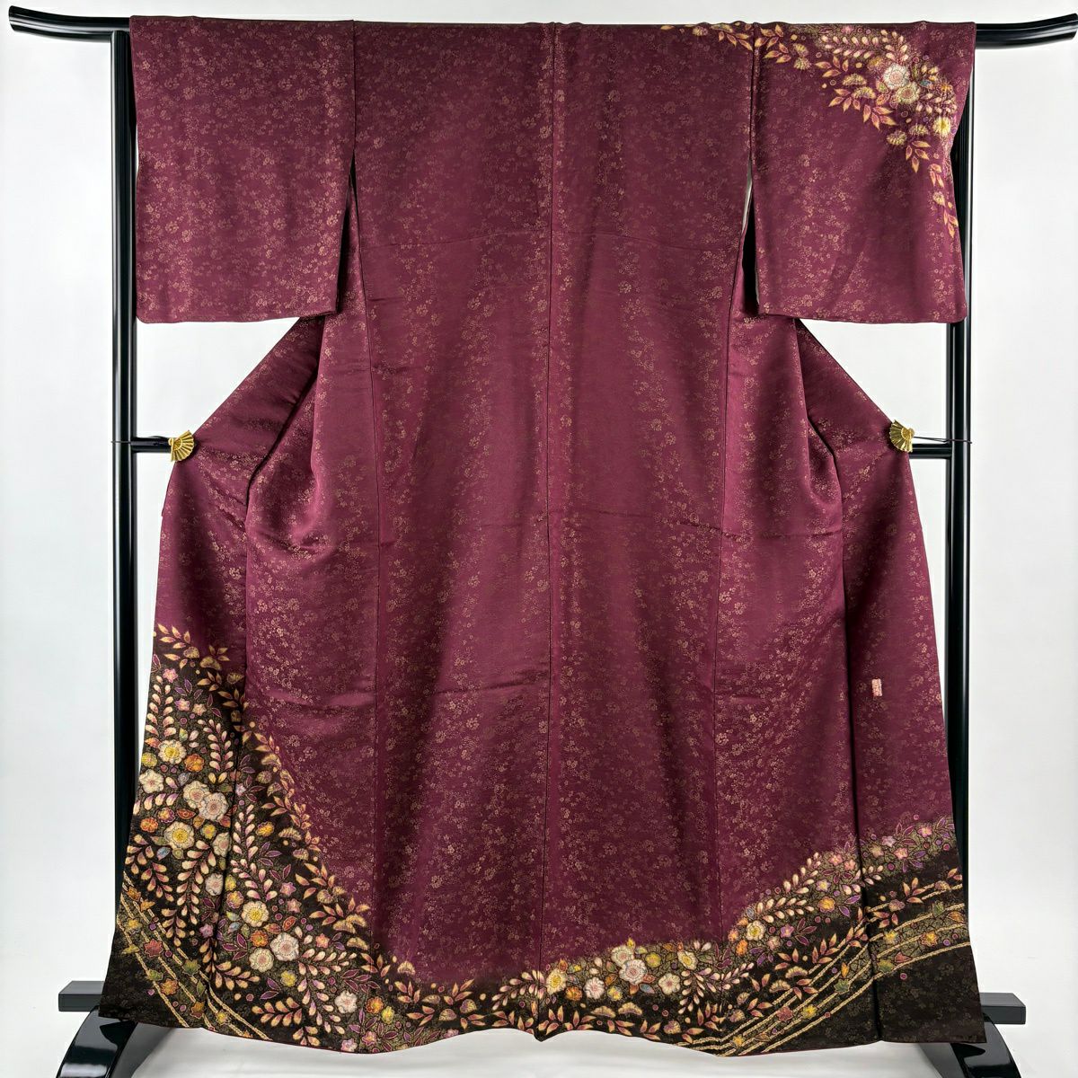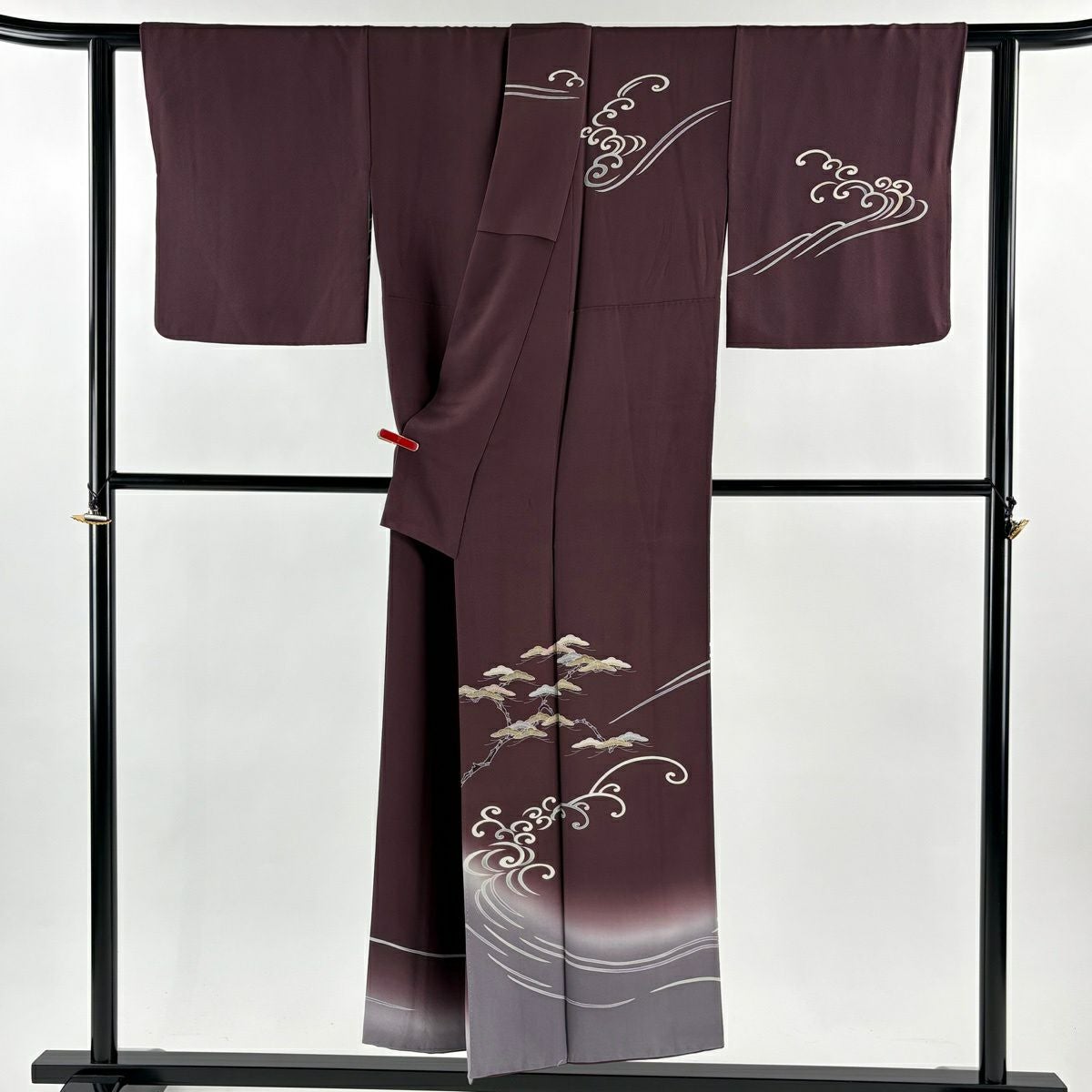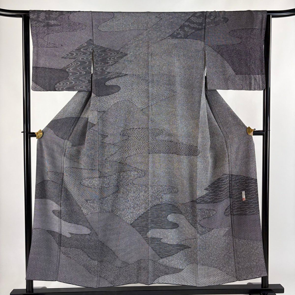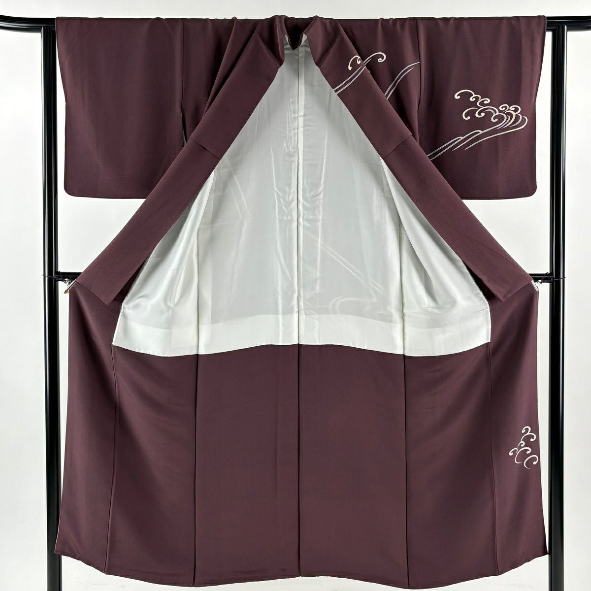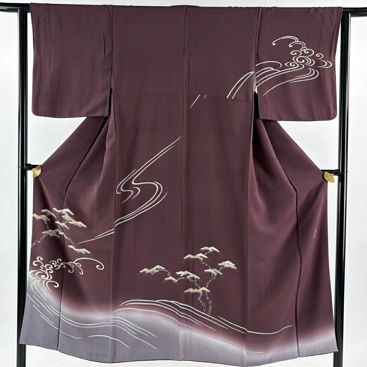 付下げ 身丈161.5cm 裄丈65cm M 袷 人間国宝 中村勇二郎 落款あり 流水 寄せ柄 濃紫 正絹 逸品