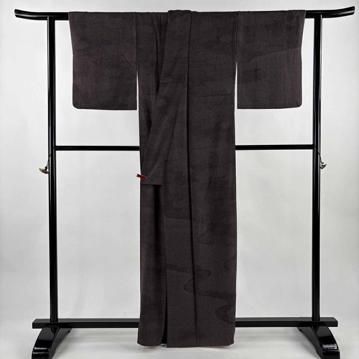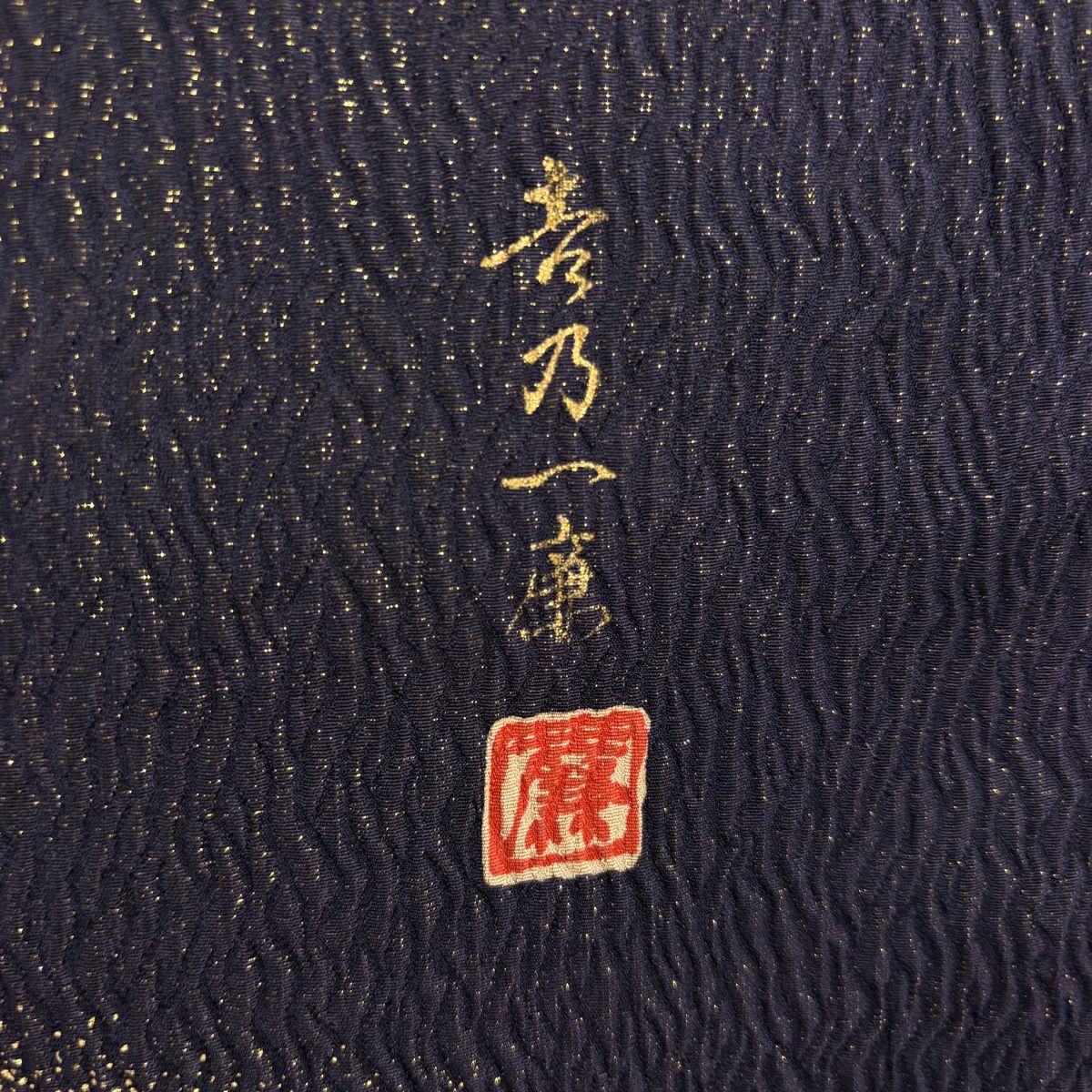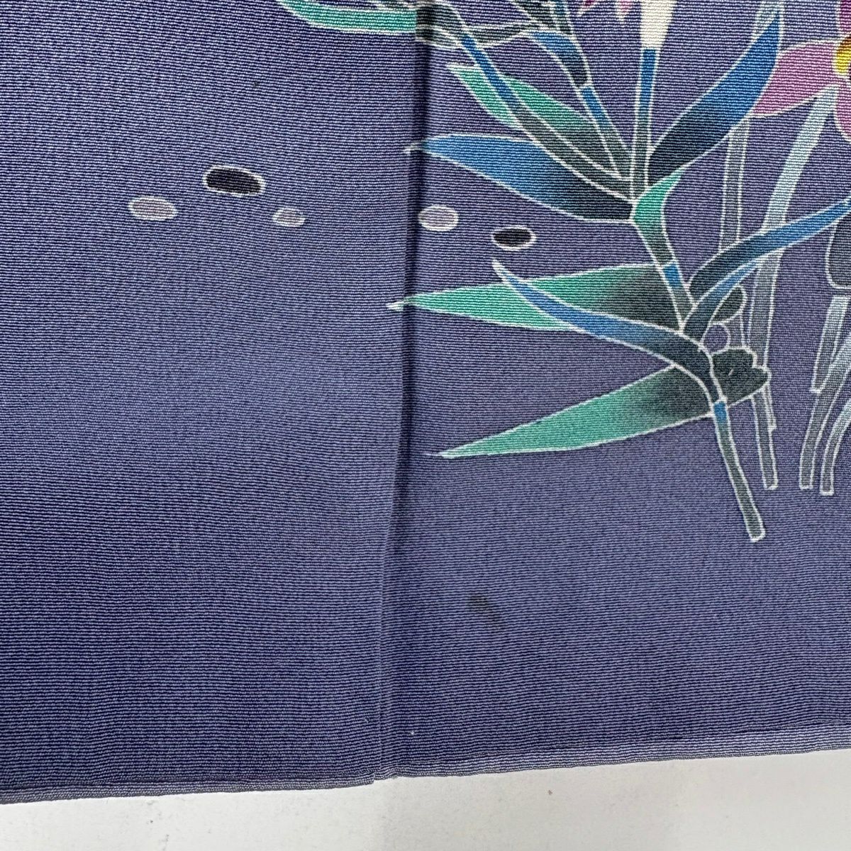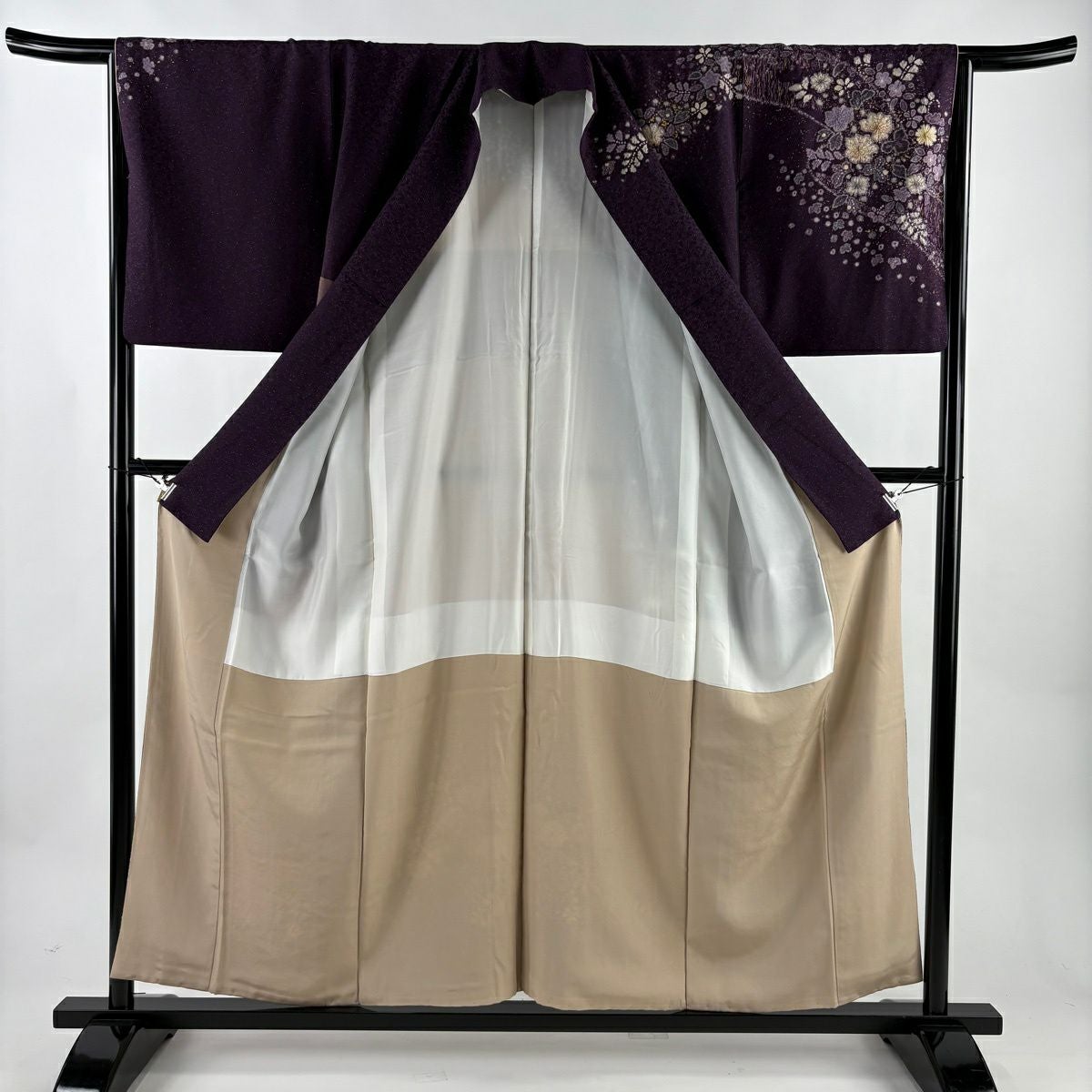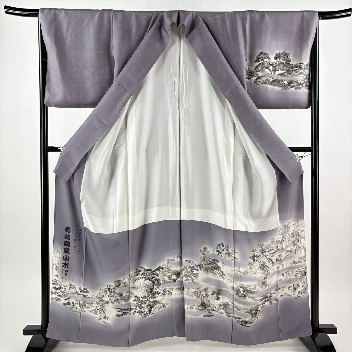 付下げ 身丈161.5cm 裄丈65cm M 袷 人間国宝 中村勇二郎 落款あり 流水 寄せ柄 濃紫 正絹 逸品