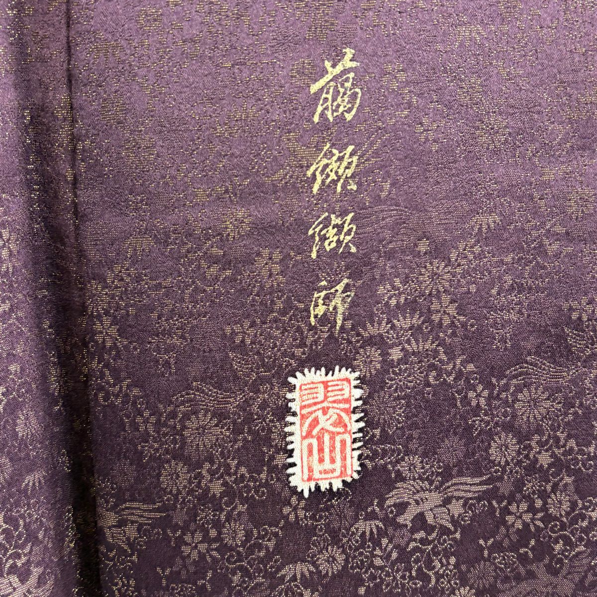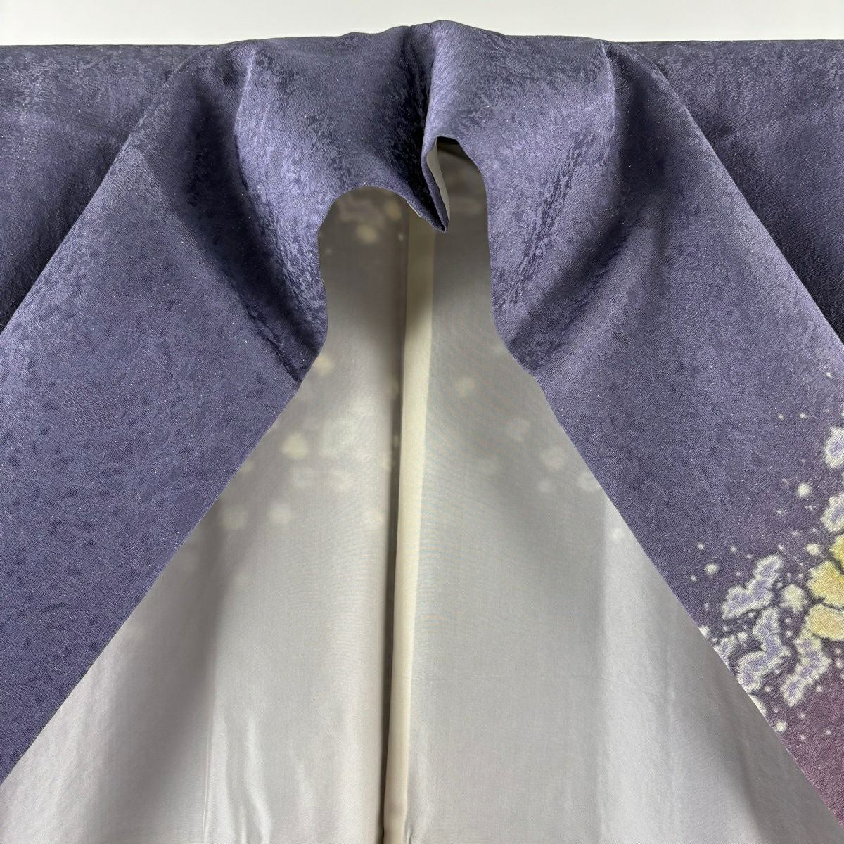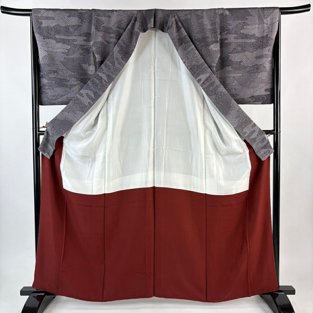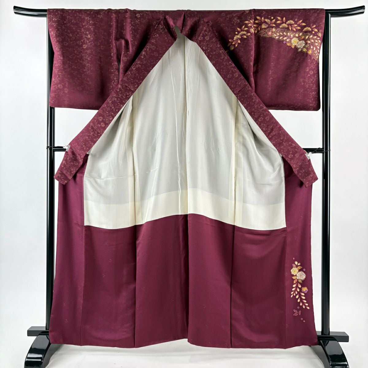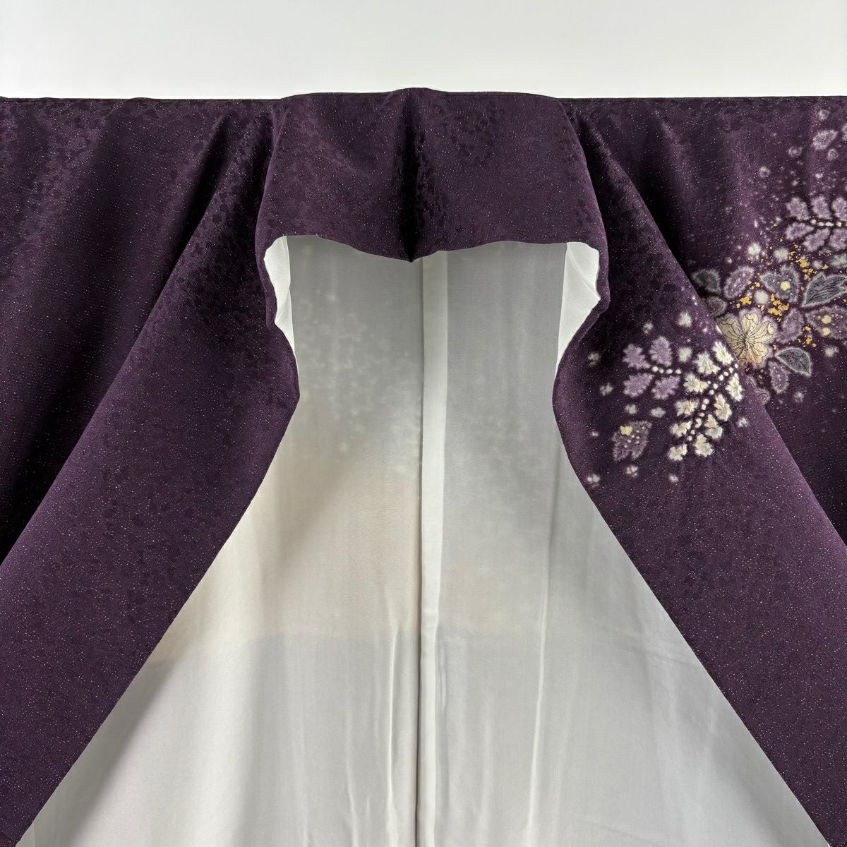 付下げ 身丈161.5cm 裄丈65cm M 袷 人間国宝 中村勇二郎 落款あり 流水 寄せ柄 濃紫 正絹 逸品