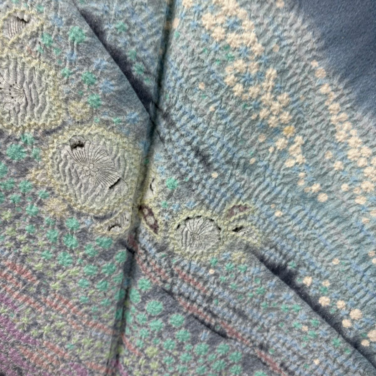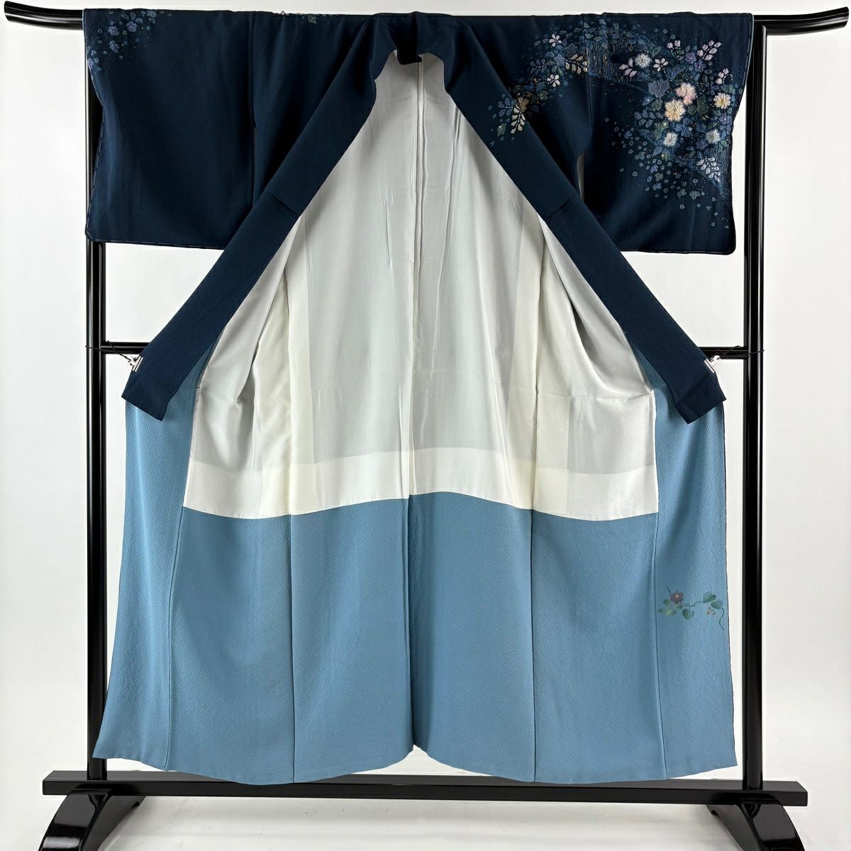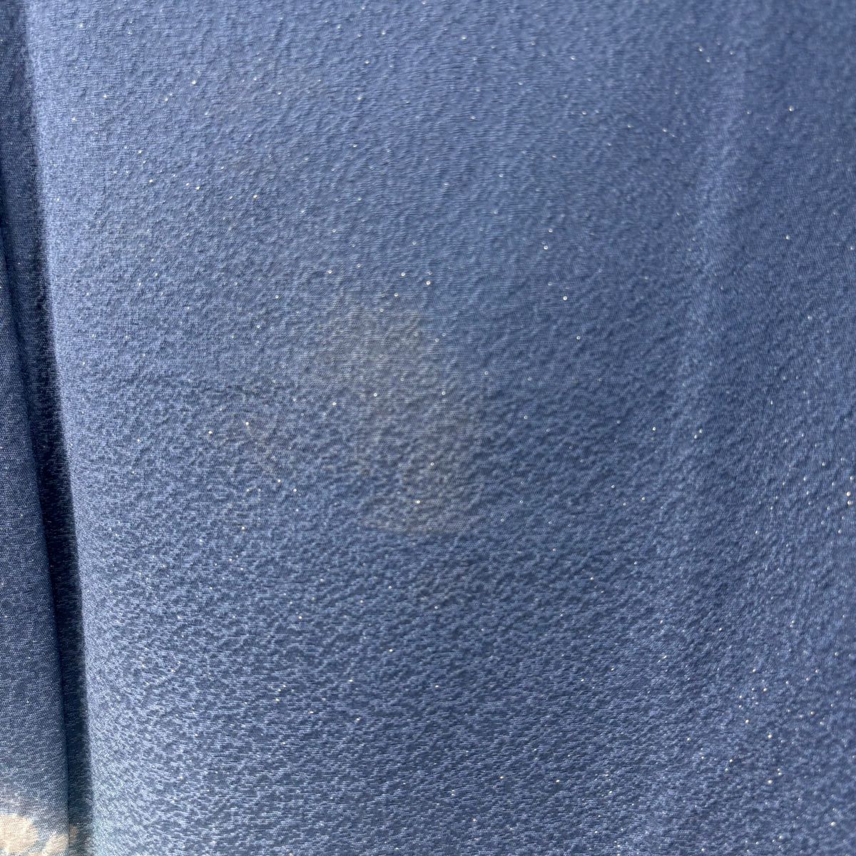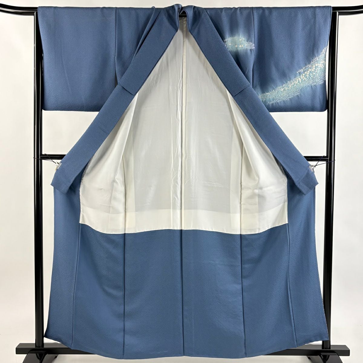 訪問着 身丈159cm 裄丈64.5cm M 袷 滝泰 落款あり 草花 霞 銀通し ぼかし 青灰色 正絹 逸品
