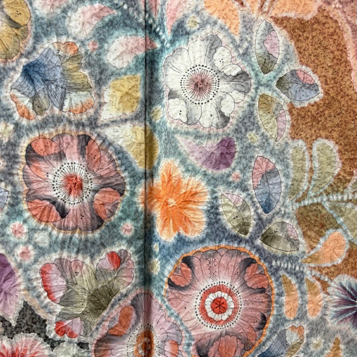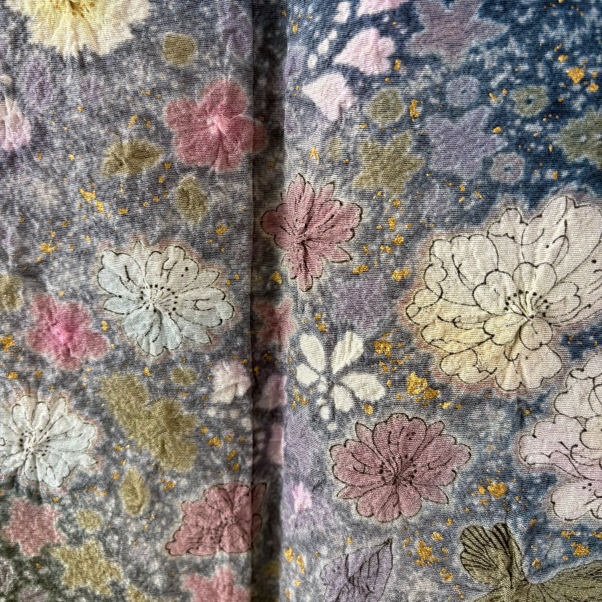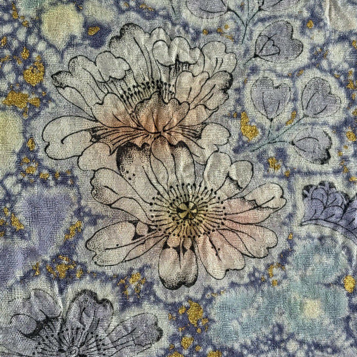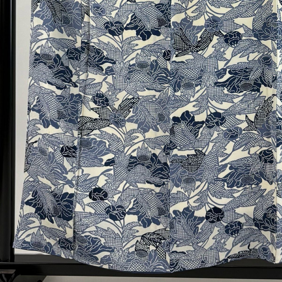 訪問着 身丈159cm 裄丈64.5cm M 袷 滝泰 落款あり 草花 霞 銀通し ぼかし 青灰色 正絹 逸品