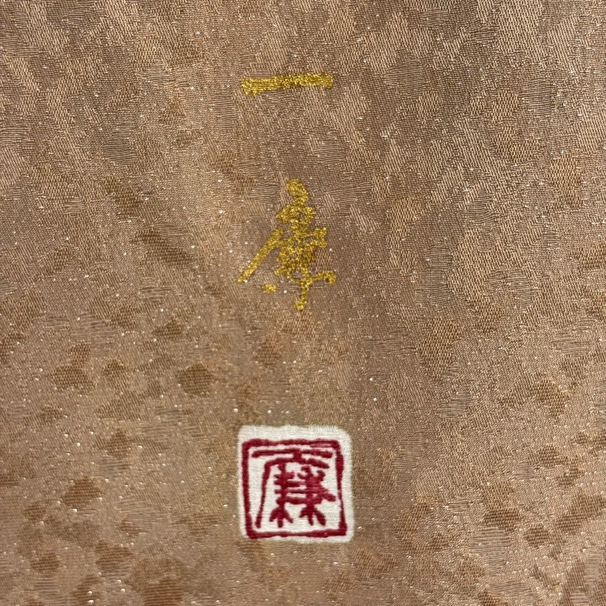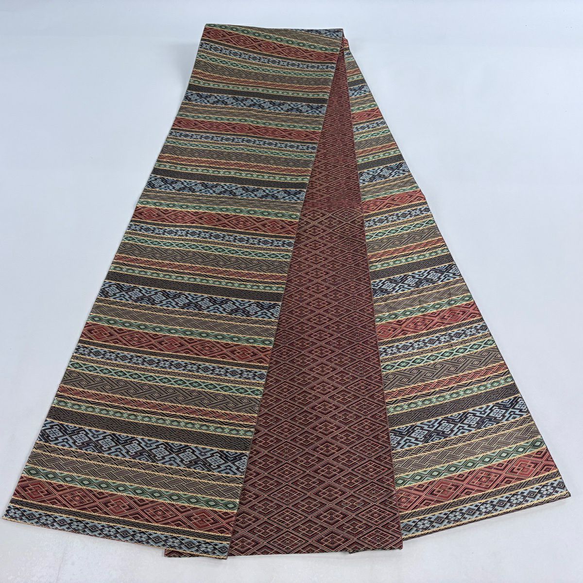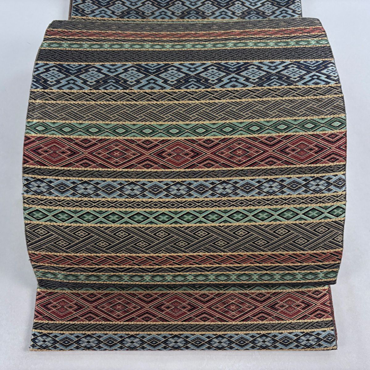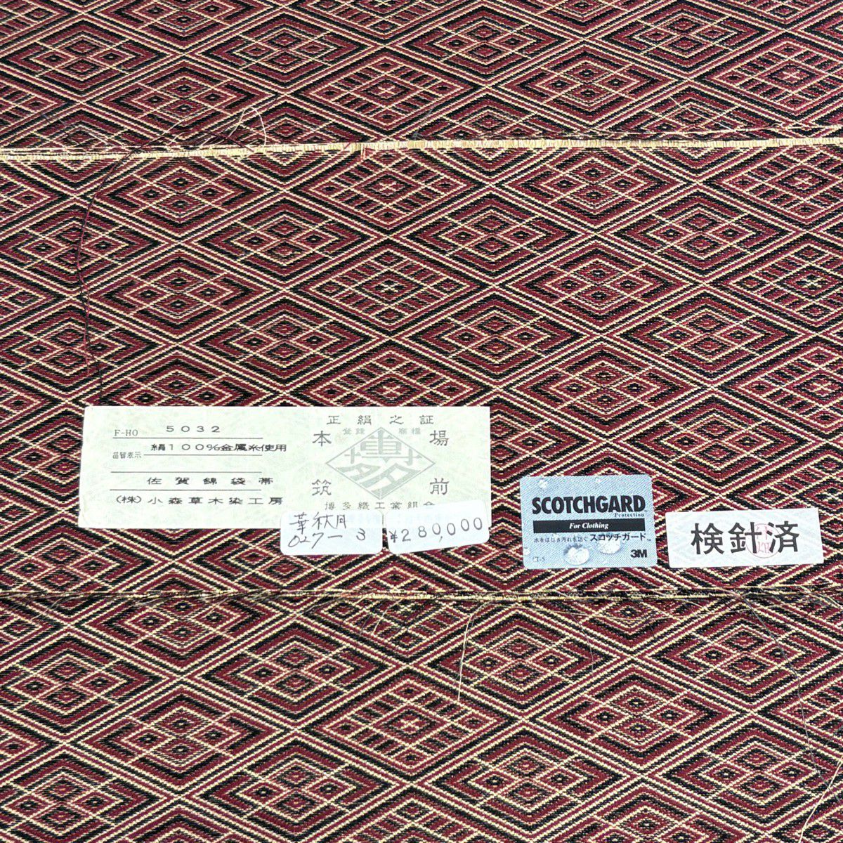 【美品】 袋帯 逸品 落款あり 証紙あり 小森草木染工房 博多織 佐賀錦 段縞 菱 箔 金糸 灰色 全通 正絹