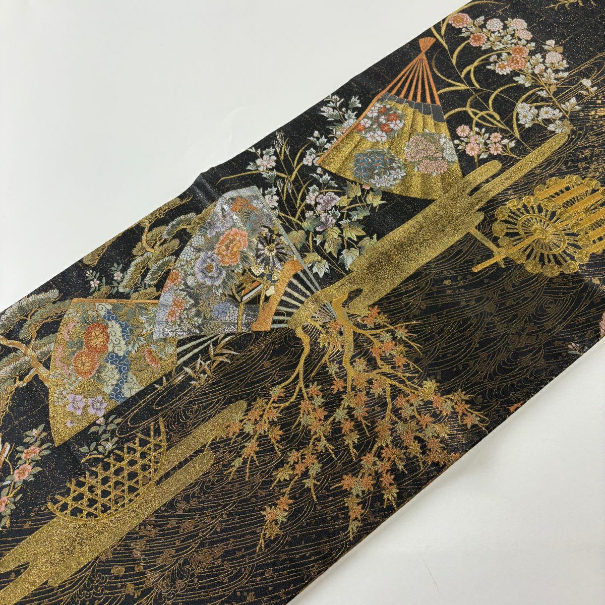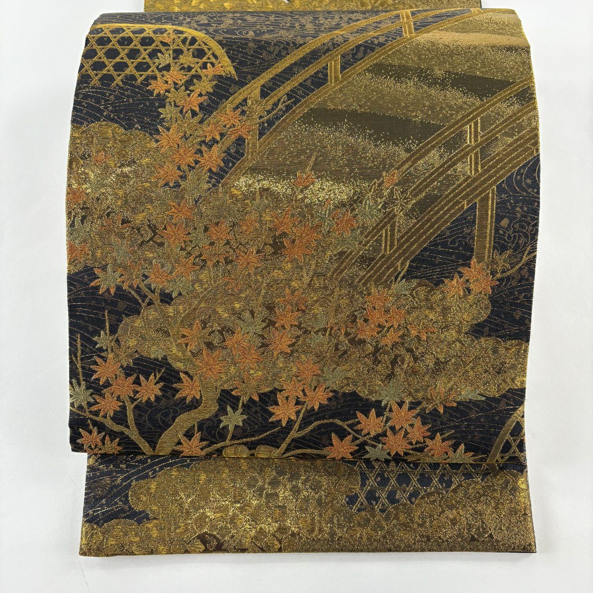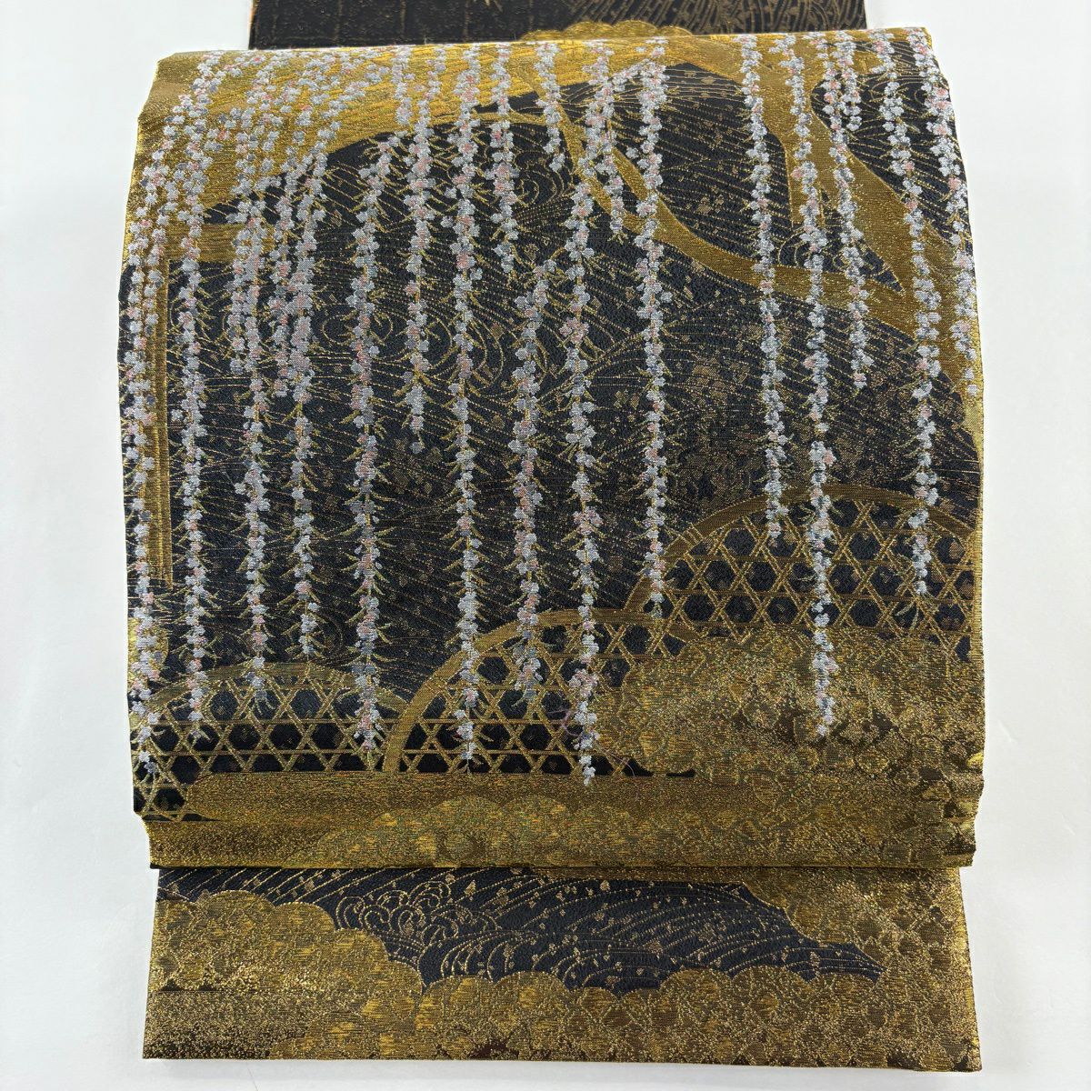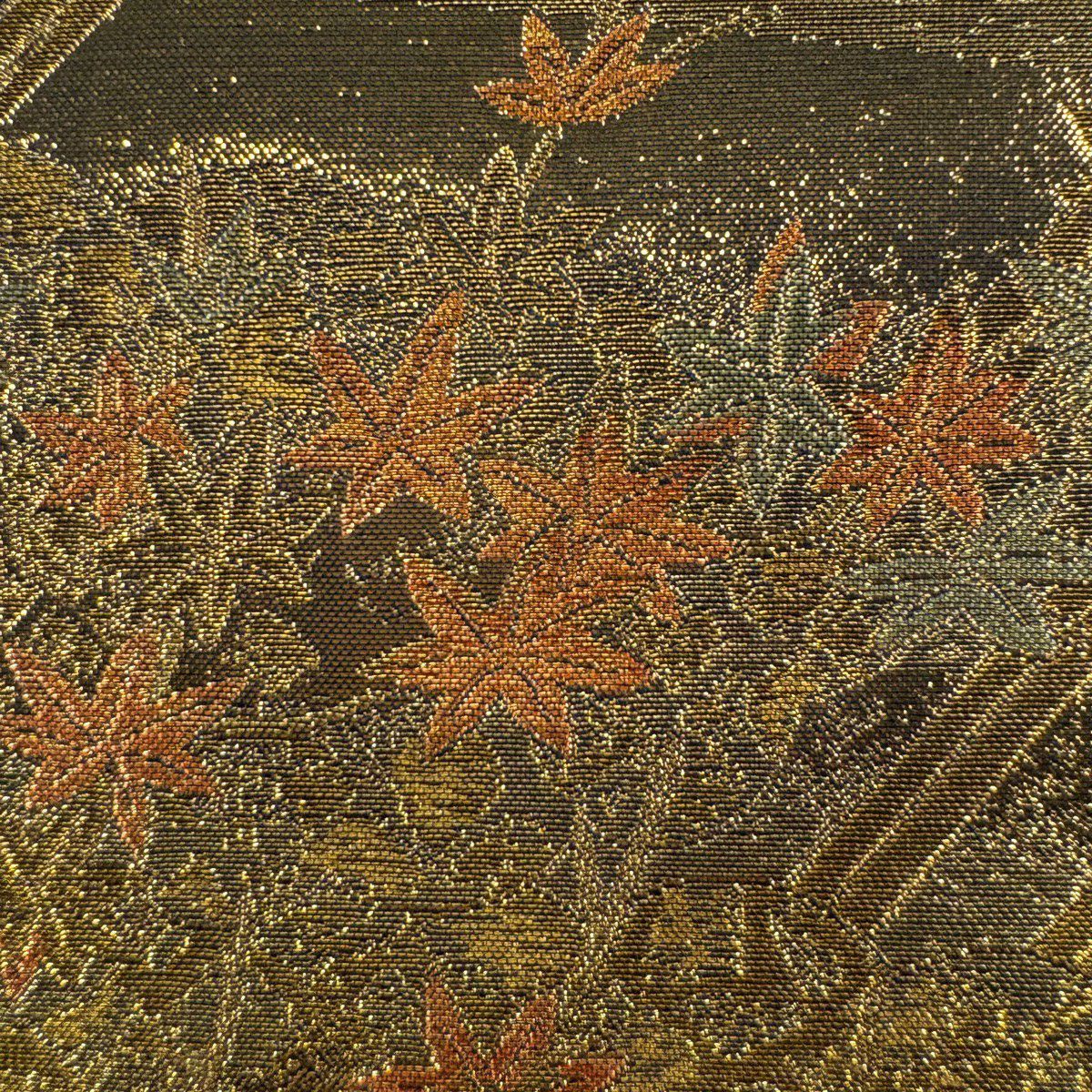 【美品】 袋帯 逸品 落款あり 証紙あり 小森草木染工房 博多織 佐賀錦 段縞 菱 箔 金糸 灰色 全通 正絹