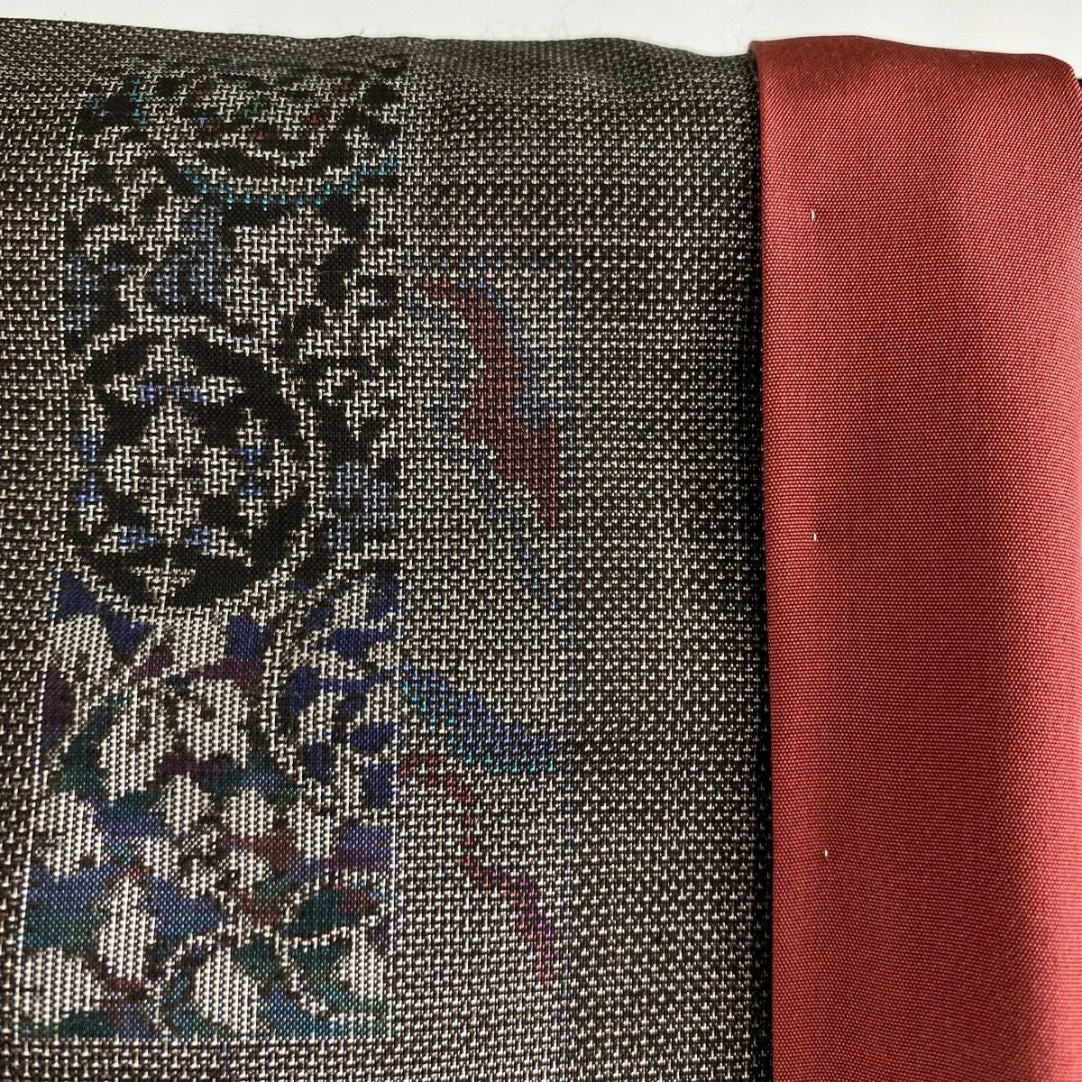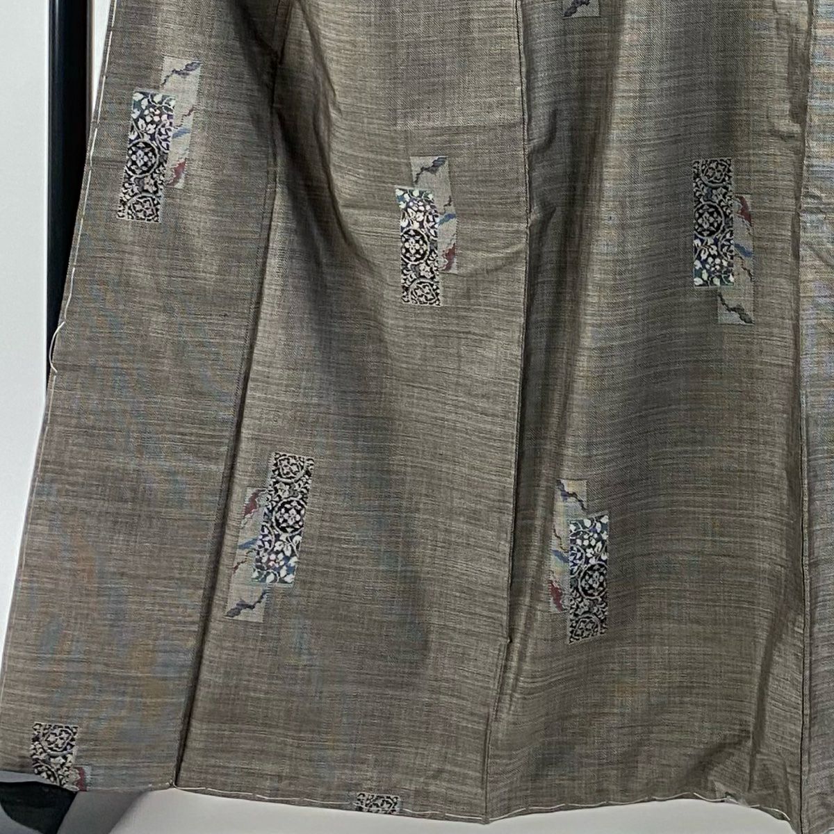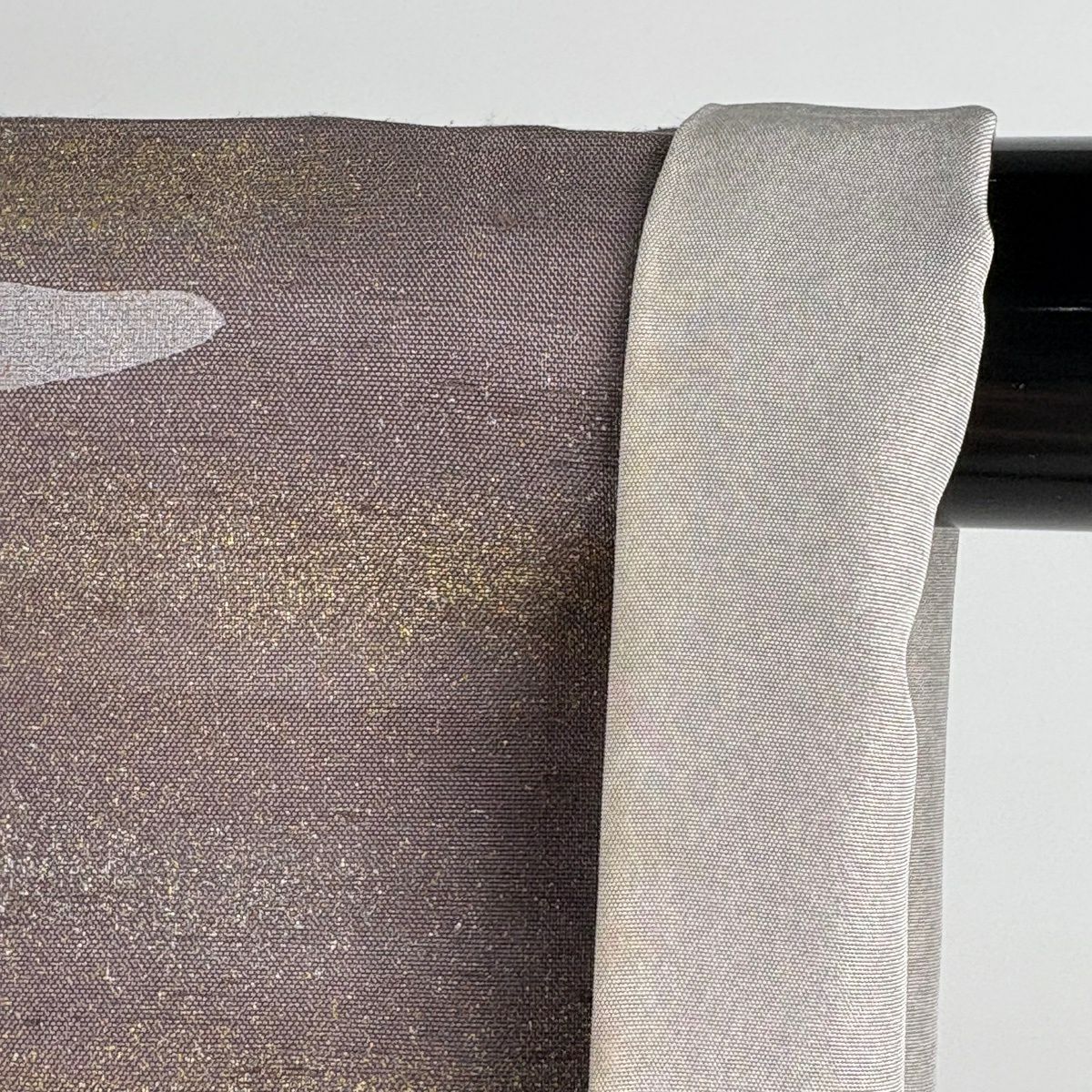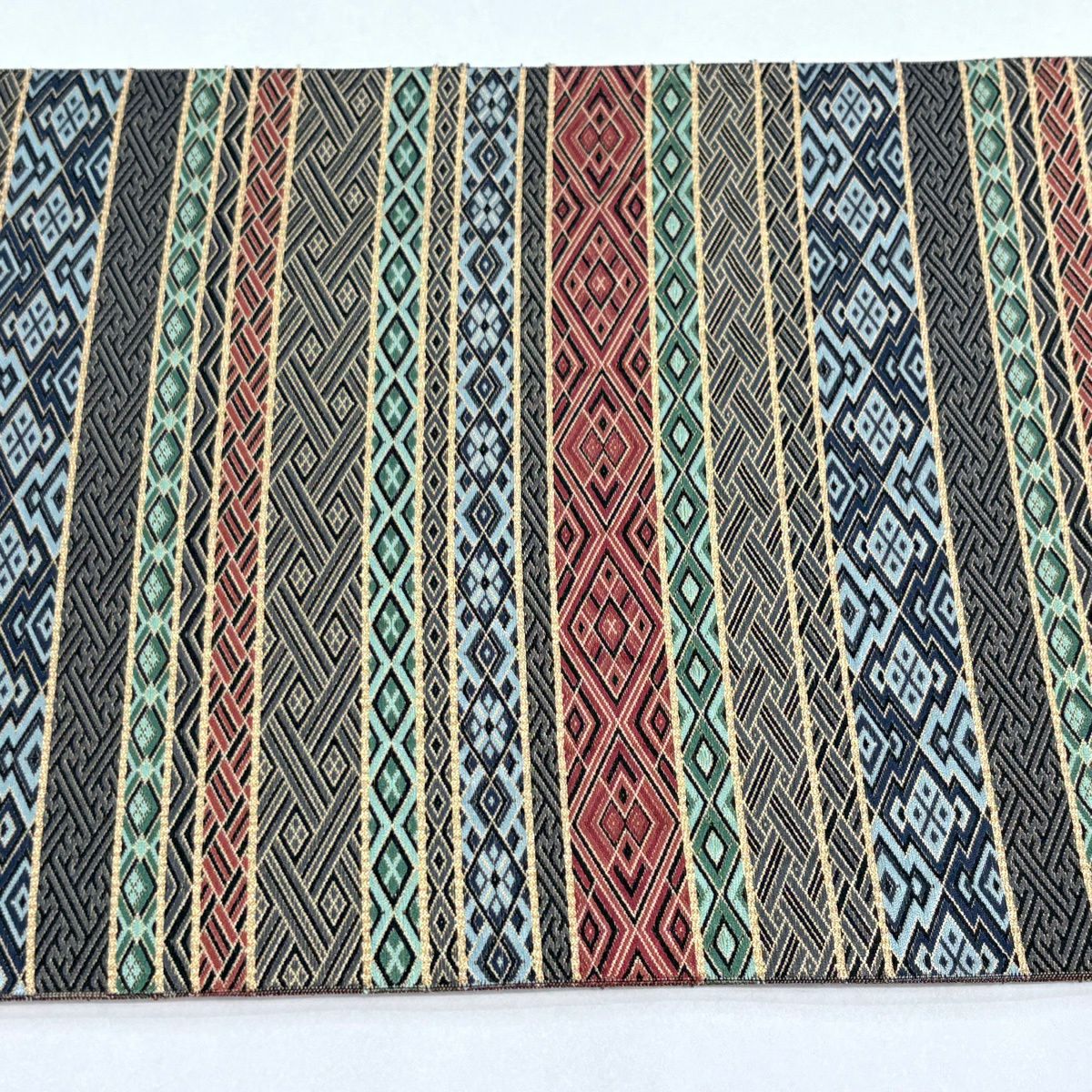 【美品】 袋帯 逸品 落款あり 証紙あり 小森草木染工房 博多織 佐賀錦 段縞 菱 箔 金糸 灰色 全通 正絹