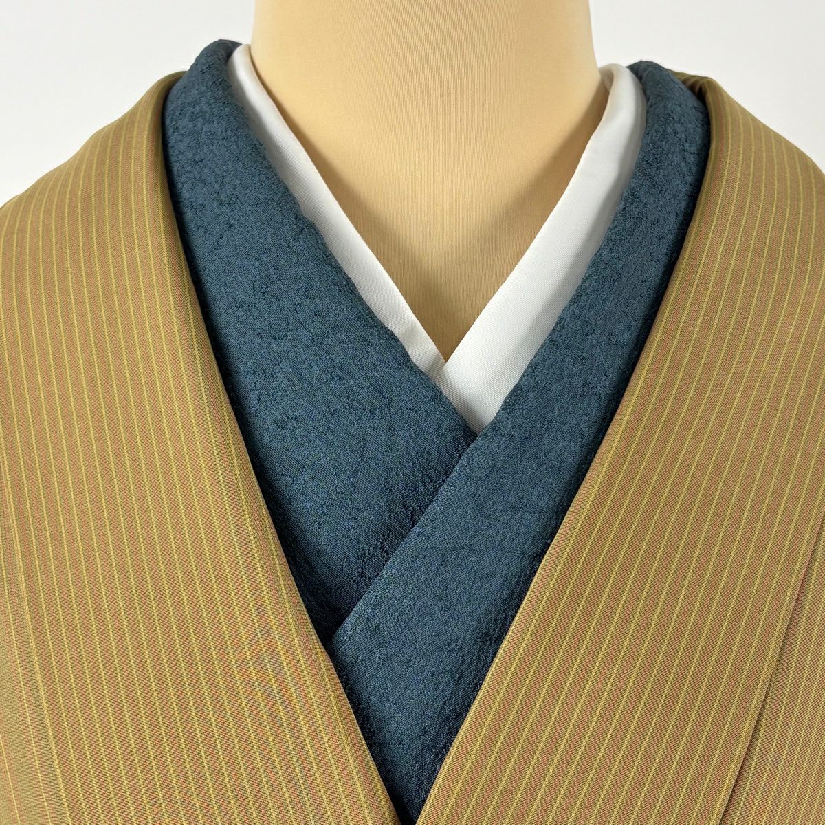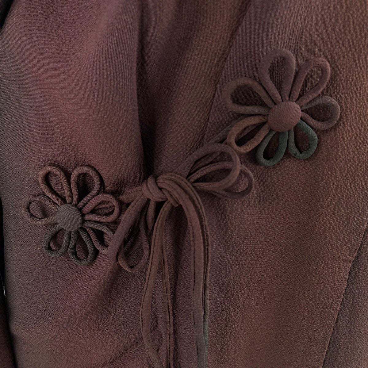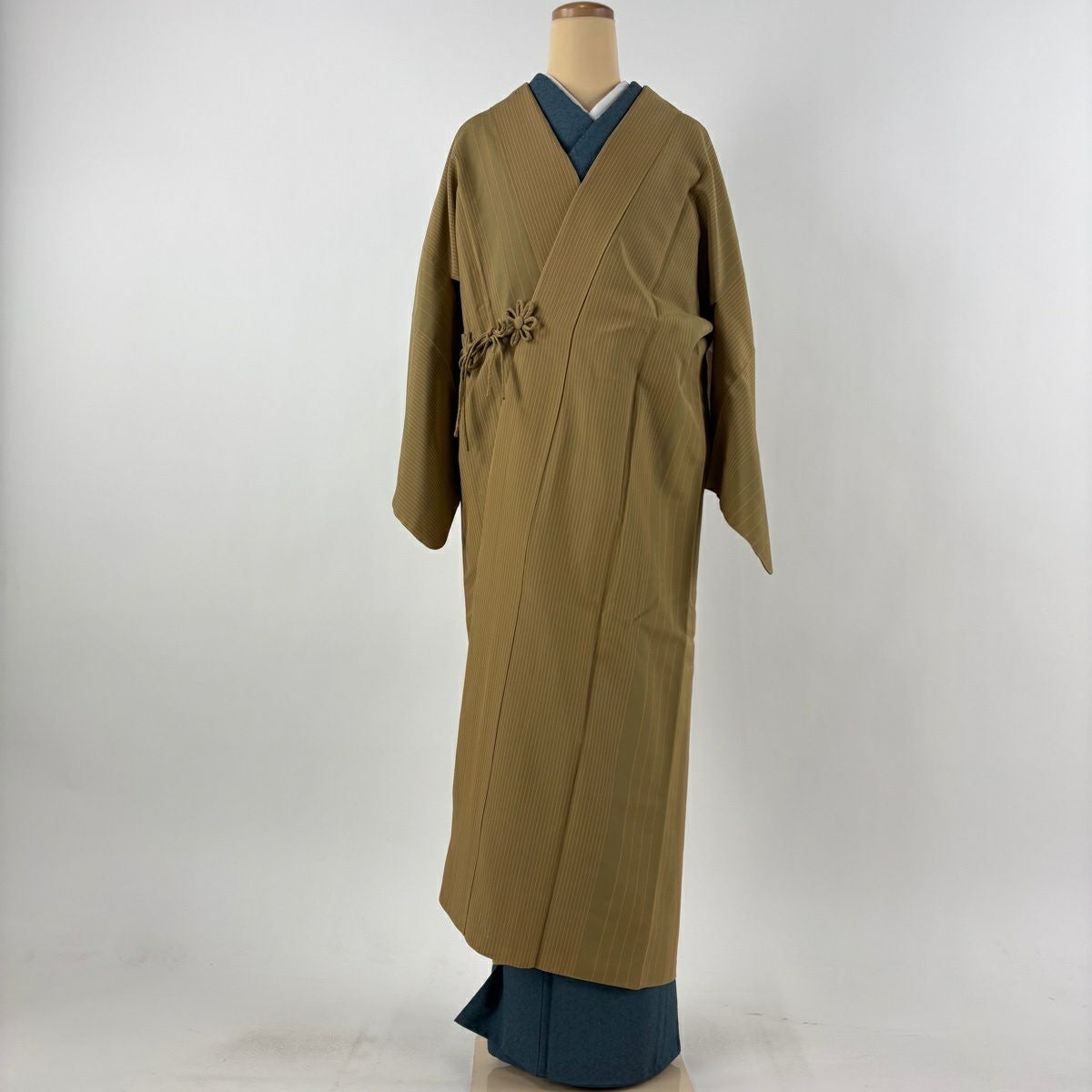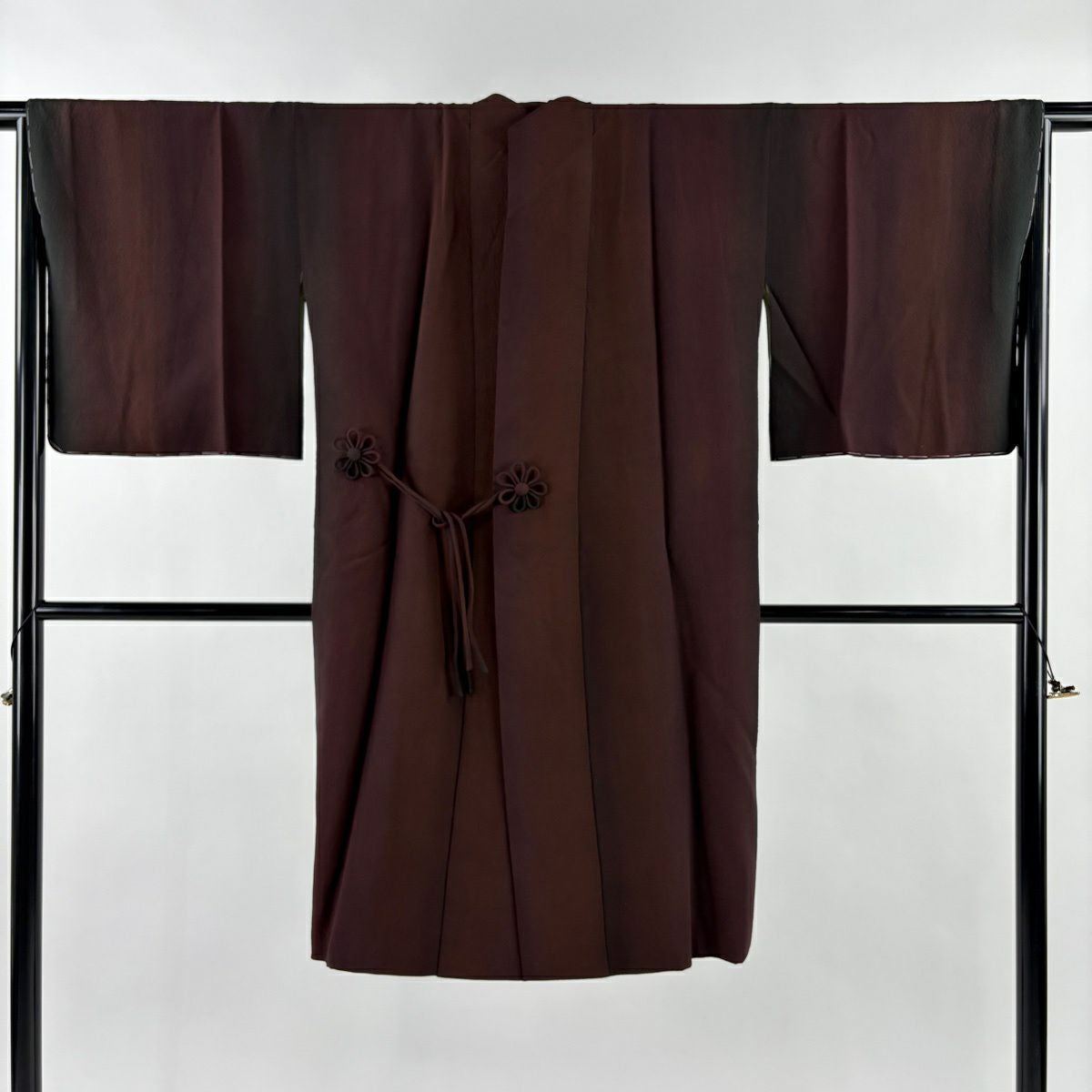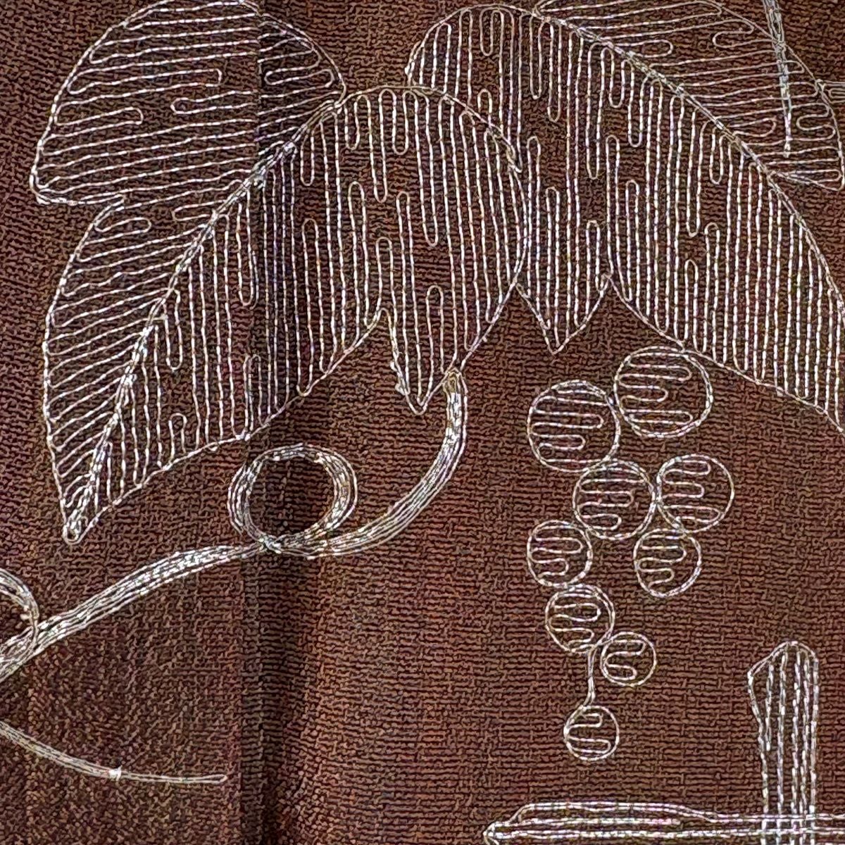 【美品】 道中着 身丈133cm 裄丈68cm L 和装コート 着物衿 紬地 生り物 葉柄 焦茶色 正絹 逸品