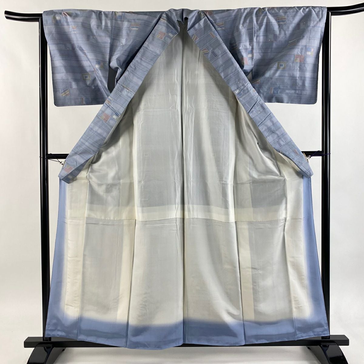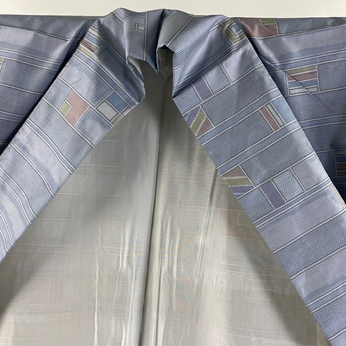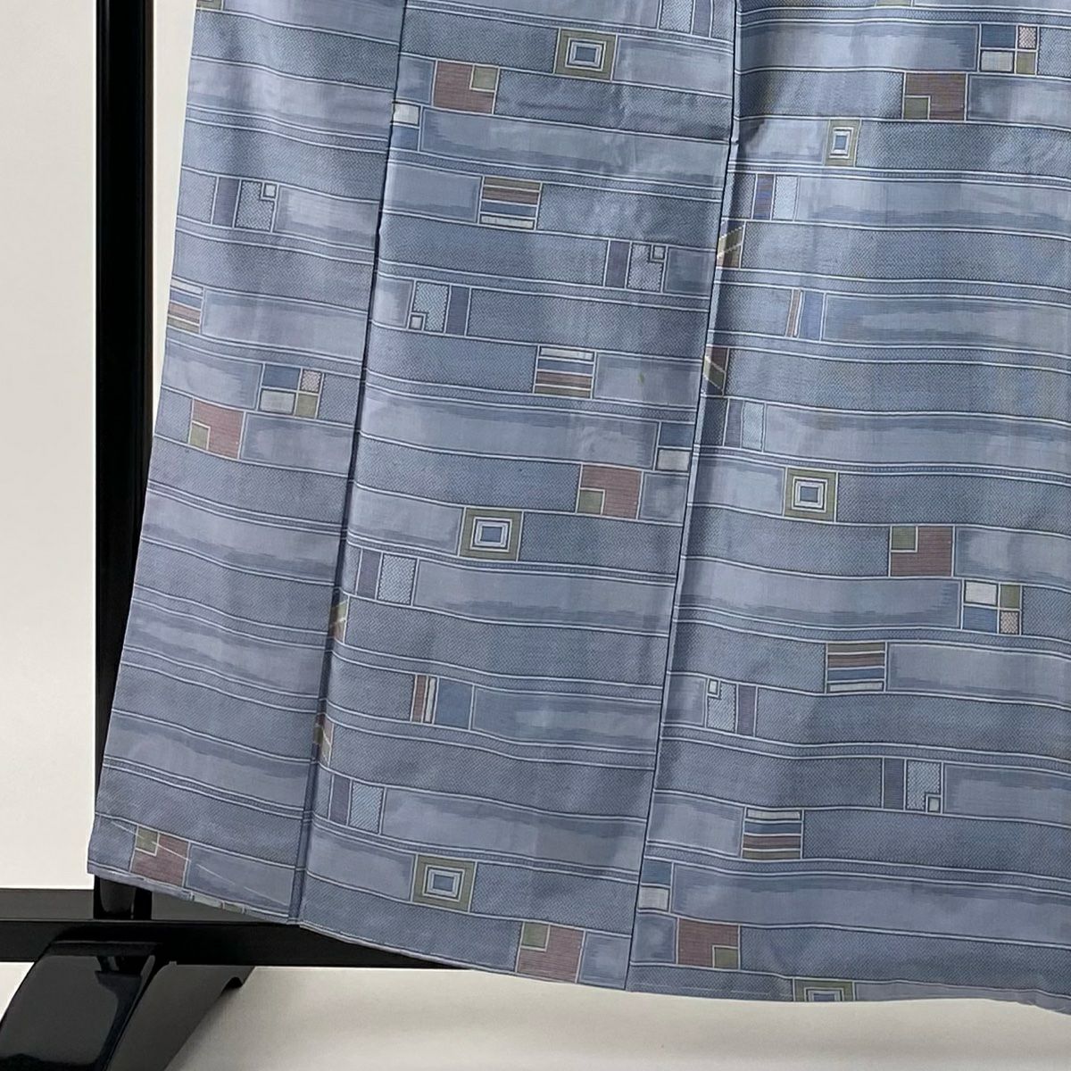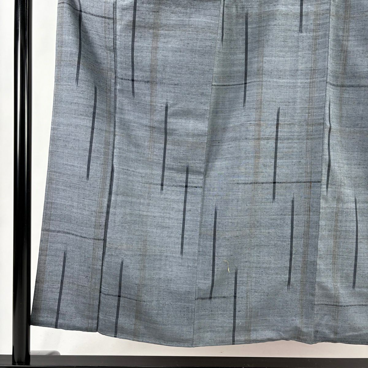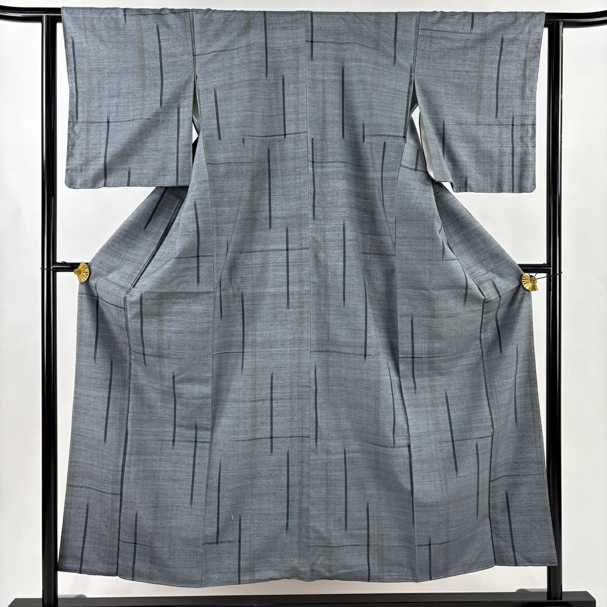 【在庫一掃】 大島紬 身丈160cm 裄丈64cm M 袷 都喜ヱ門 証紙あり 幾何学模様 青灰色 正絹 逸品