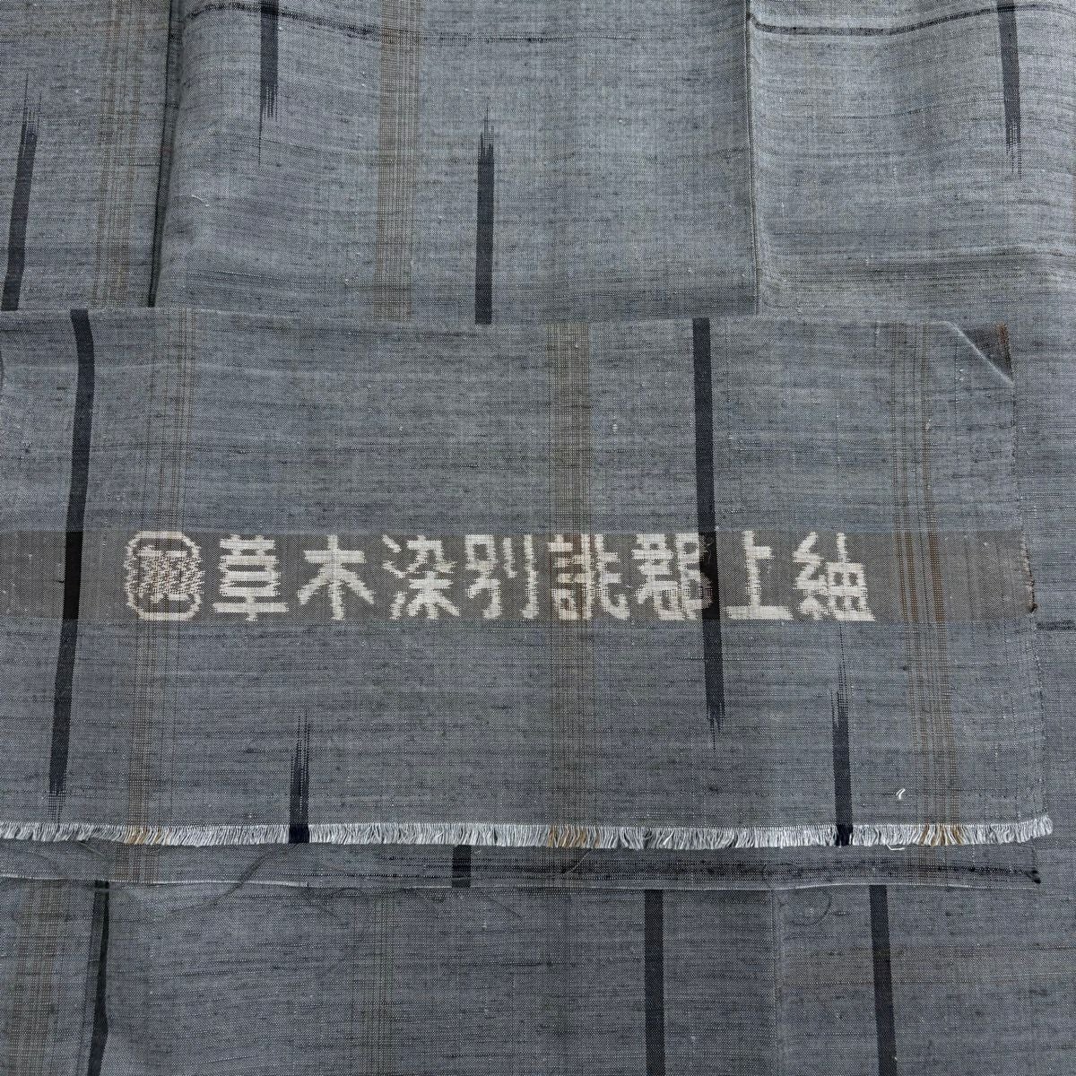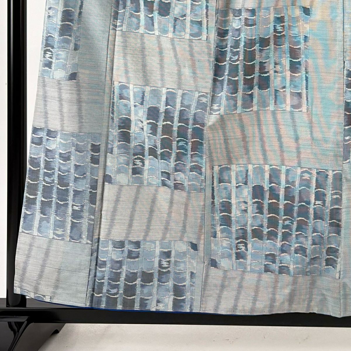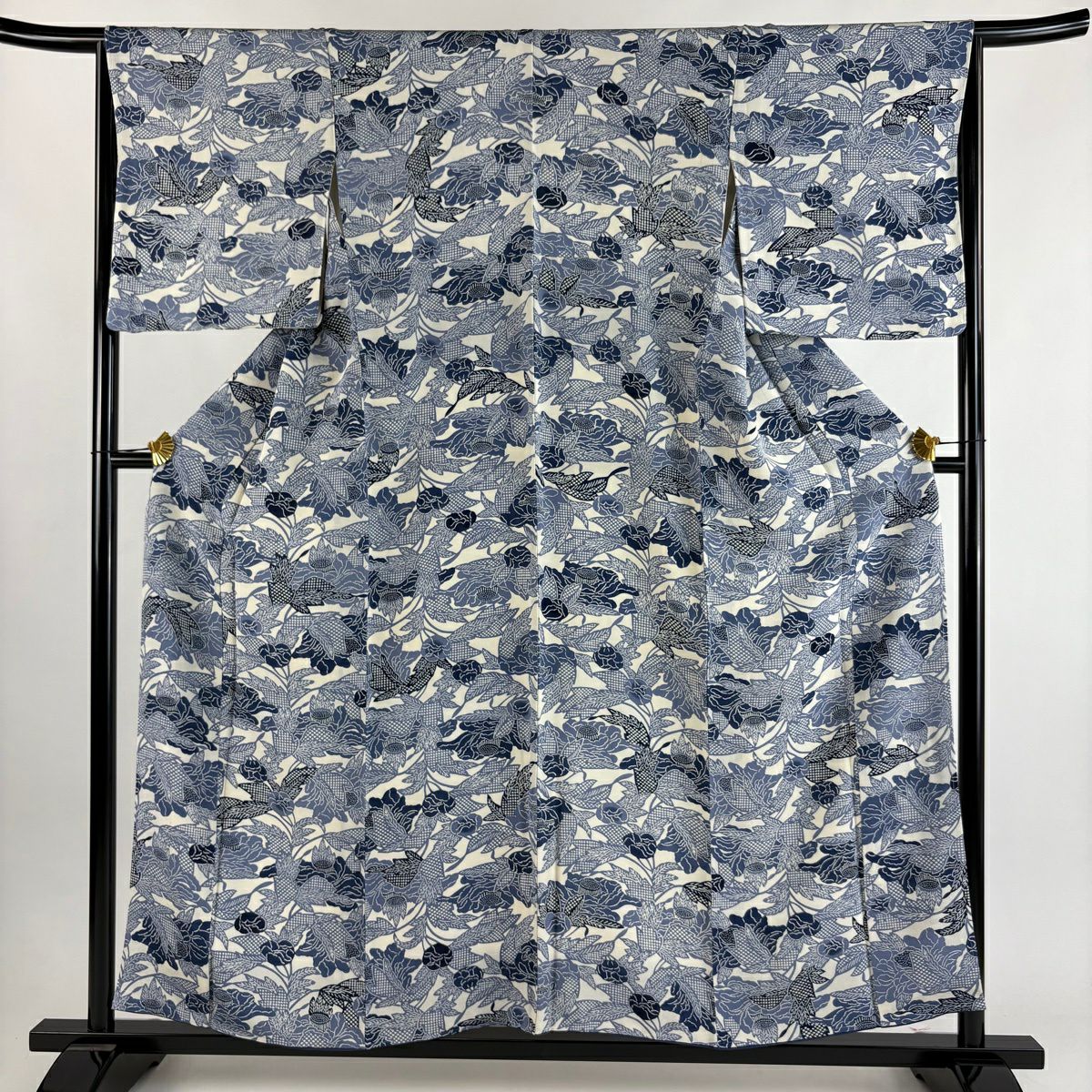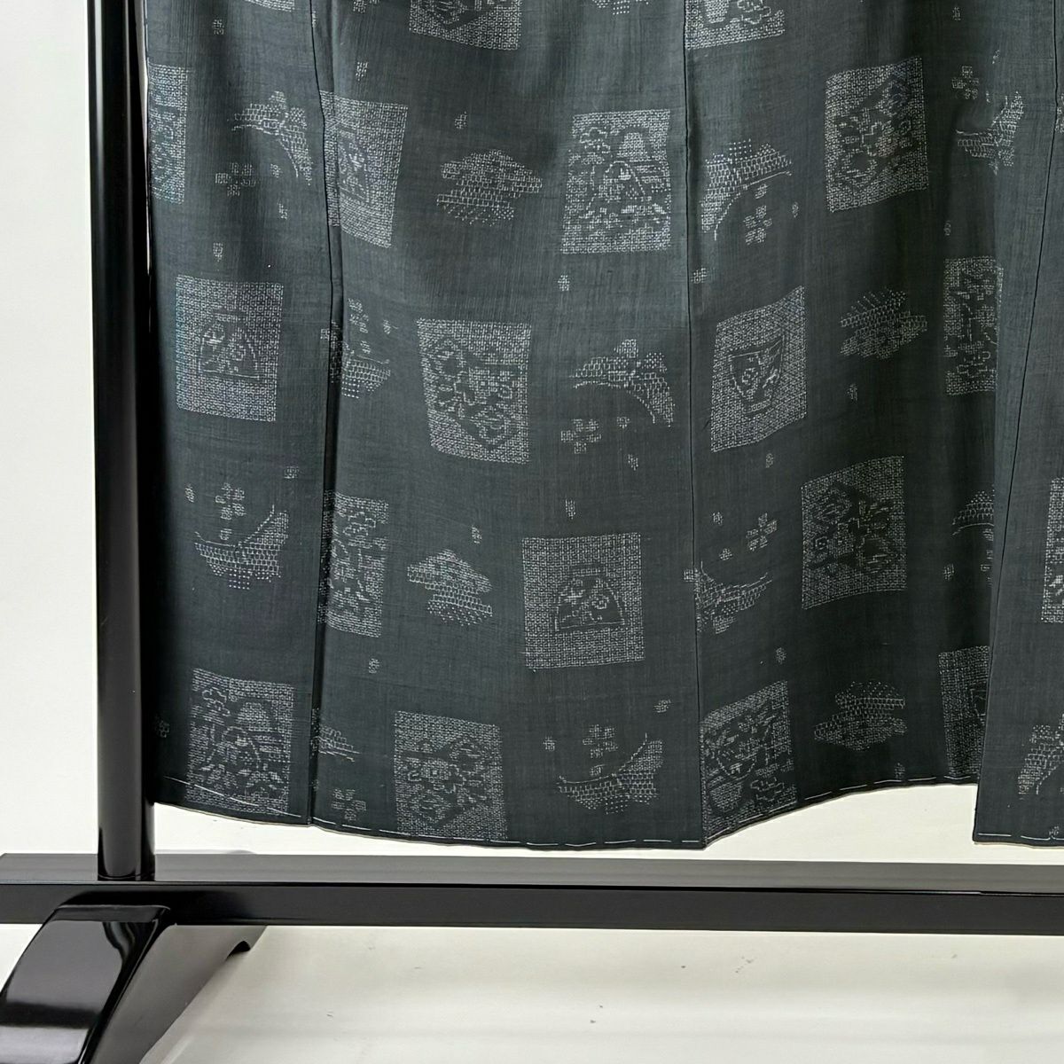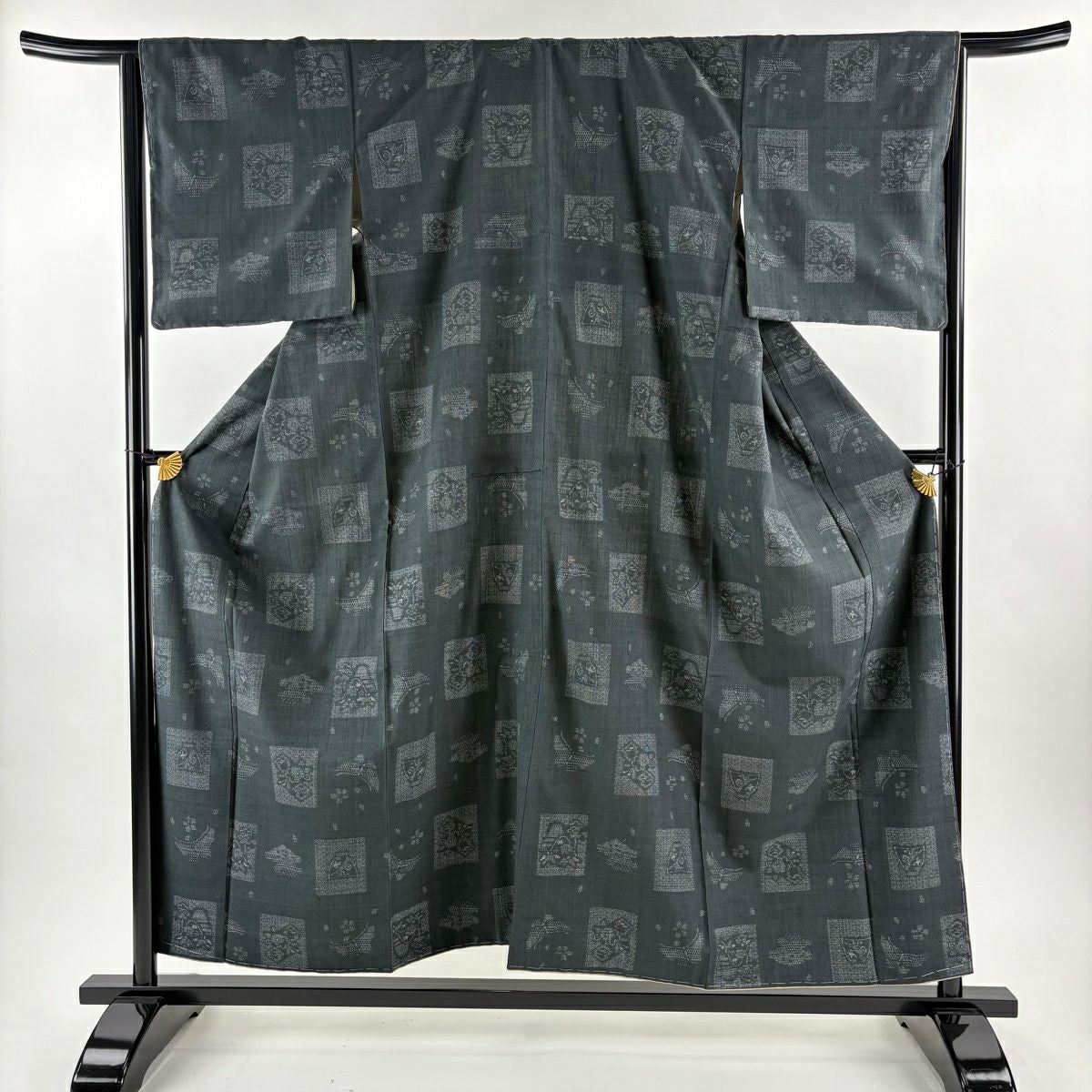 【在庫一掃】 大島紬 身丈160cm 裄丈64cm M 袷 都喜ヱ門 証紙あり 幾何学模様 青灰色 正絹 逸品