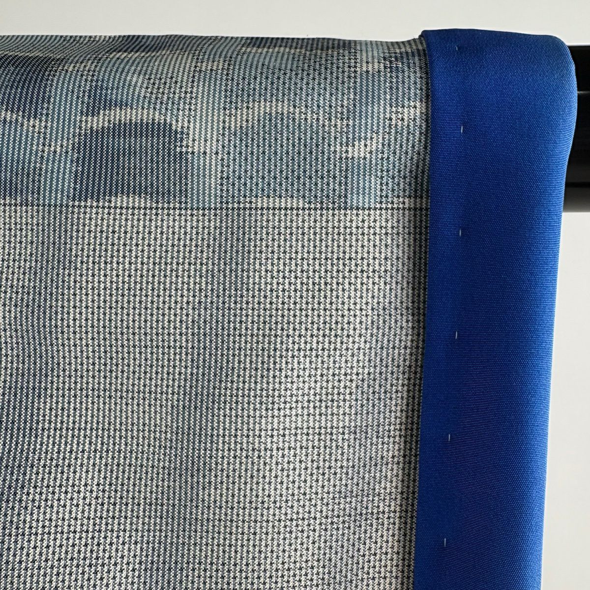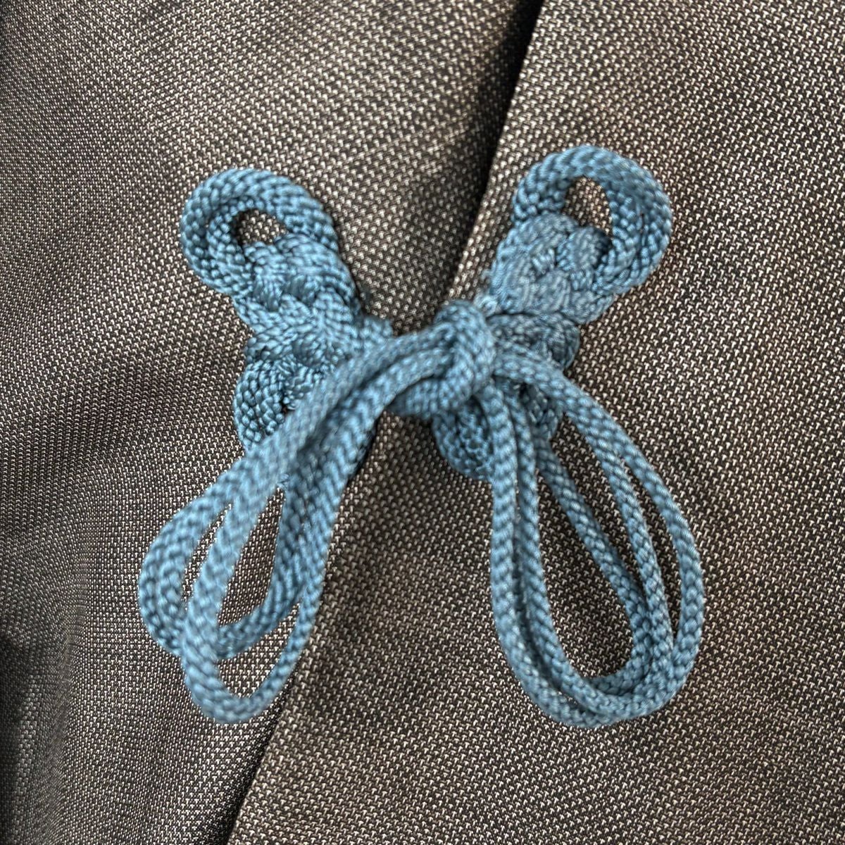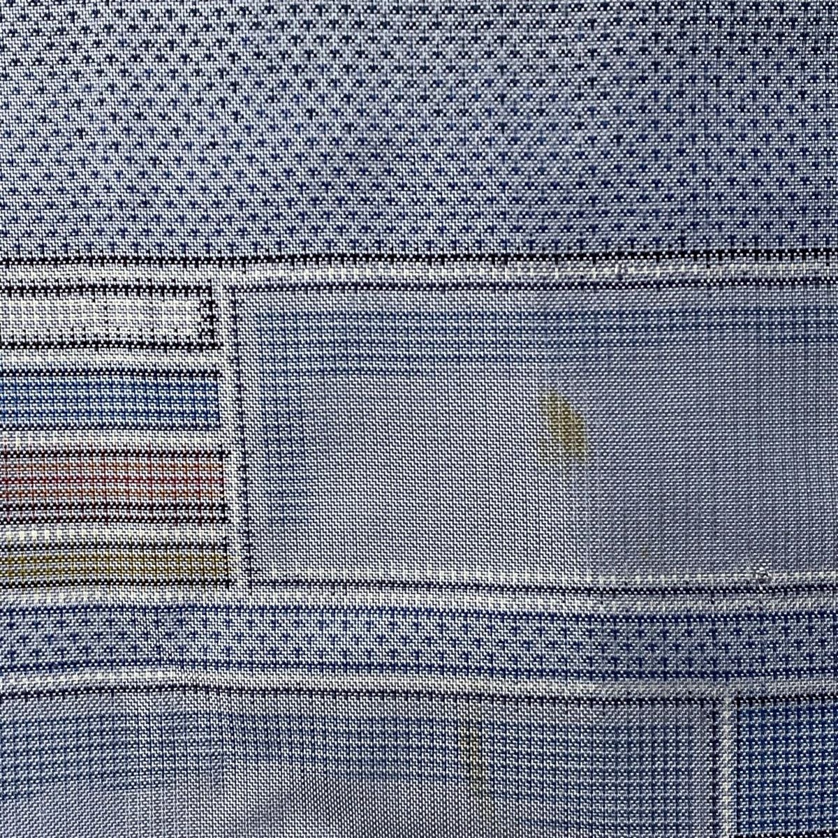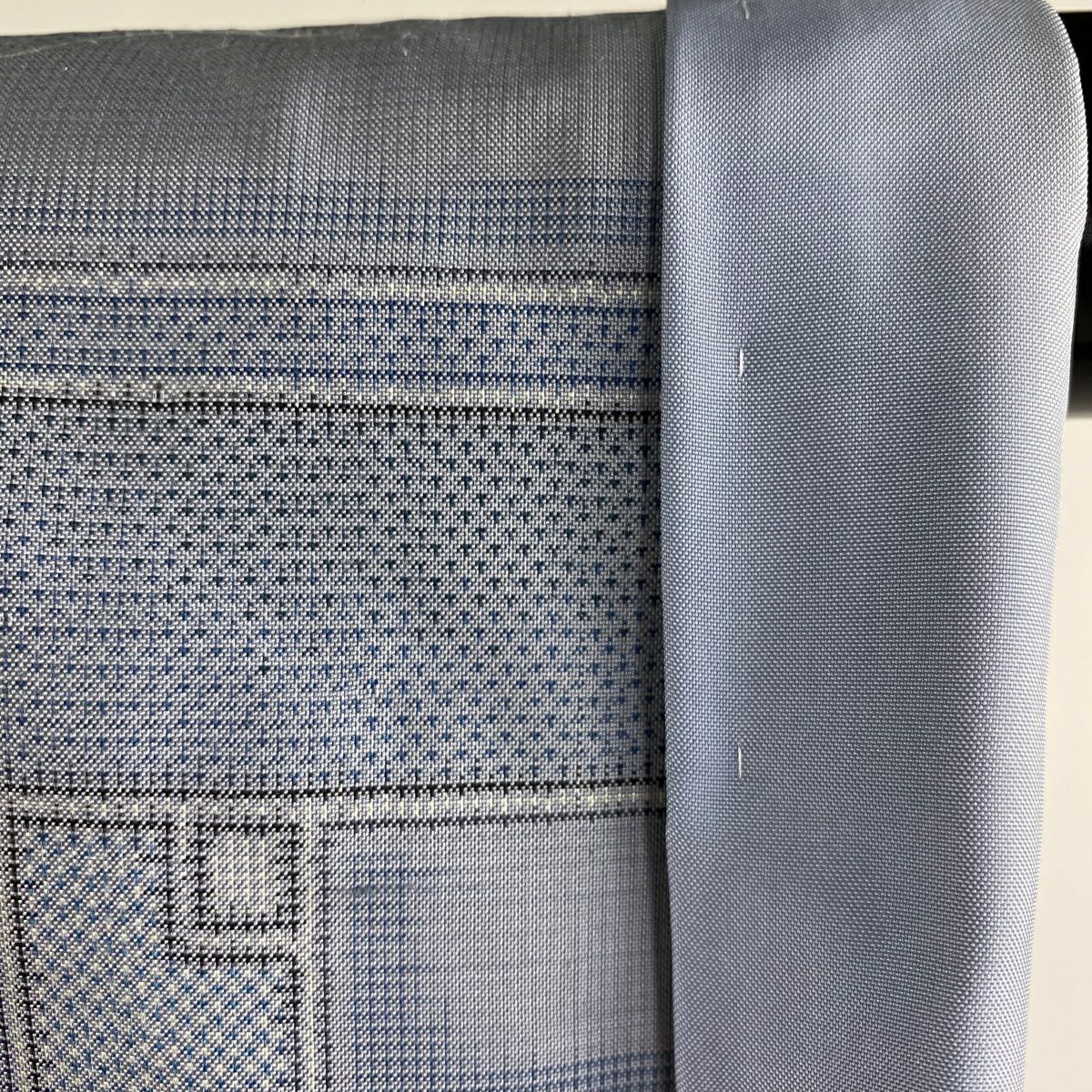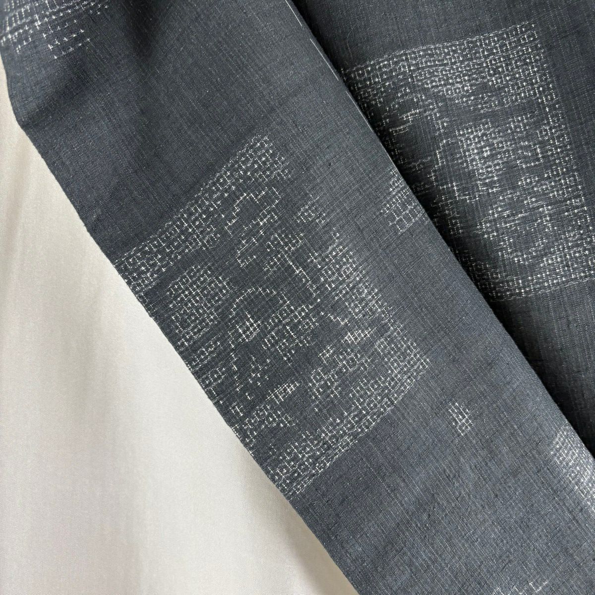 【在庫一掃】 大島紬 身丈160cm 裄丈64cm M 袷 都喜ヱ門 証紙あり 幾何学模様 青灰色 正絹 逸品