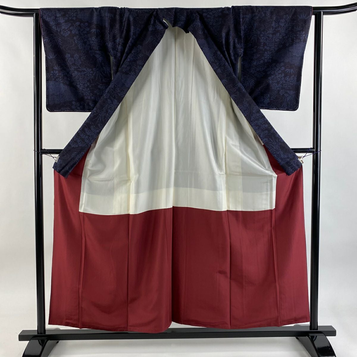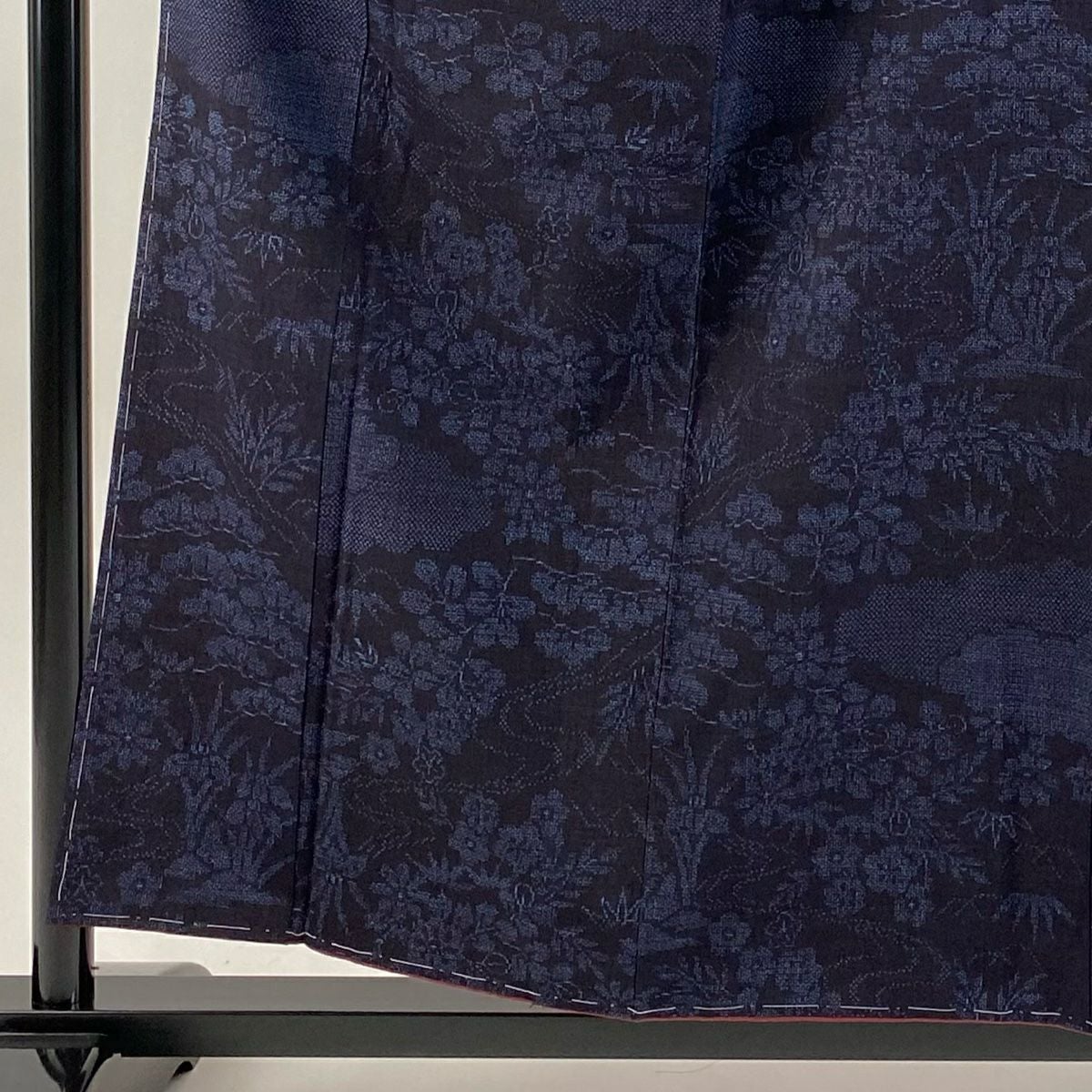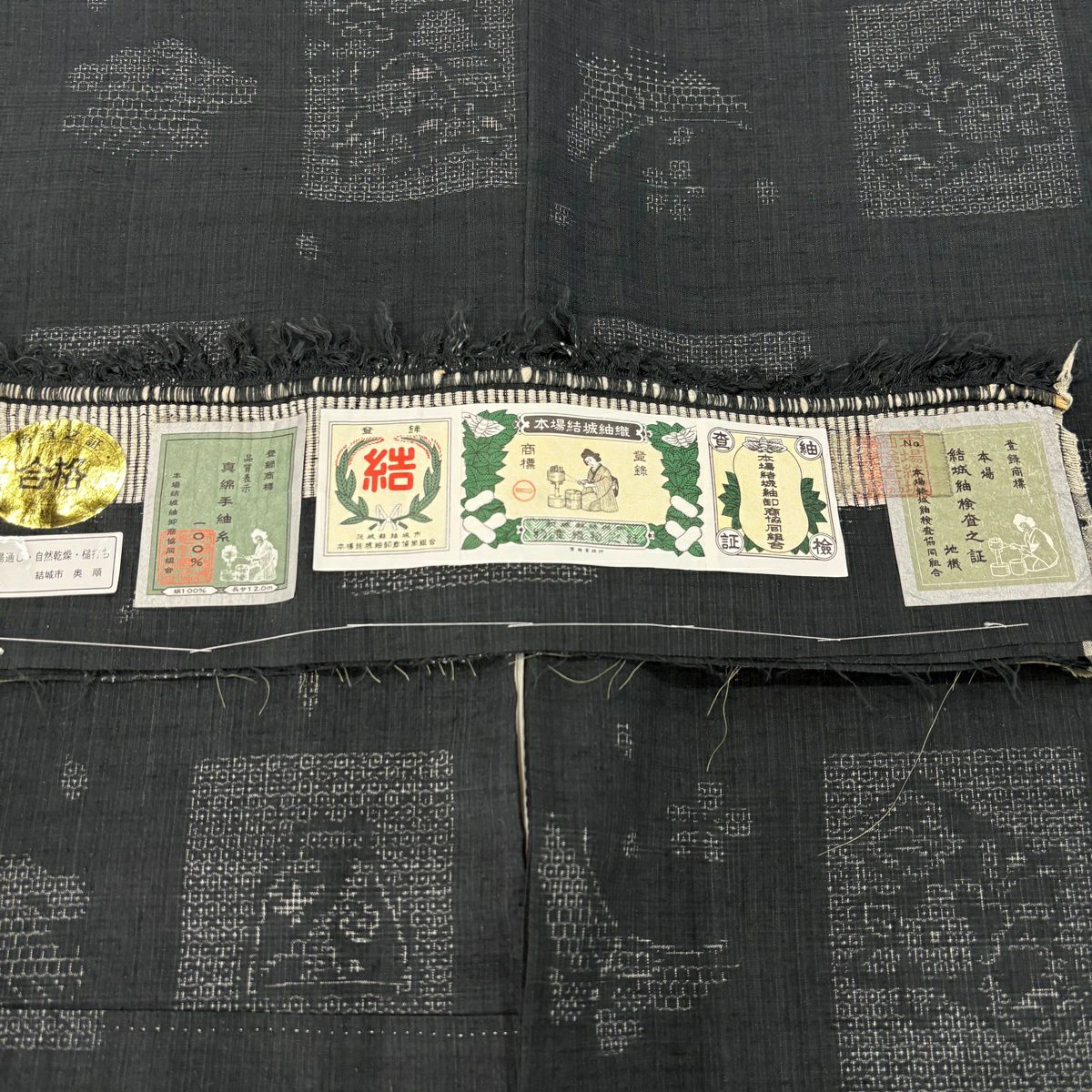 【美品】 結城紬 身丈156.5cm 裄丈62.5cm S 袷 本場結城紬 証紙あり 松竹梅 亀甲絣 紺色 正絹 逸品