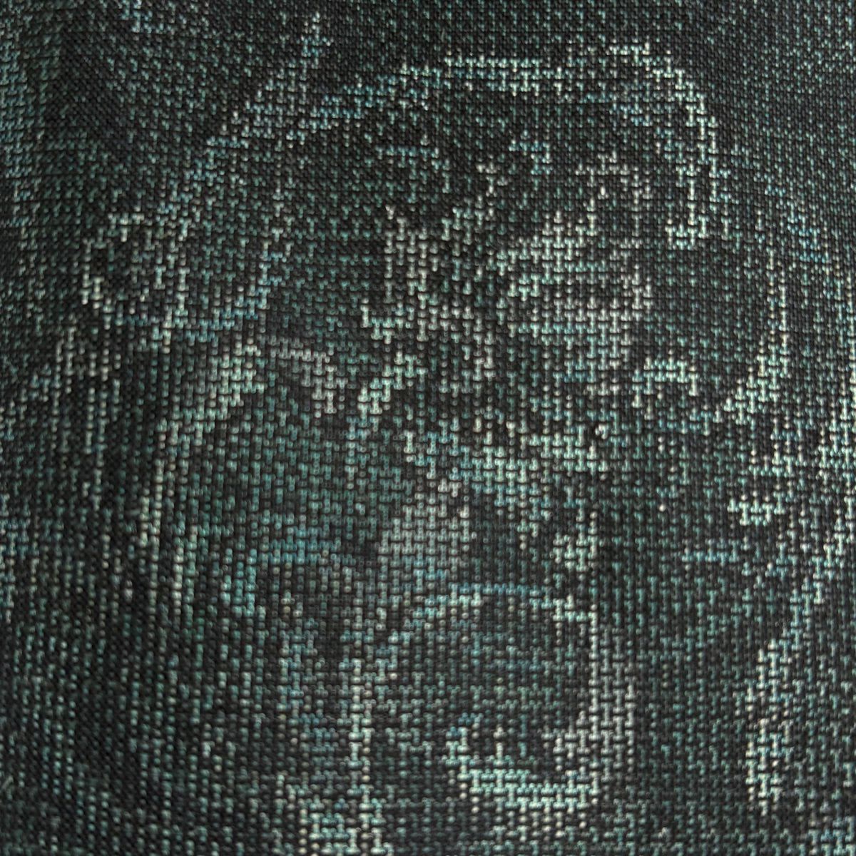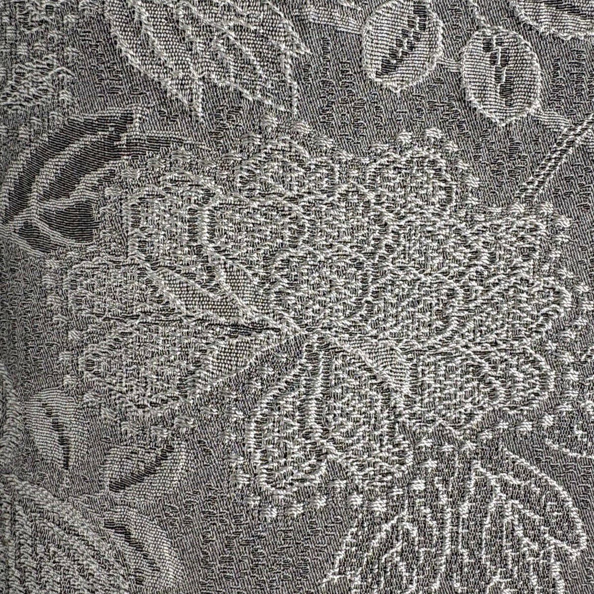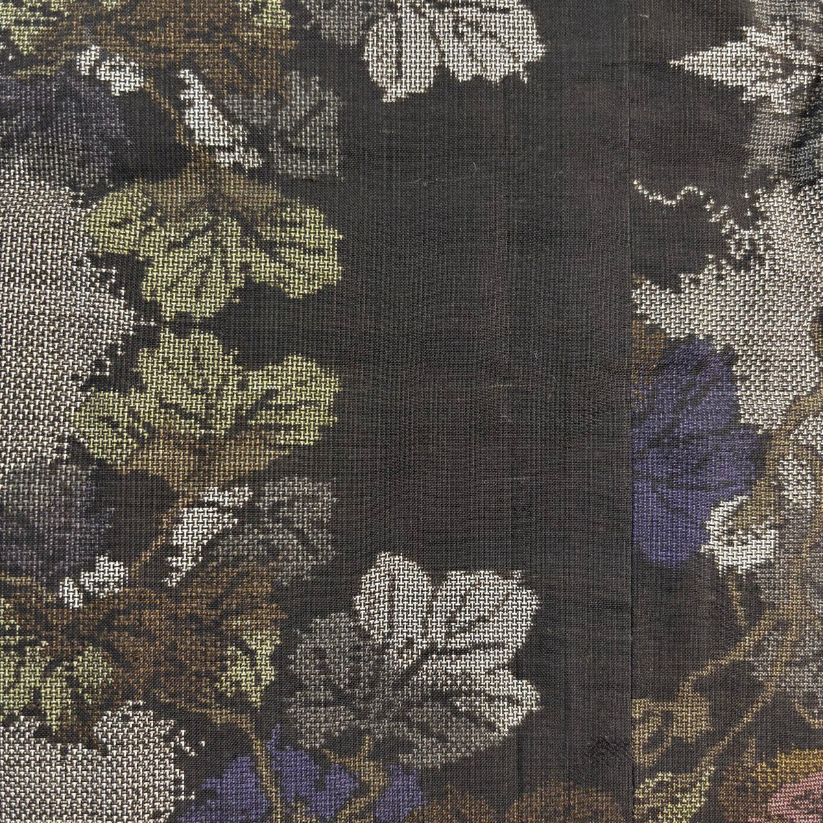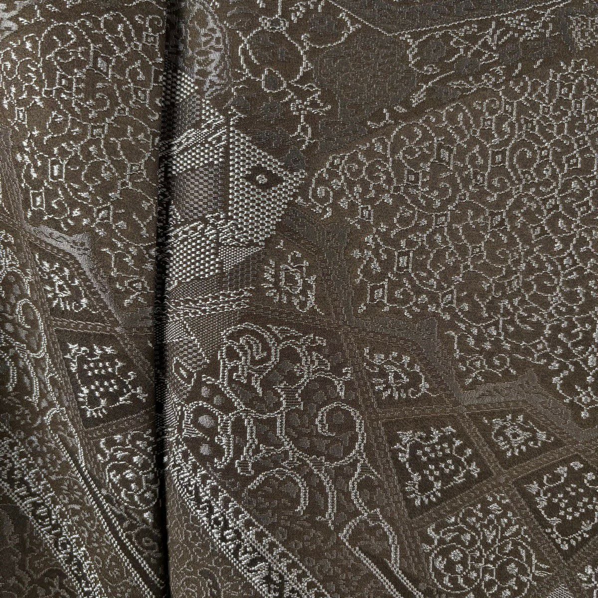【在庫一掃】 【美品】 袋帯 逸品 となみ織物 落款あり 証紙あり 向かい鳥 草花 刺繍 金糸 灰緑 六通 正絹