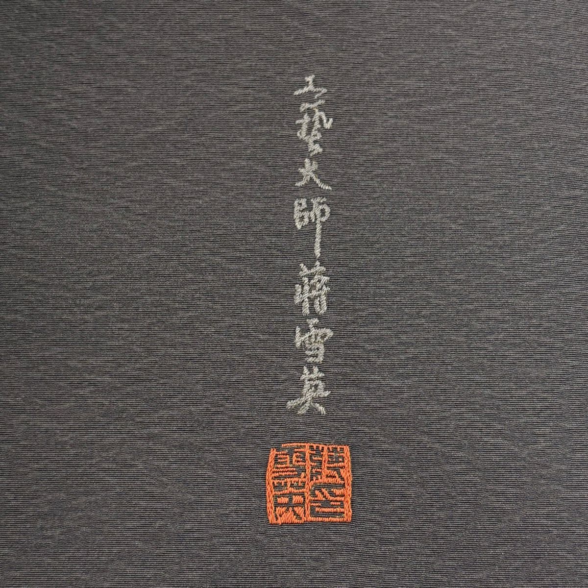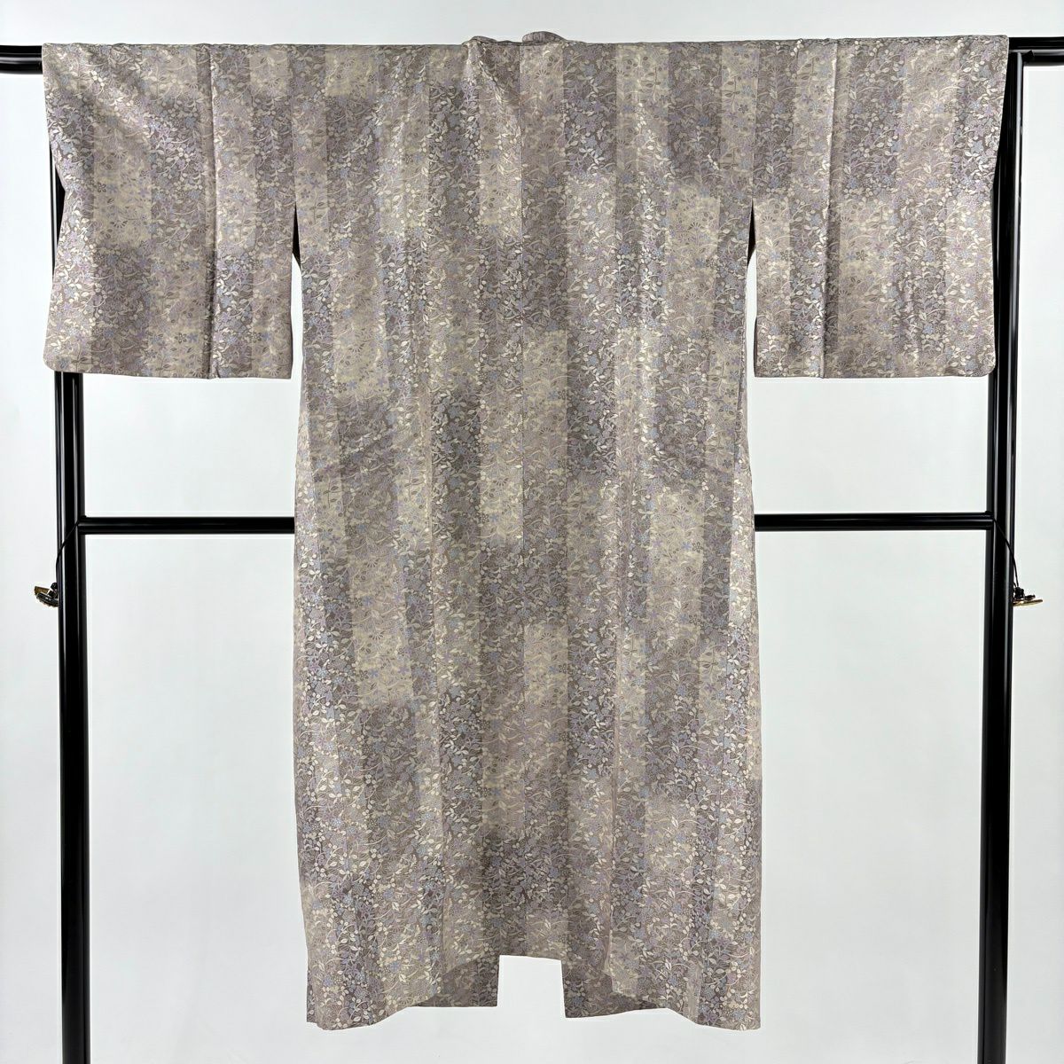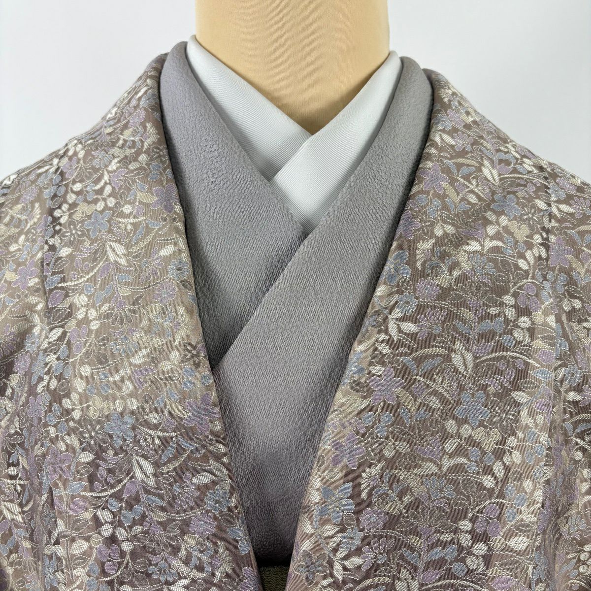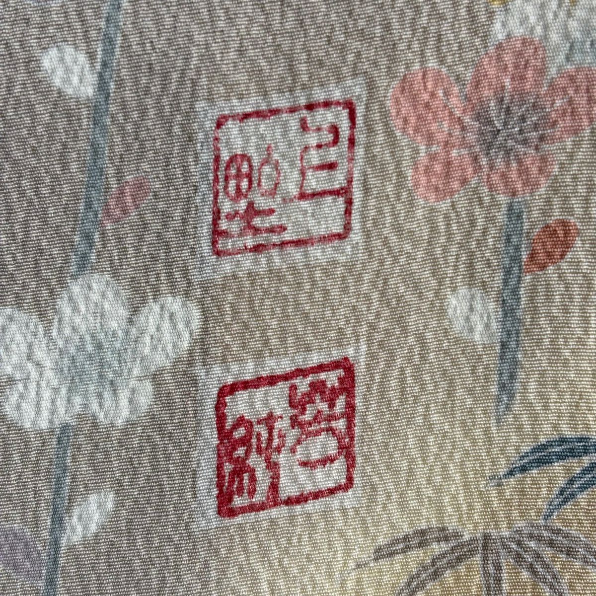付下げ 身丈153.5cm 裄丈63.5cm S 袷 蒋雪英 落款あり 梅 吹き寄せ 金銀糸 刺繍 灰茶 正絹 逸品