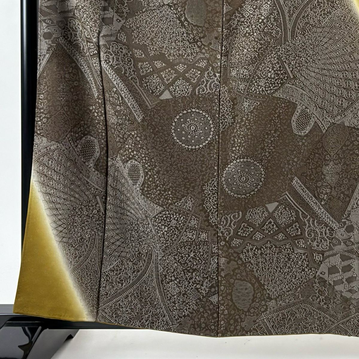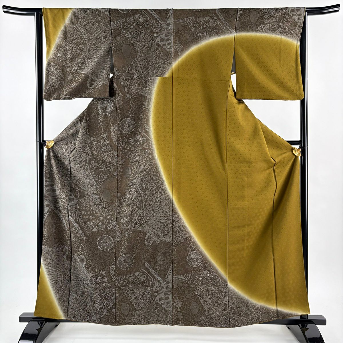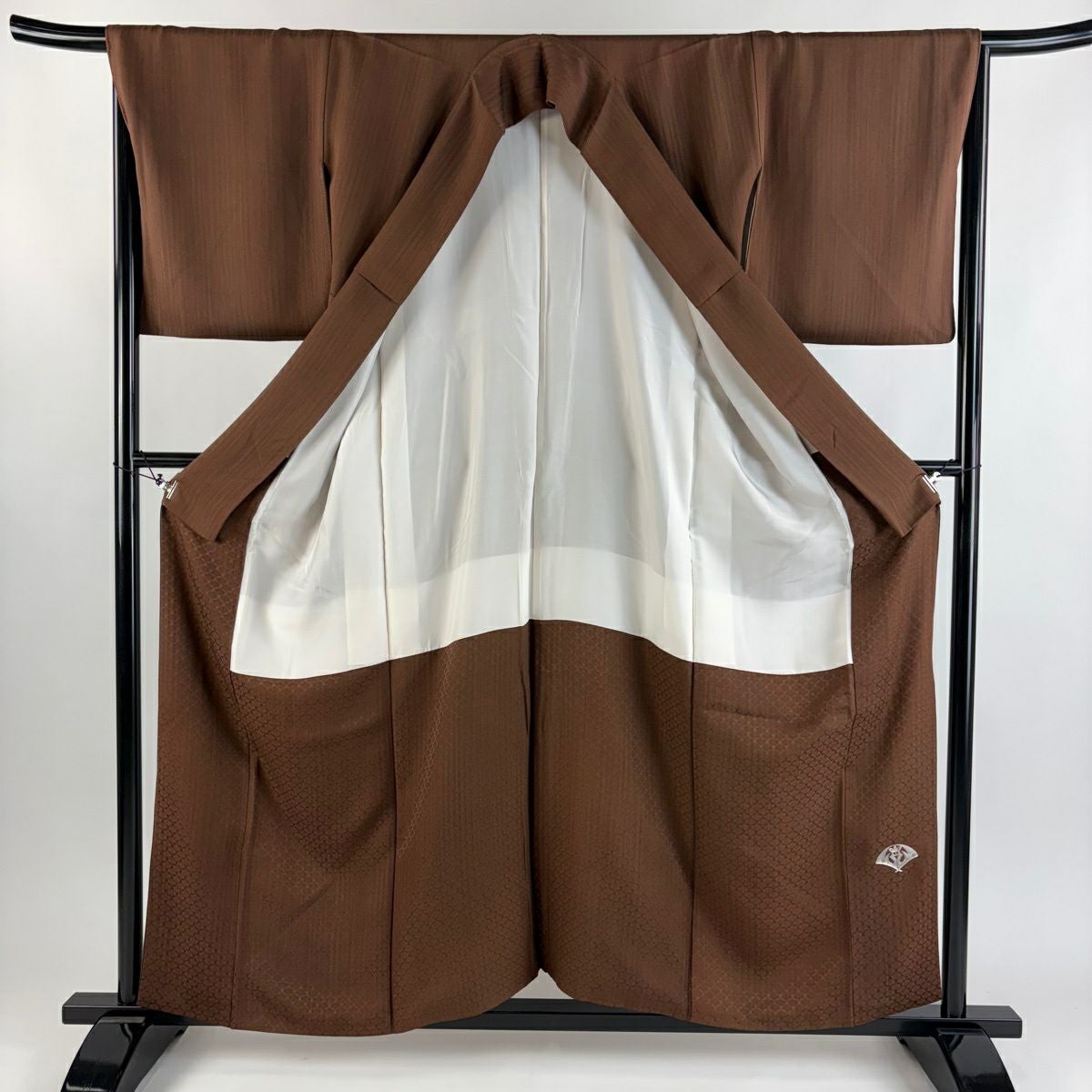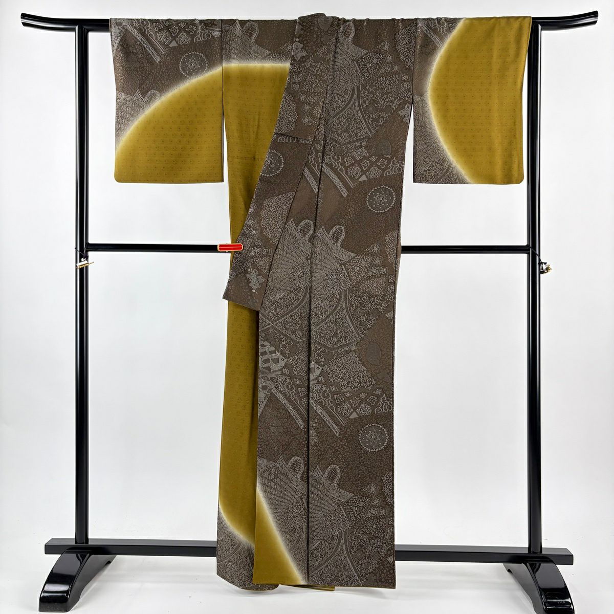 【美品】 訪問着 身丈162cm 裄丈64cm M 袷 華文 幾何学模様 染め分け ぼかし 焦茶色 正絹 逸品