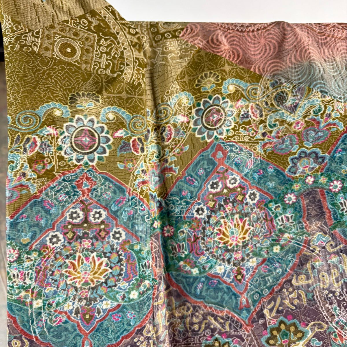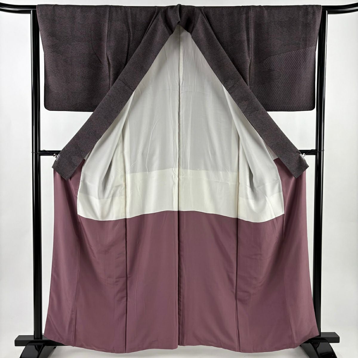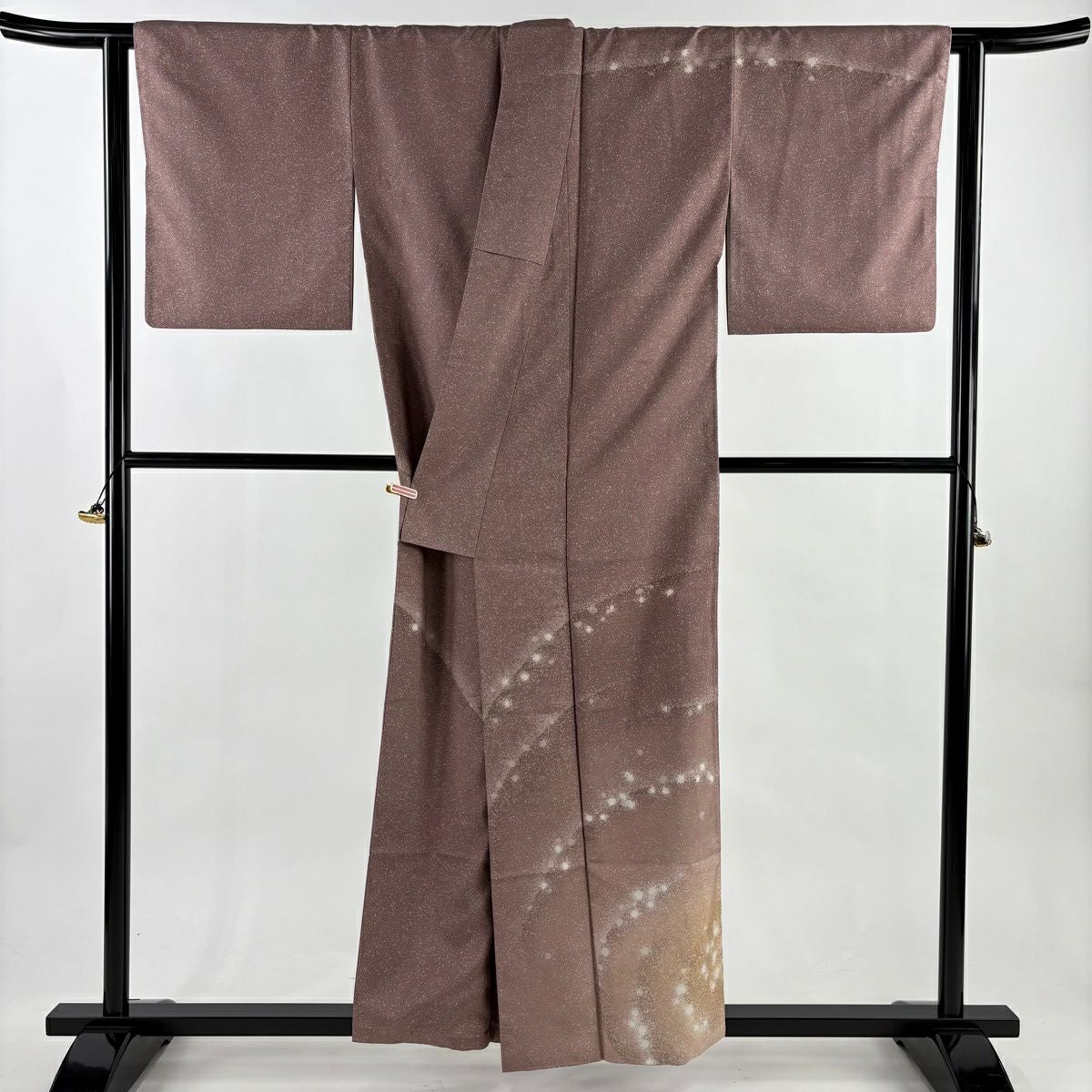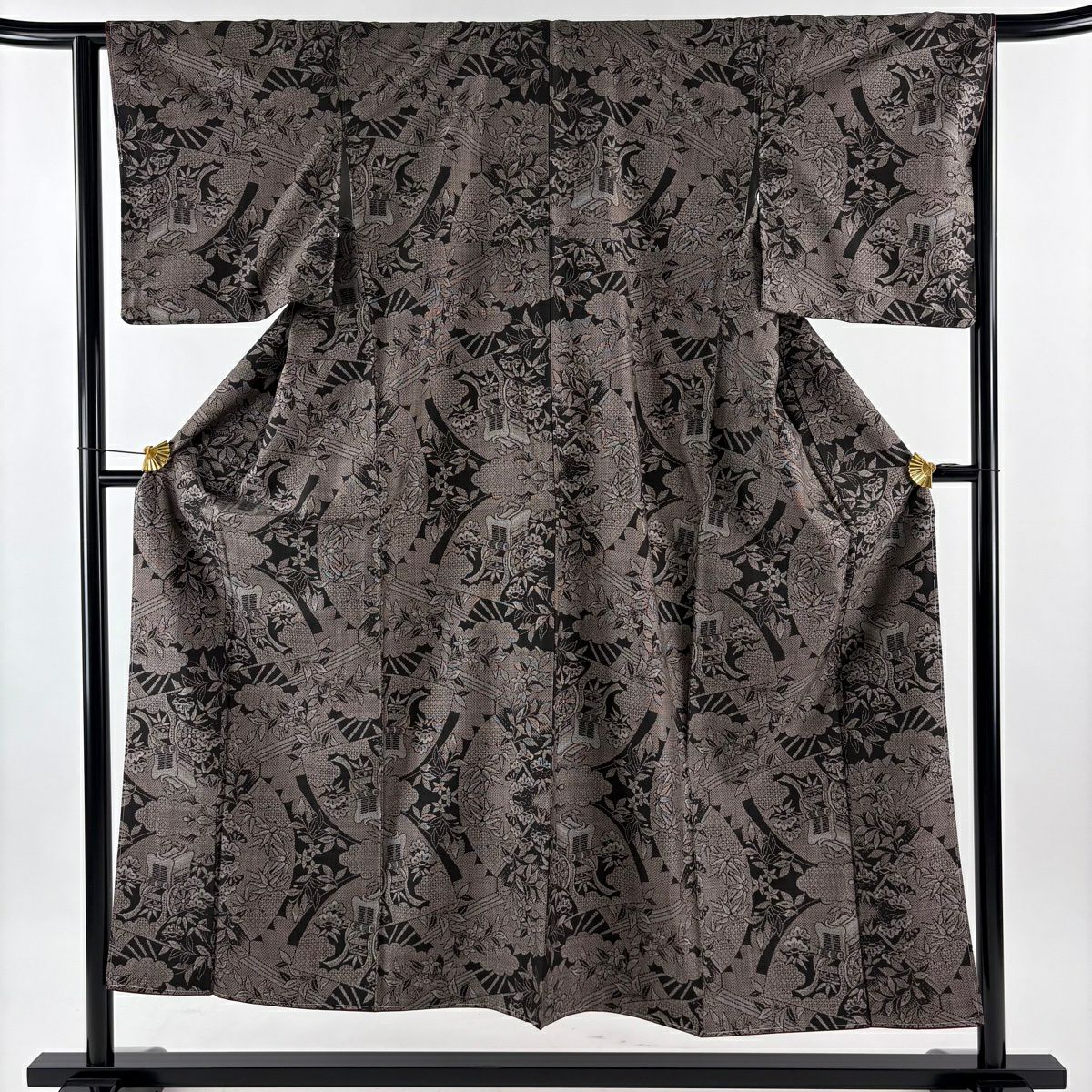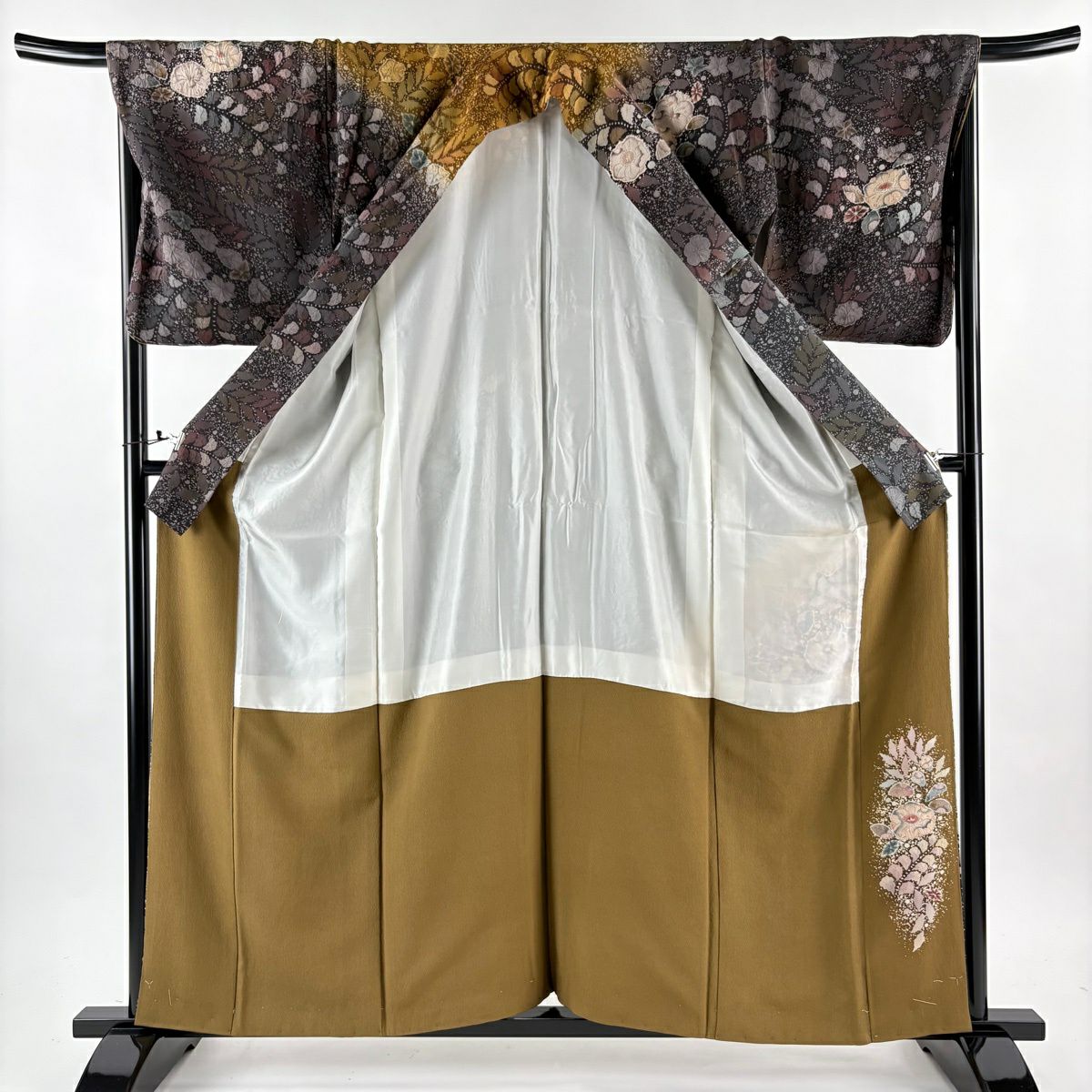 【美品】 訪問着 身丈162cm 裄丈64cm M 袷 華文 幾何学模様 染め分け ぼかし 焦茶色 正絹 逸品