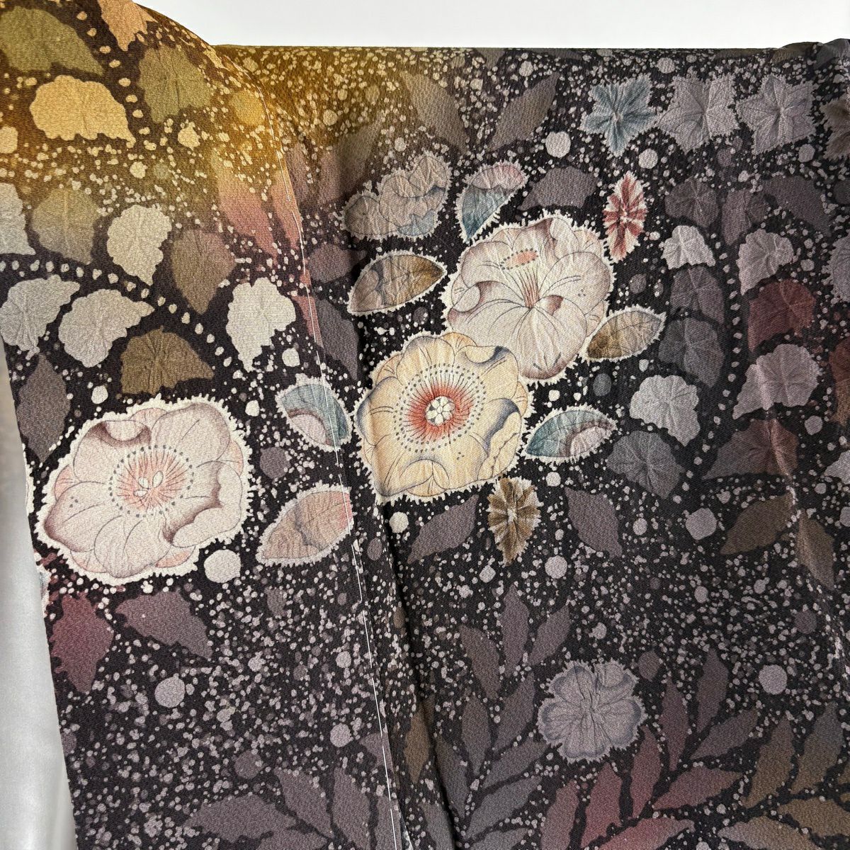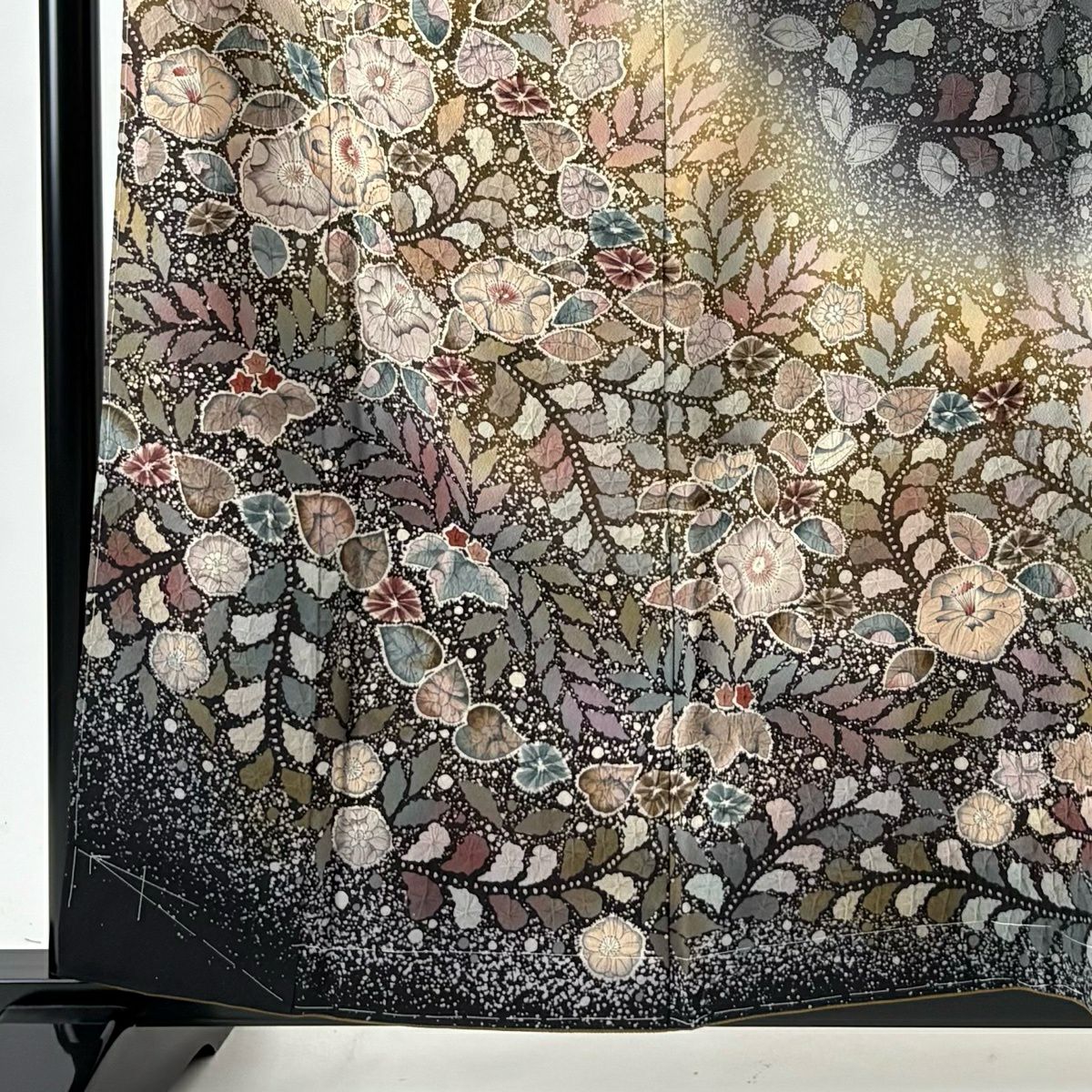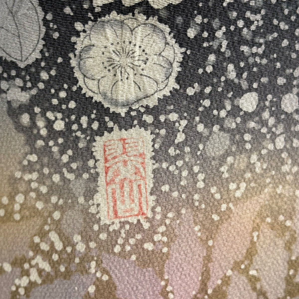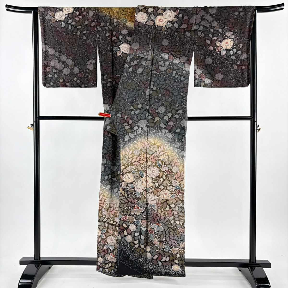 【美品】 訪問着 身丈158.5cm 裄丈68.5cm L 袷 翠山工房 落款あり 辻が花 ぼかし 墨色 正絹 逸品
