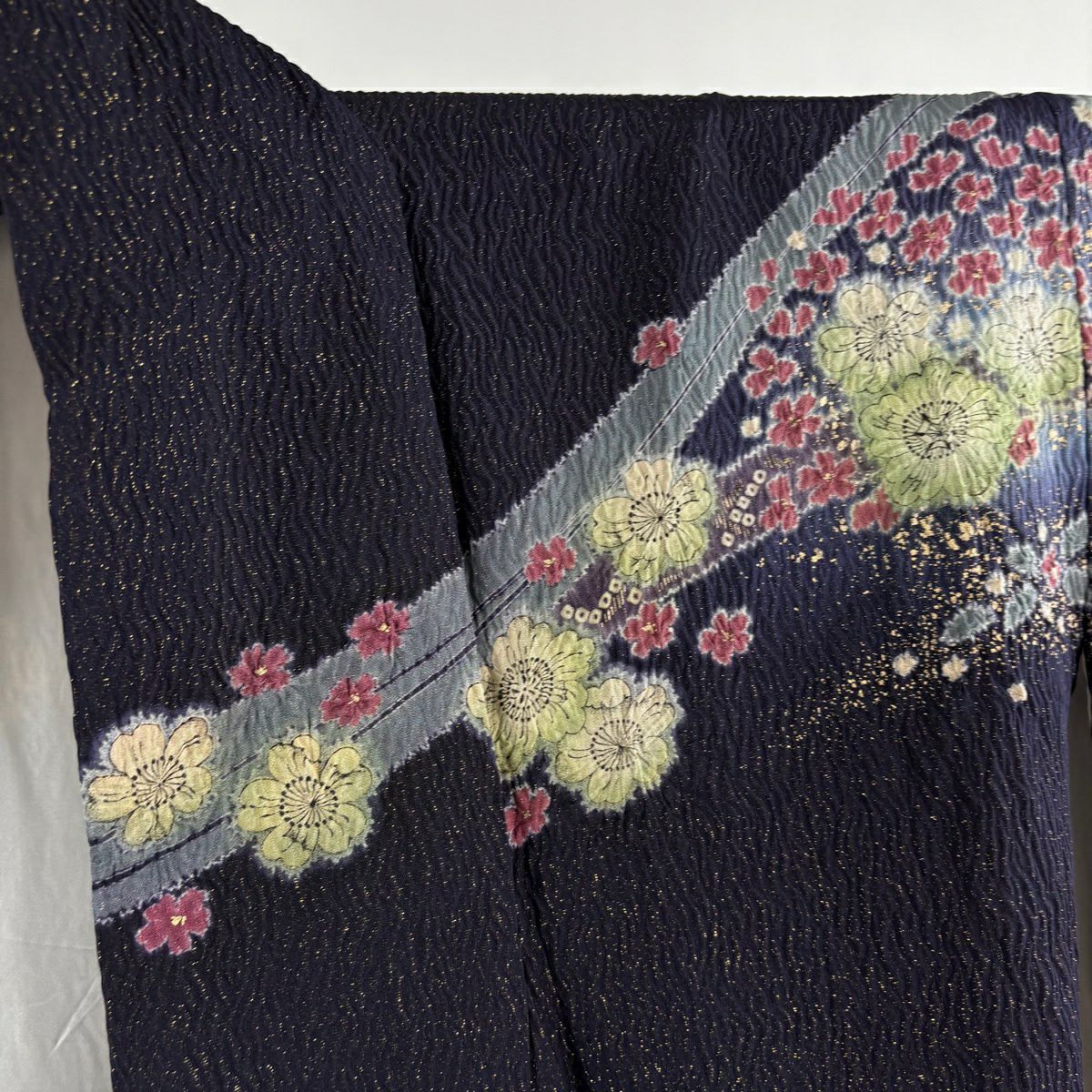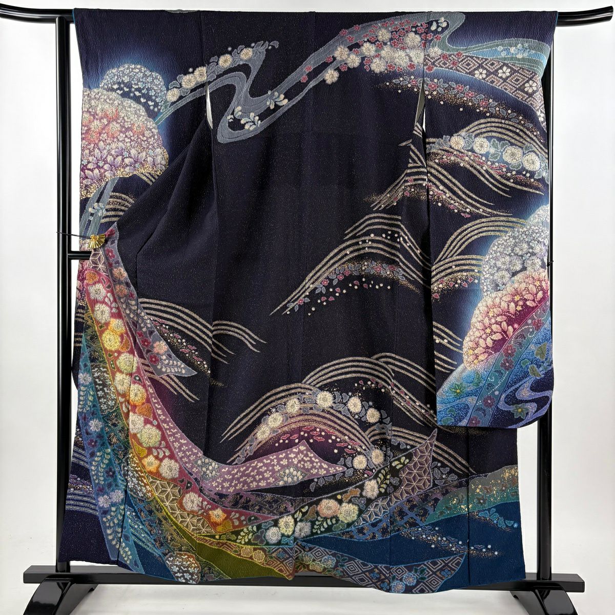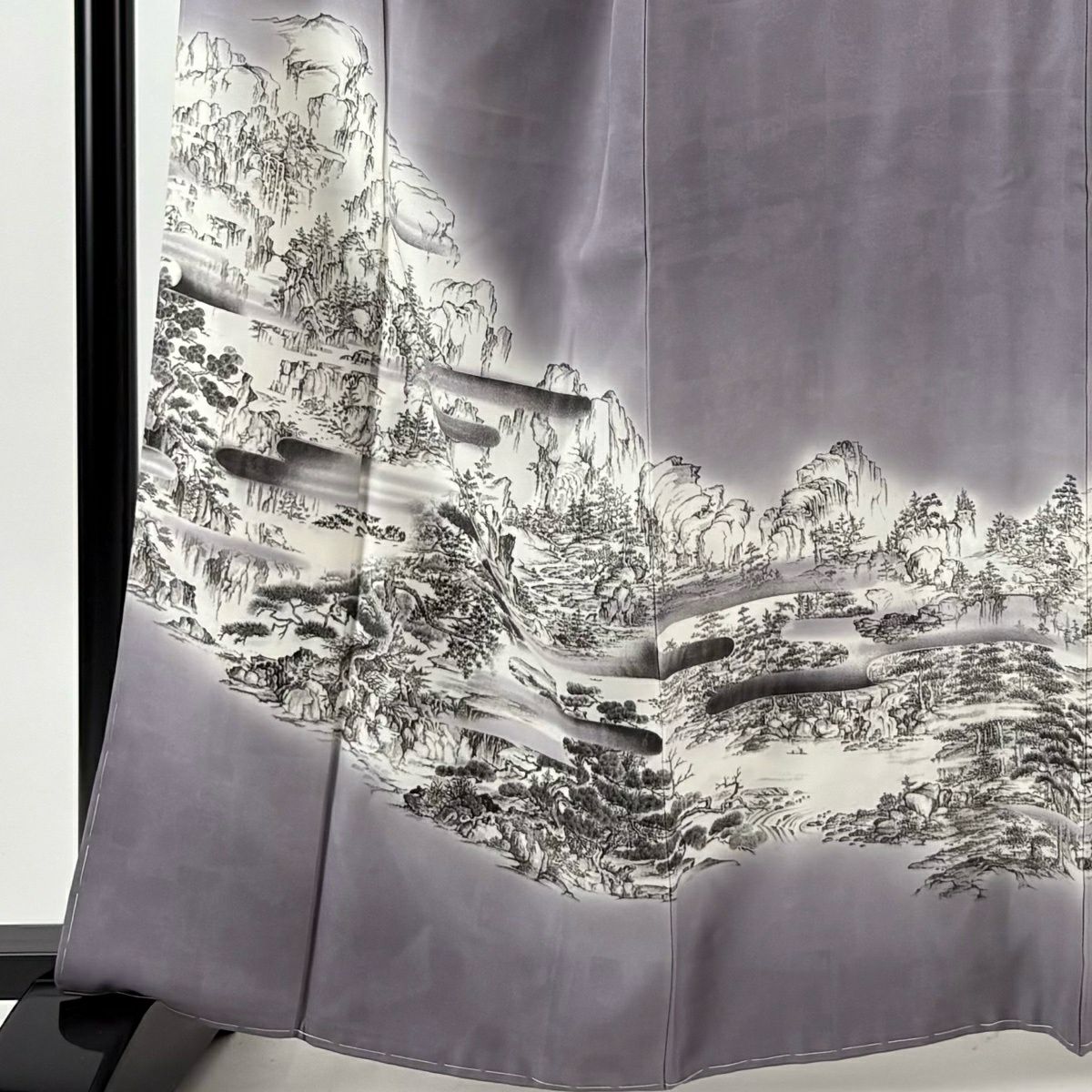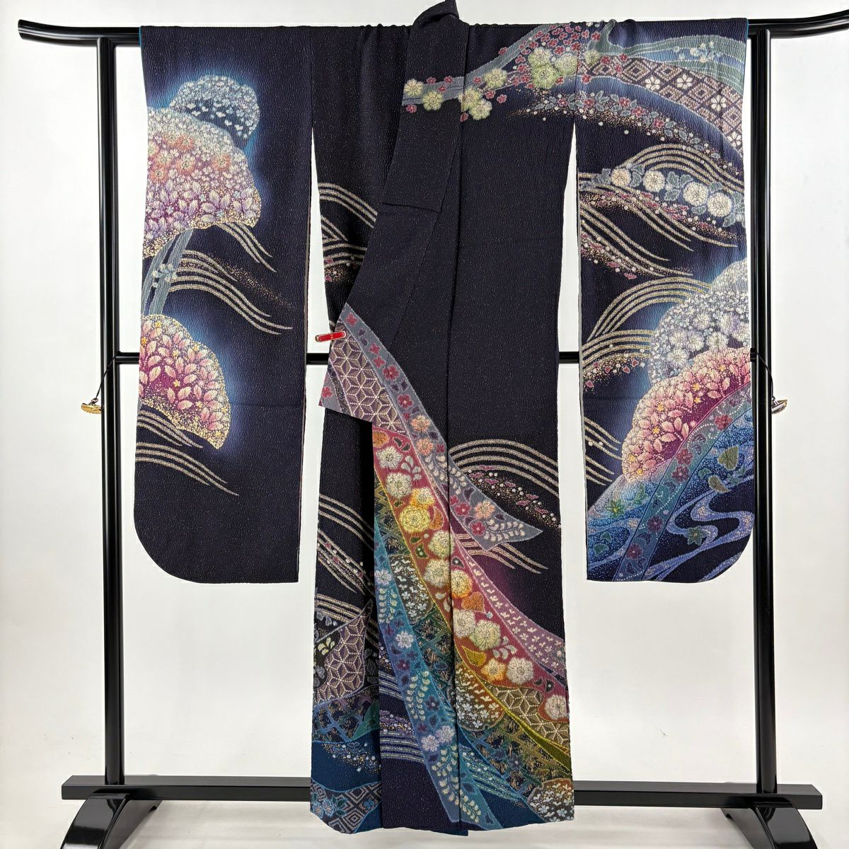 【美品】 訪問着 身丈158.5cm 裄丈68.5cm L 袷 翠山工房 落款あり 辻が花 ぼかし 墨色 正絹 逸品