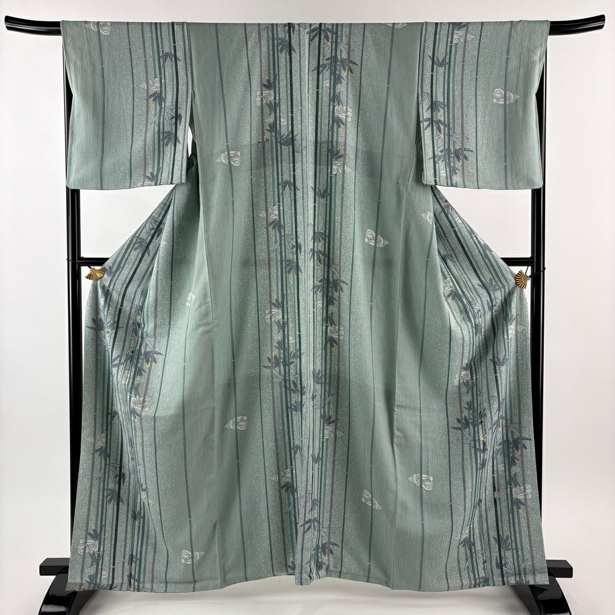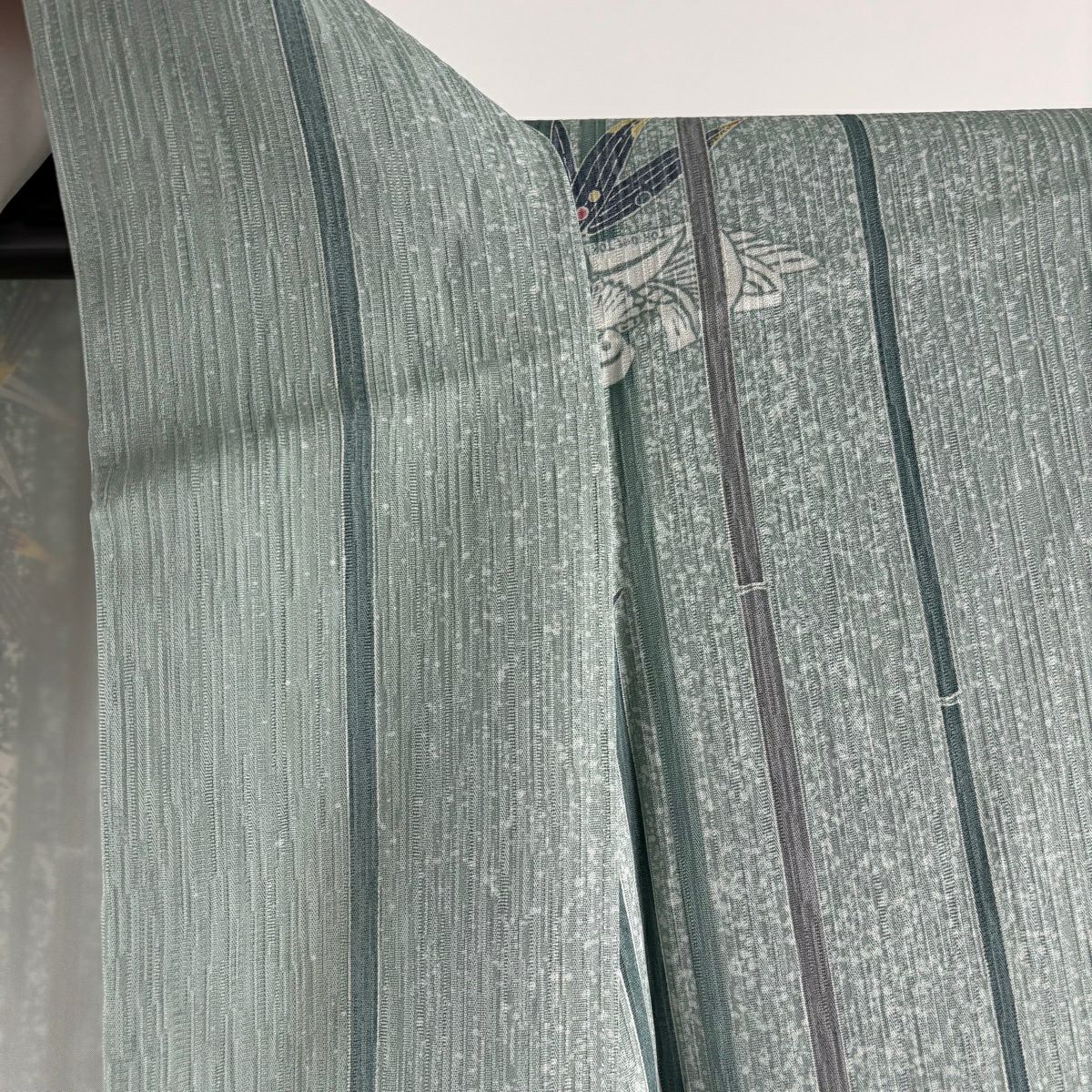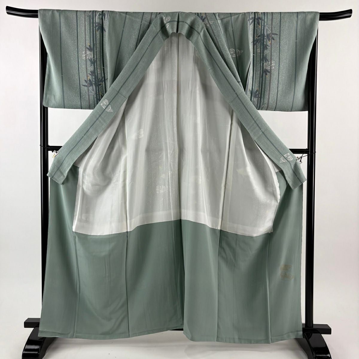 【美品】 小紋 身丈164cm 裄丈67.5cm L 袷 TOKI et TOKI 落款あり 笹 鴛鴦 薄緑 正絹 逸品