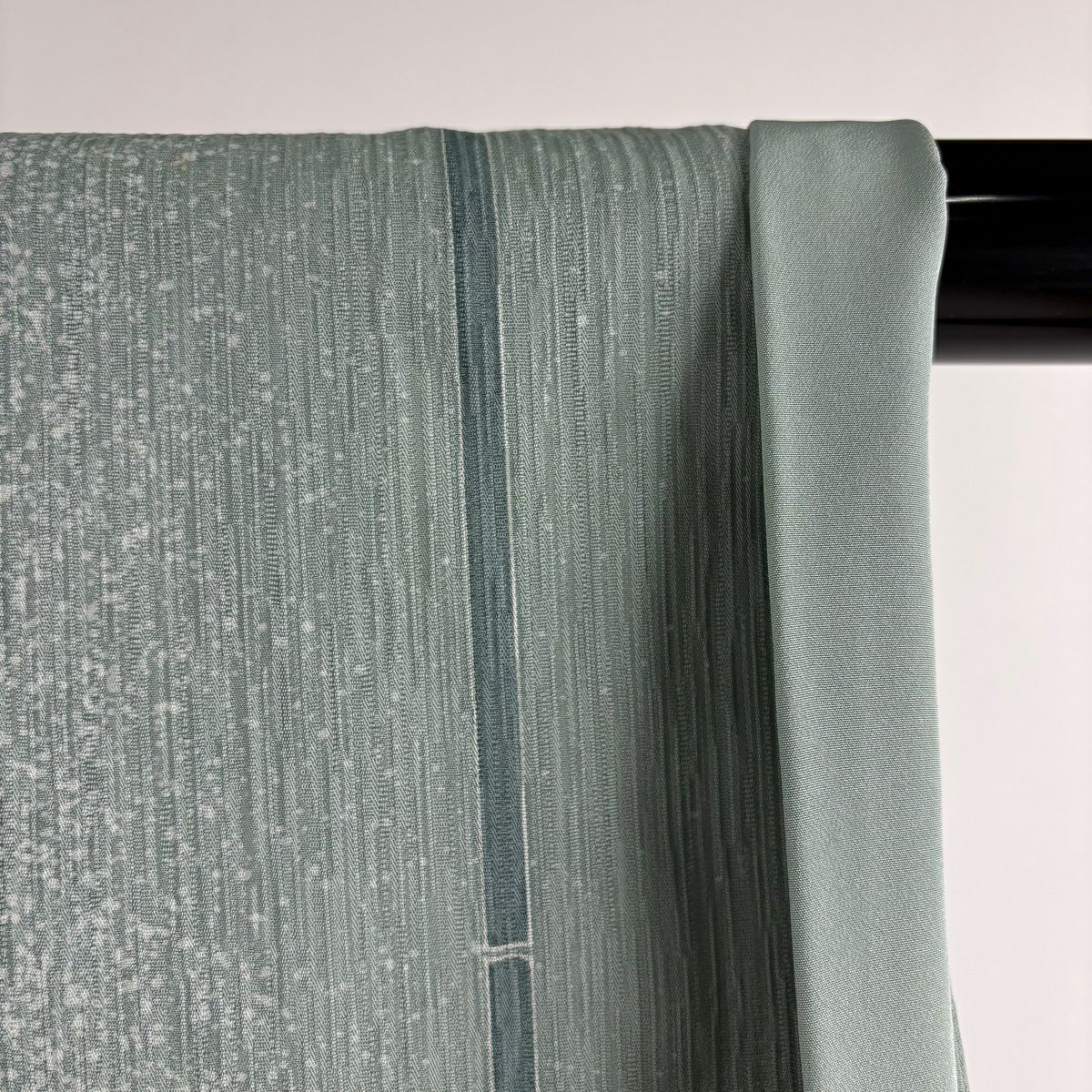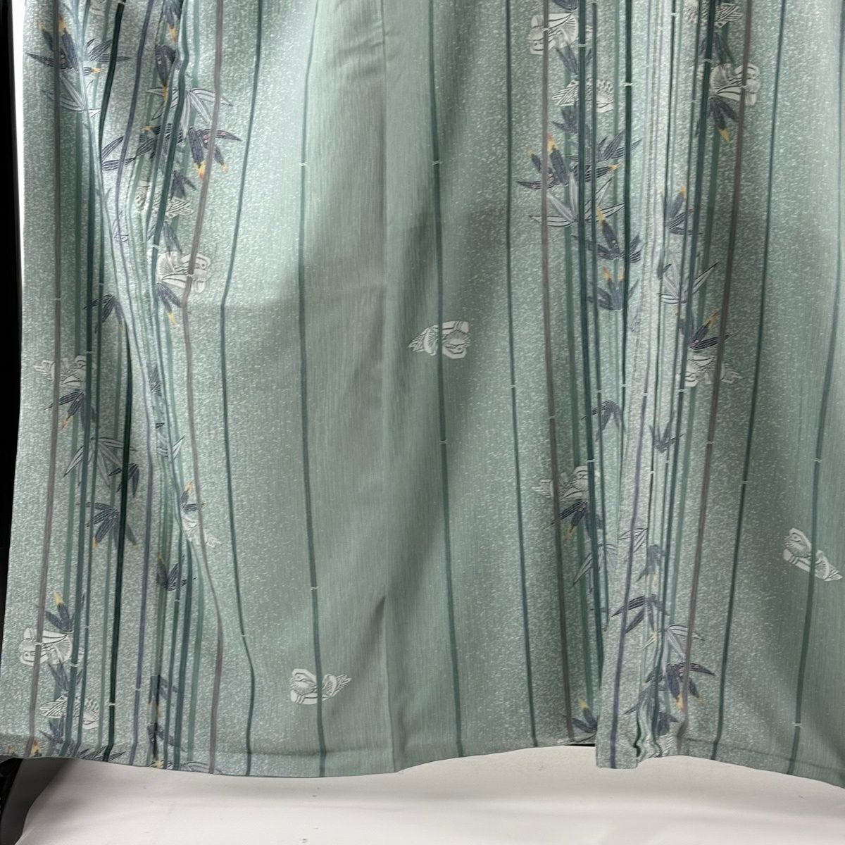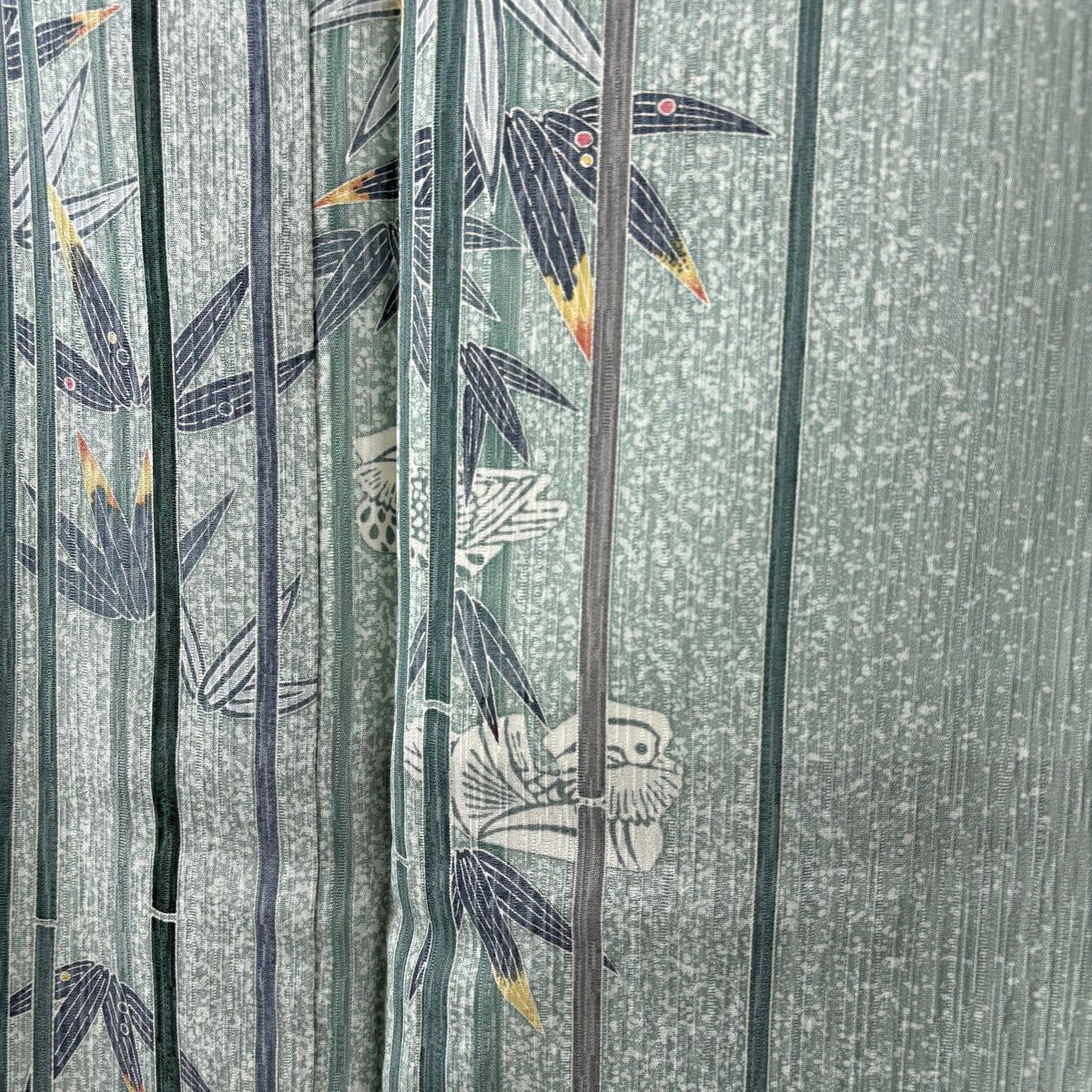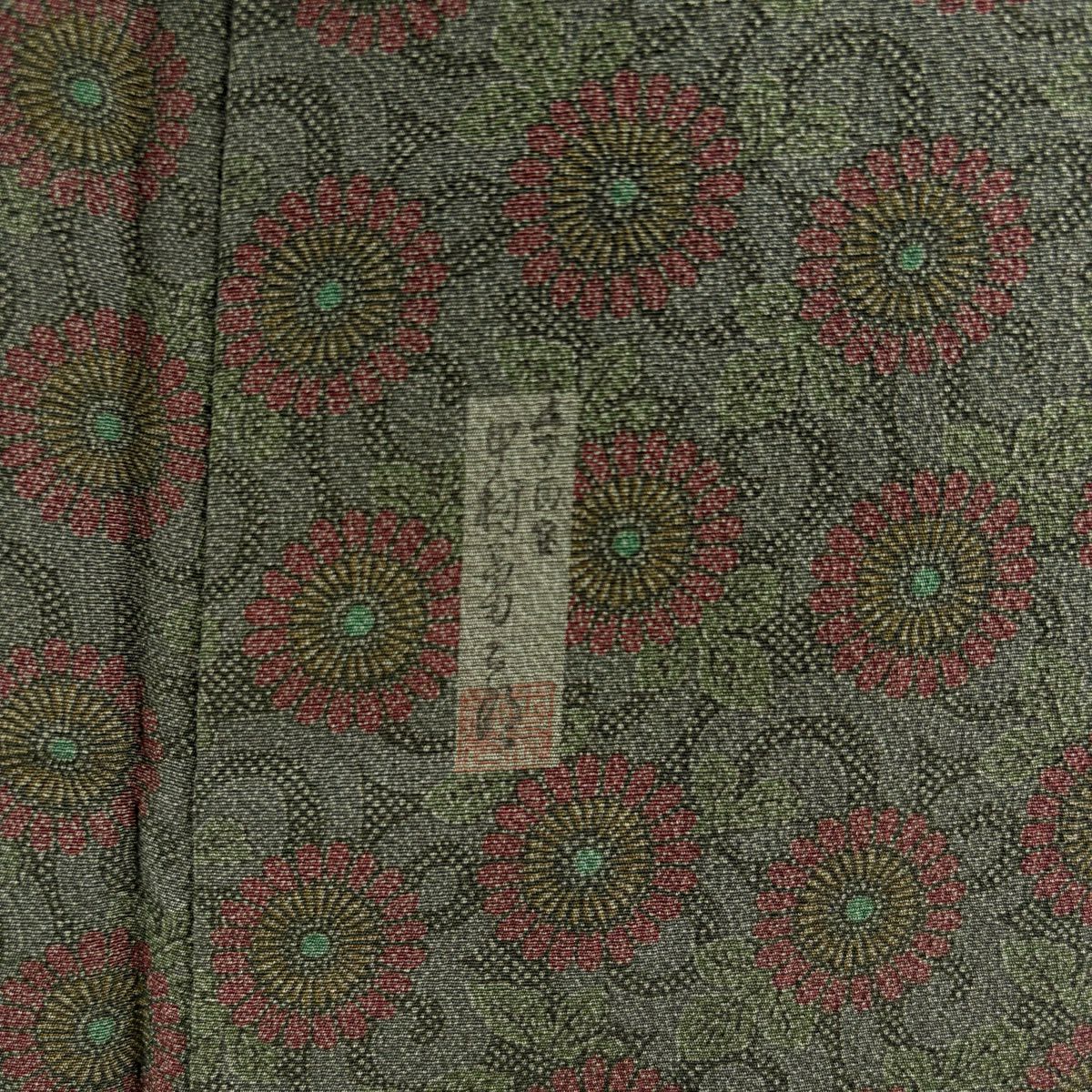 【美品】 小紋 身丈164cm 裄丈67.5cm L 袷 TOKI et TOKI 落款あり 笹 鴛鴦 薄緑 正絹 逸品