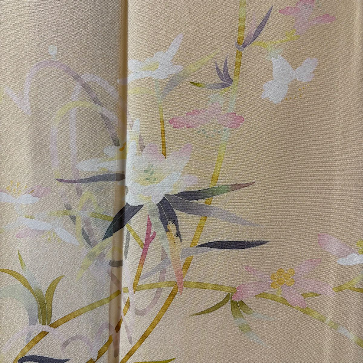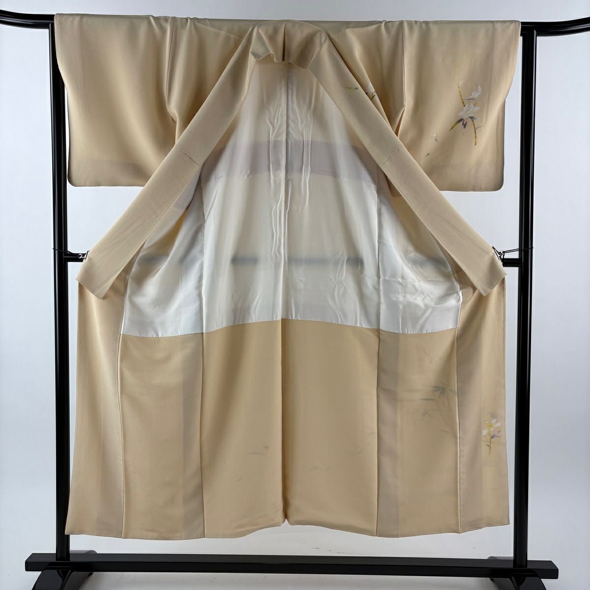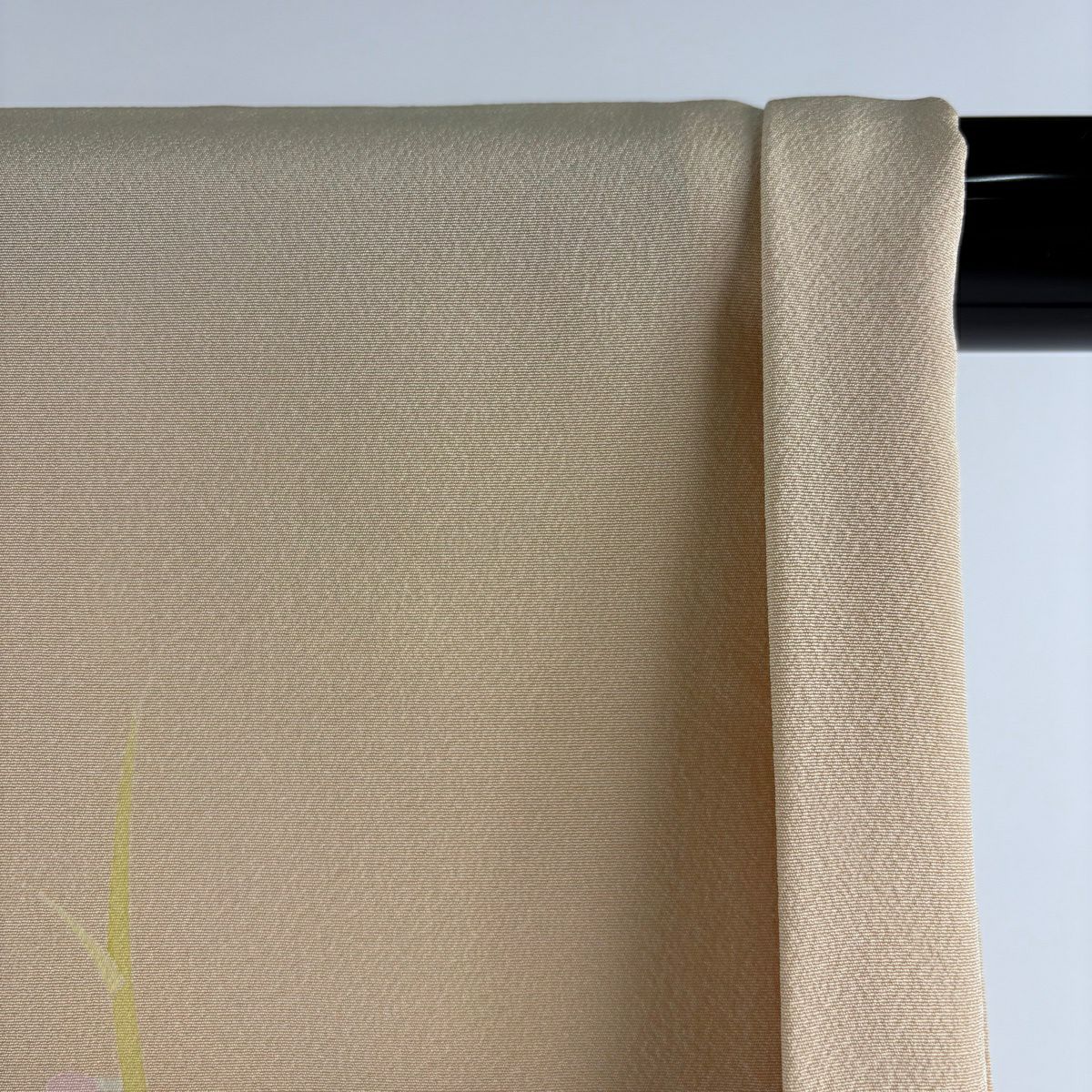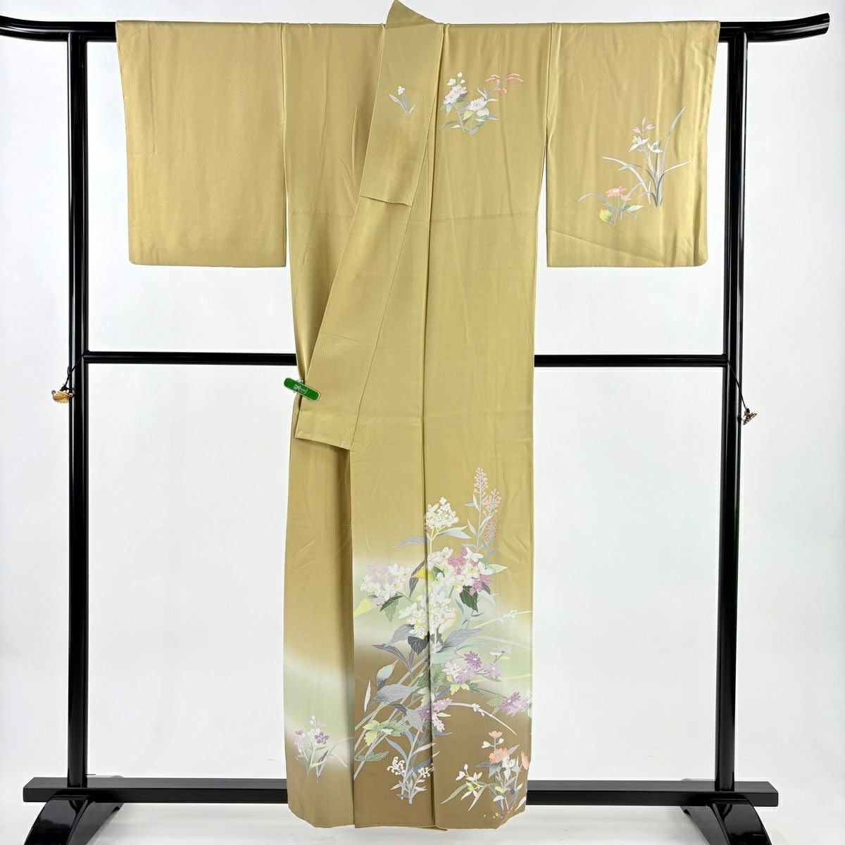 【美品】 付下げ 身丈150.5cm 裄丈63.5cm S 袷 百貫石峰 落款あり 草花 ベージュ 正絹 逸品