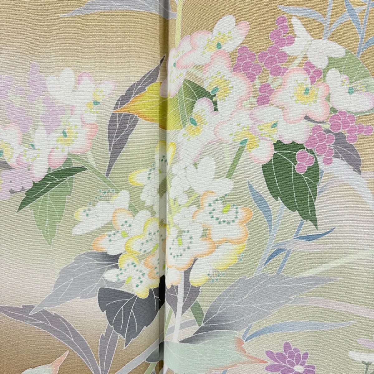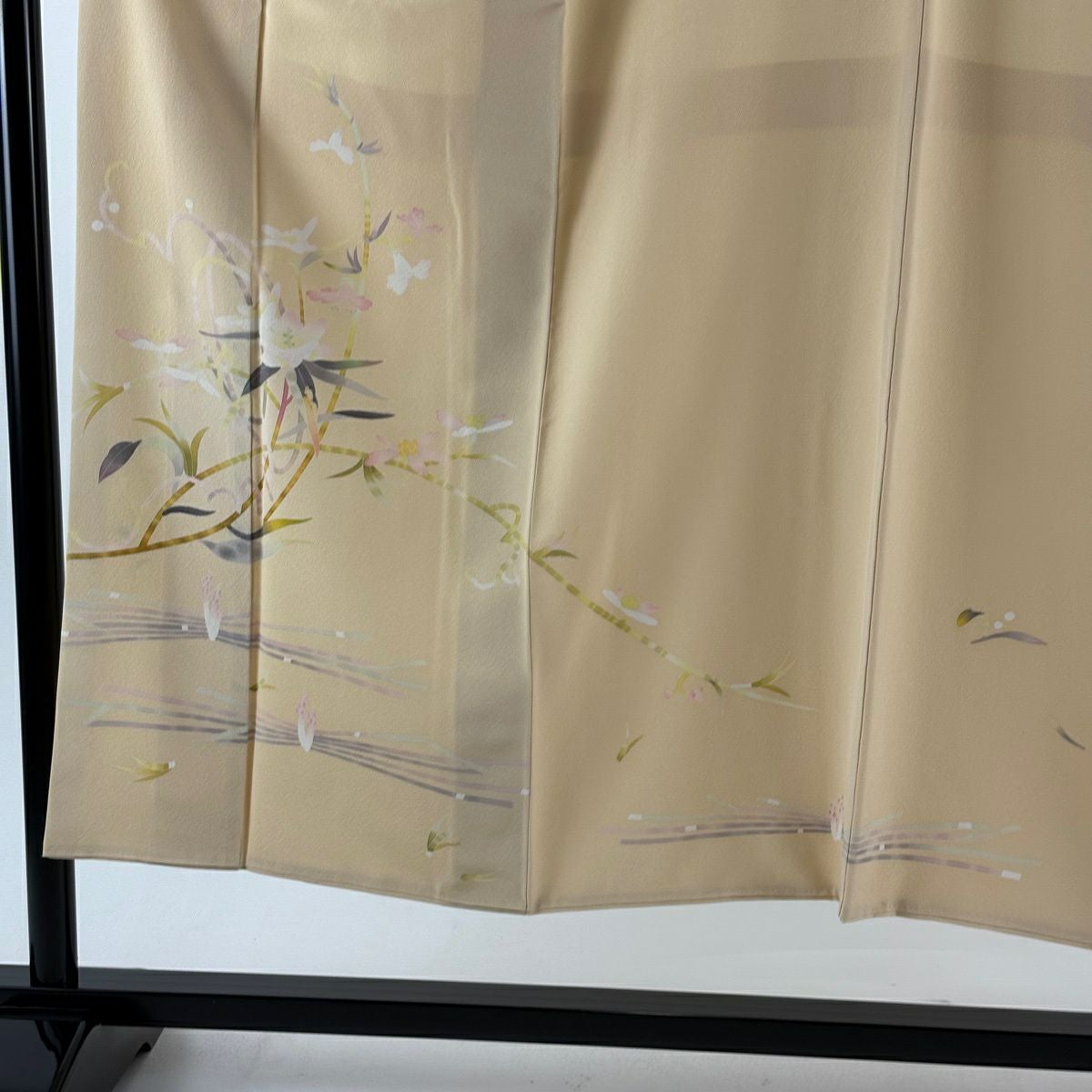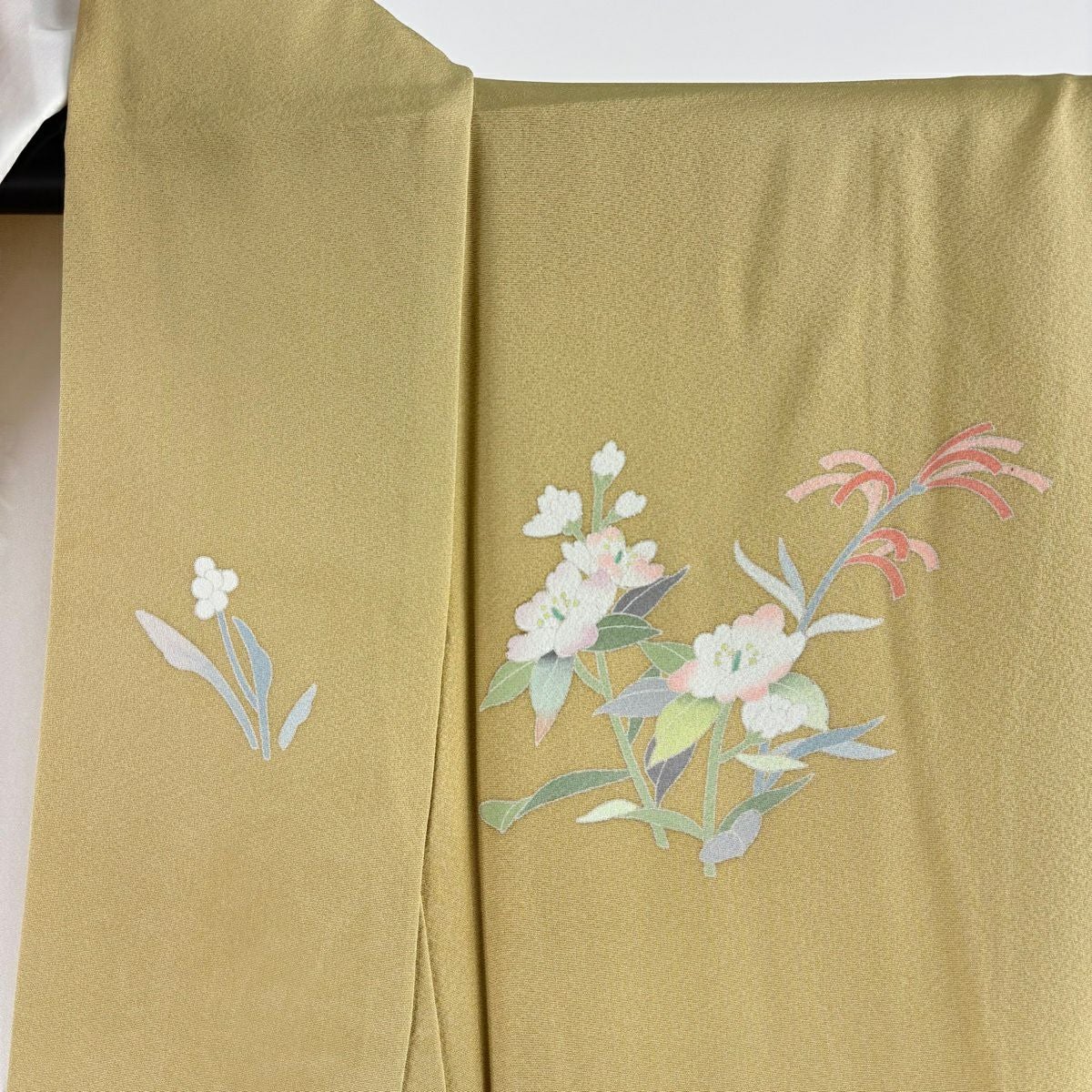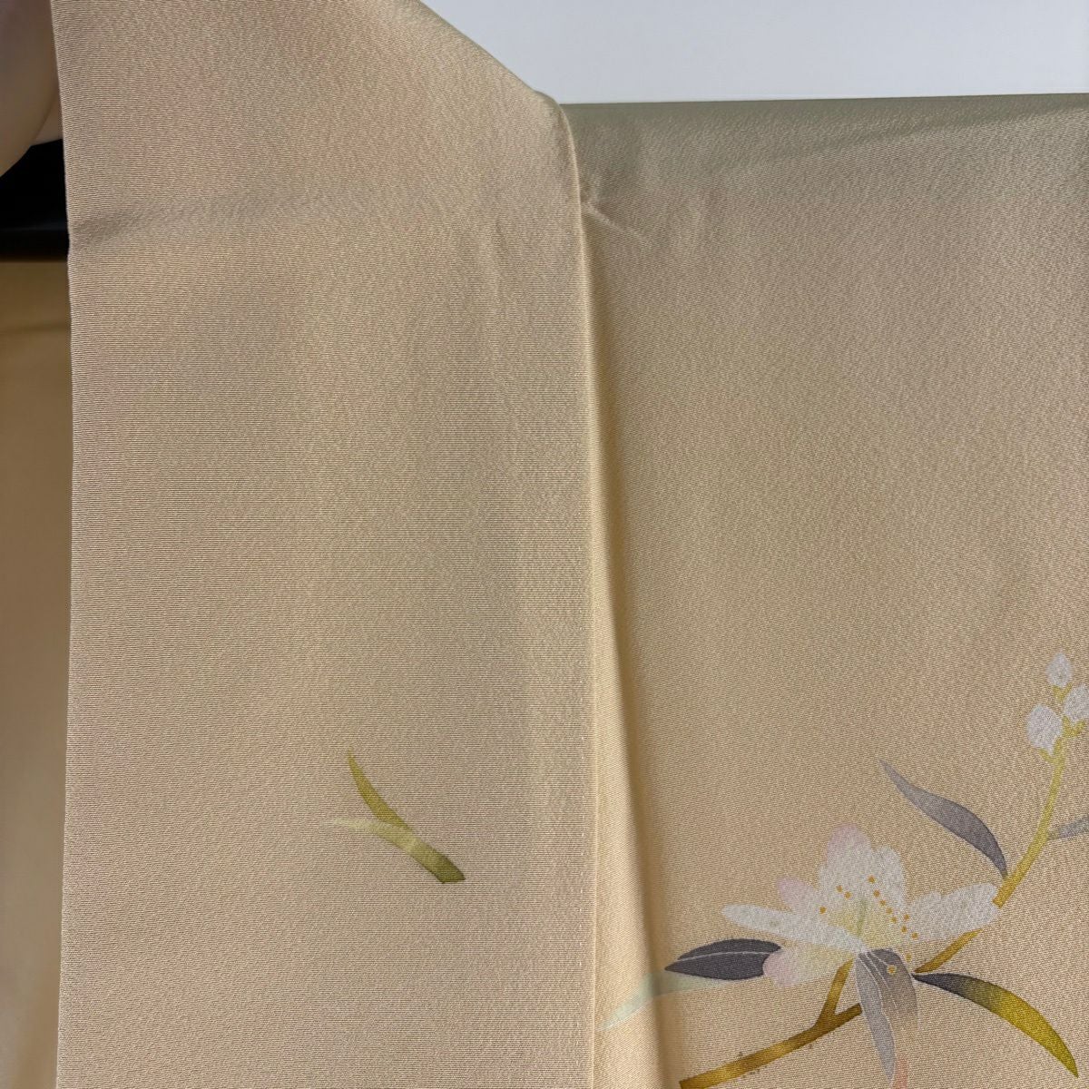 【美品】 付下げ 身丈150.5cm 裄丈63.5cm S 袷 百貫石峰 落款あり 草花 ベージュ 正絹 逸品