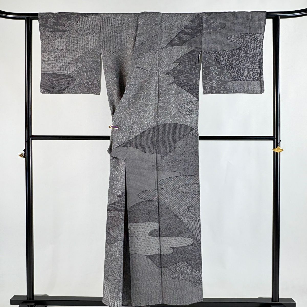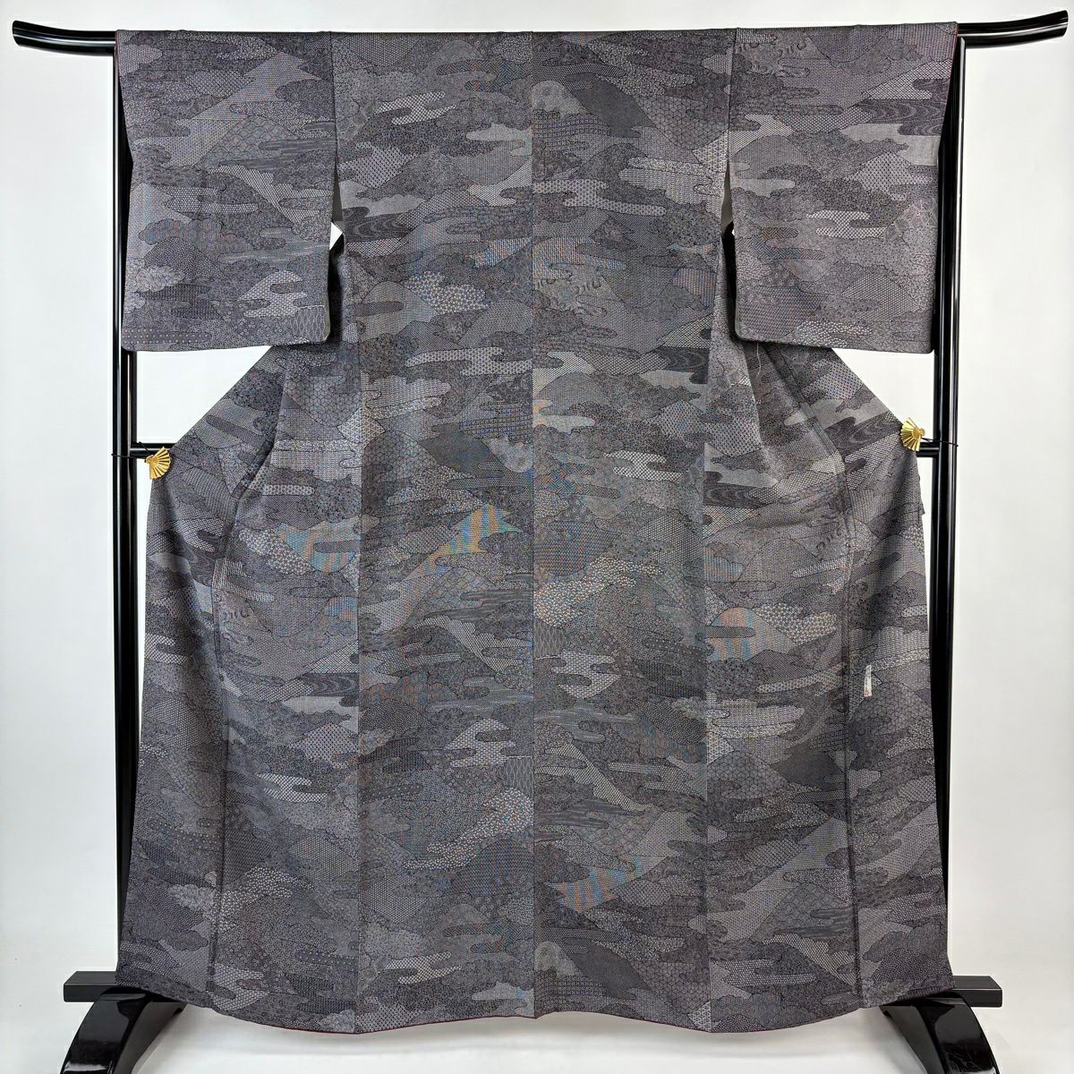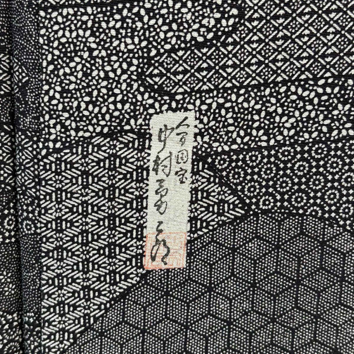 江戸小紋 身丈161.5cm 裄丈64cm M 袷 人間国宝 中村勇二郎 落款あり 寄せ柄 山 黒 正絹 逸品