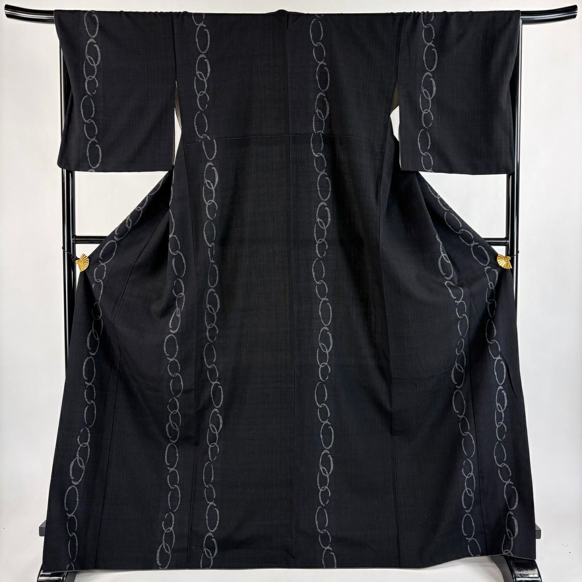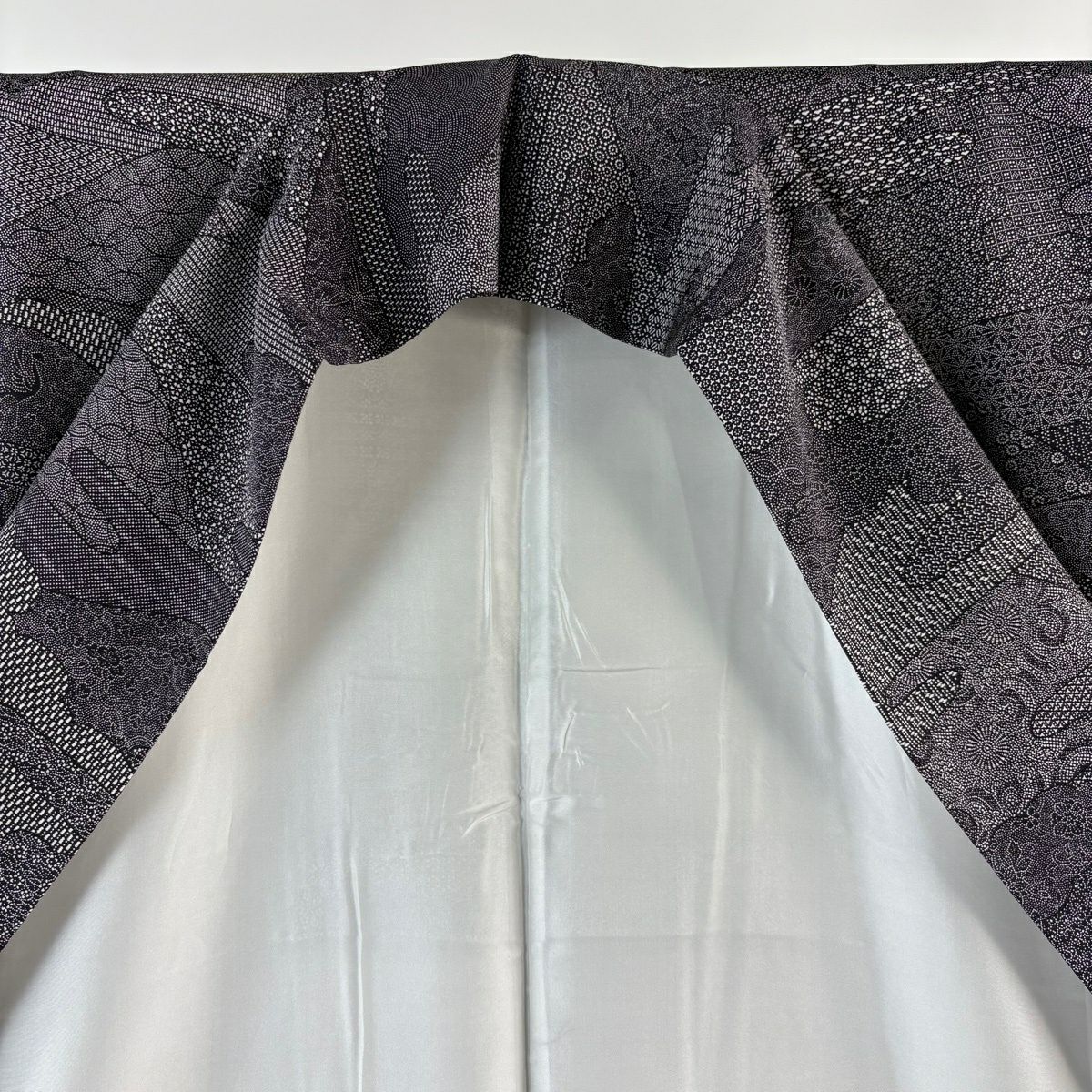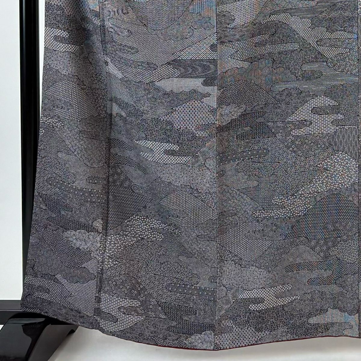 江戸小紋 身丈161.5cm 裄丈64cm M 袷 人間国宝 中村勇二郎 落款あり 寄せ柄 山 黒 正絹 逸品