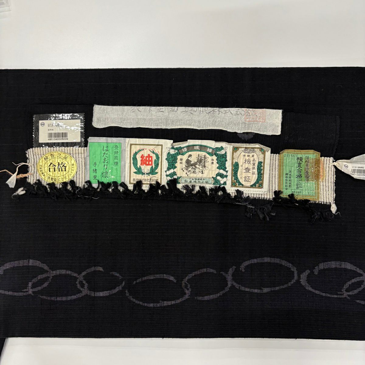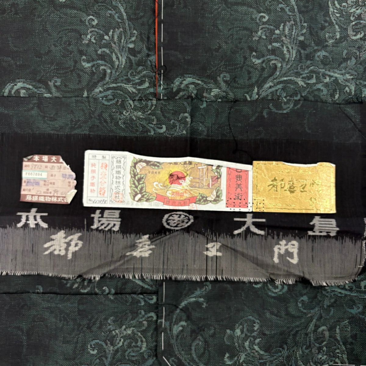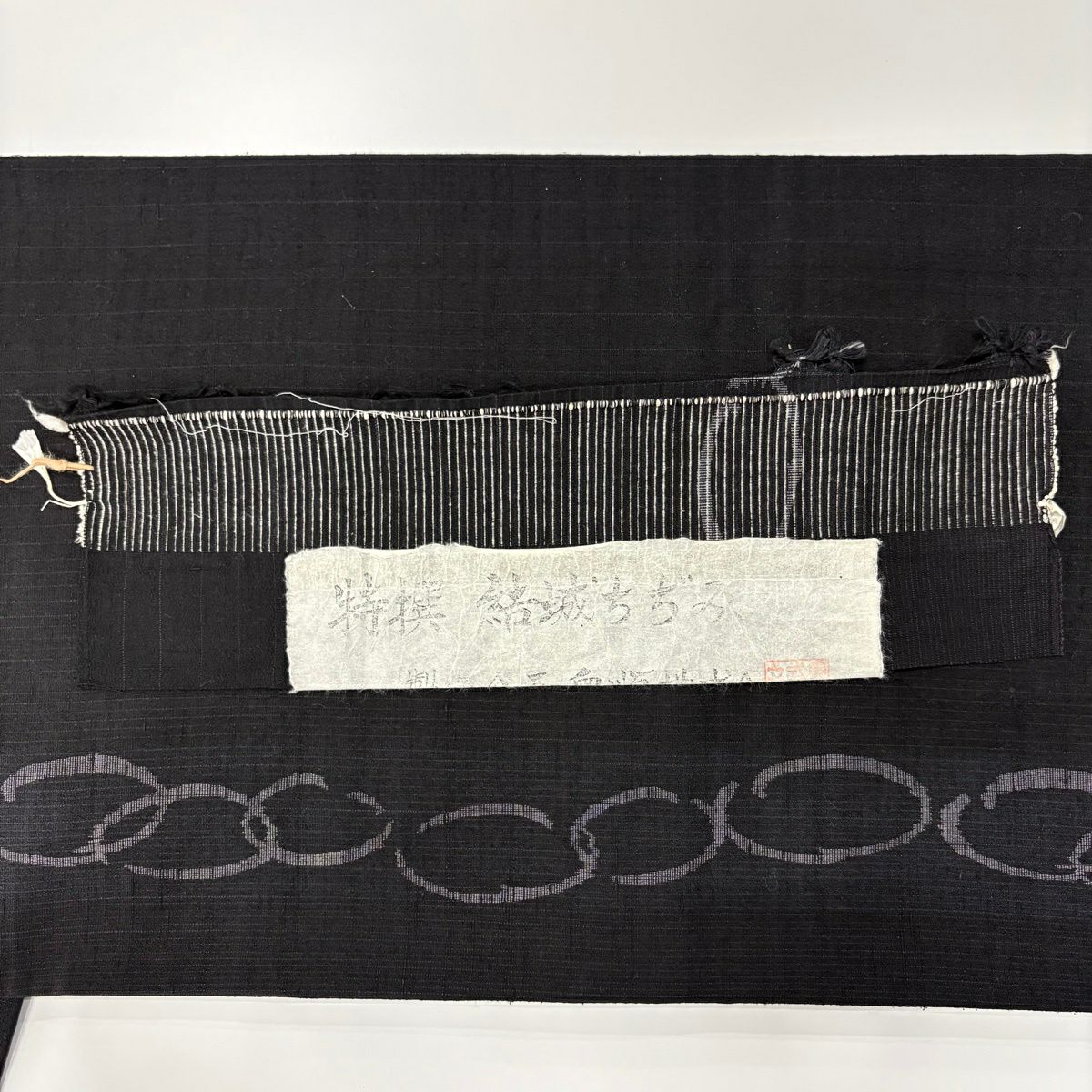 大島紬 身丈164cm 裄丈65.5cm M 袷 都喜ヱ門 証紙あり 短冊 花唐草 純泥染 焦茶色 正絹 逸品
