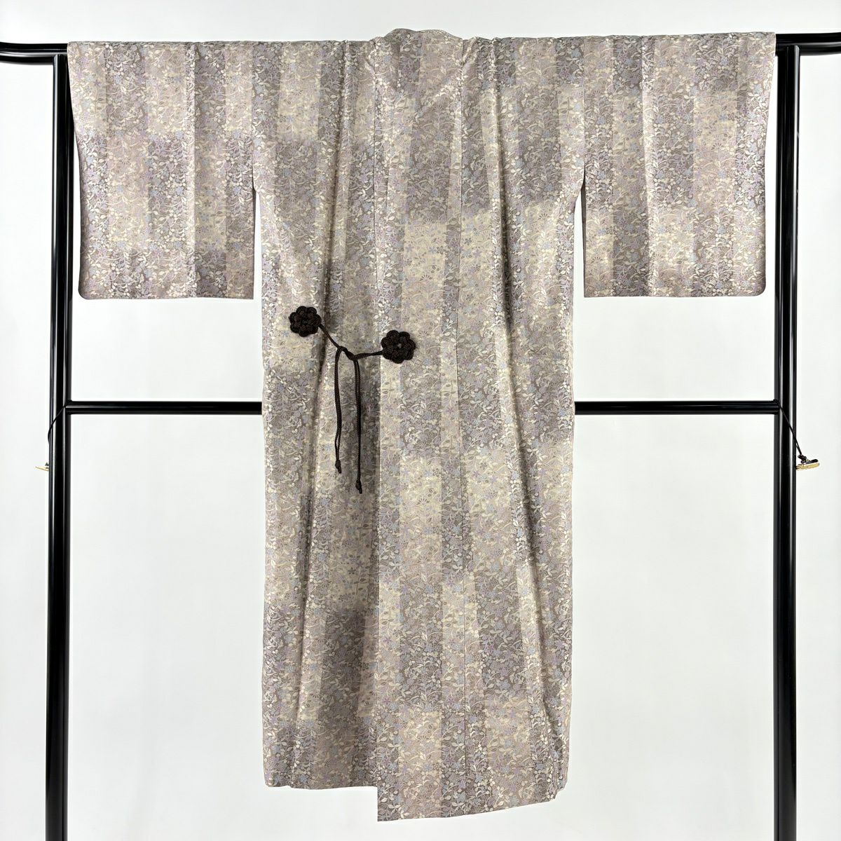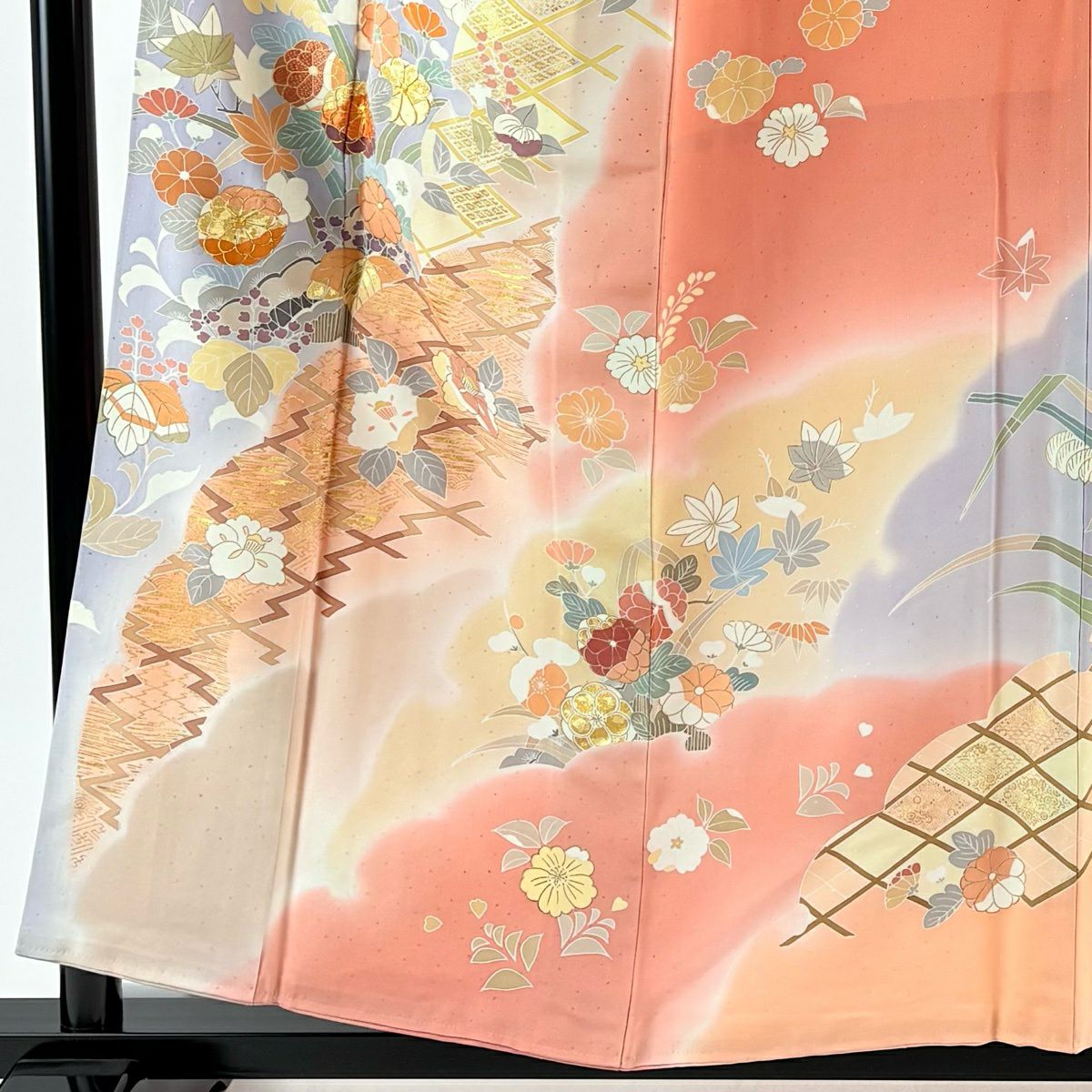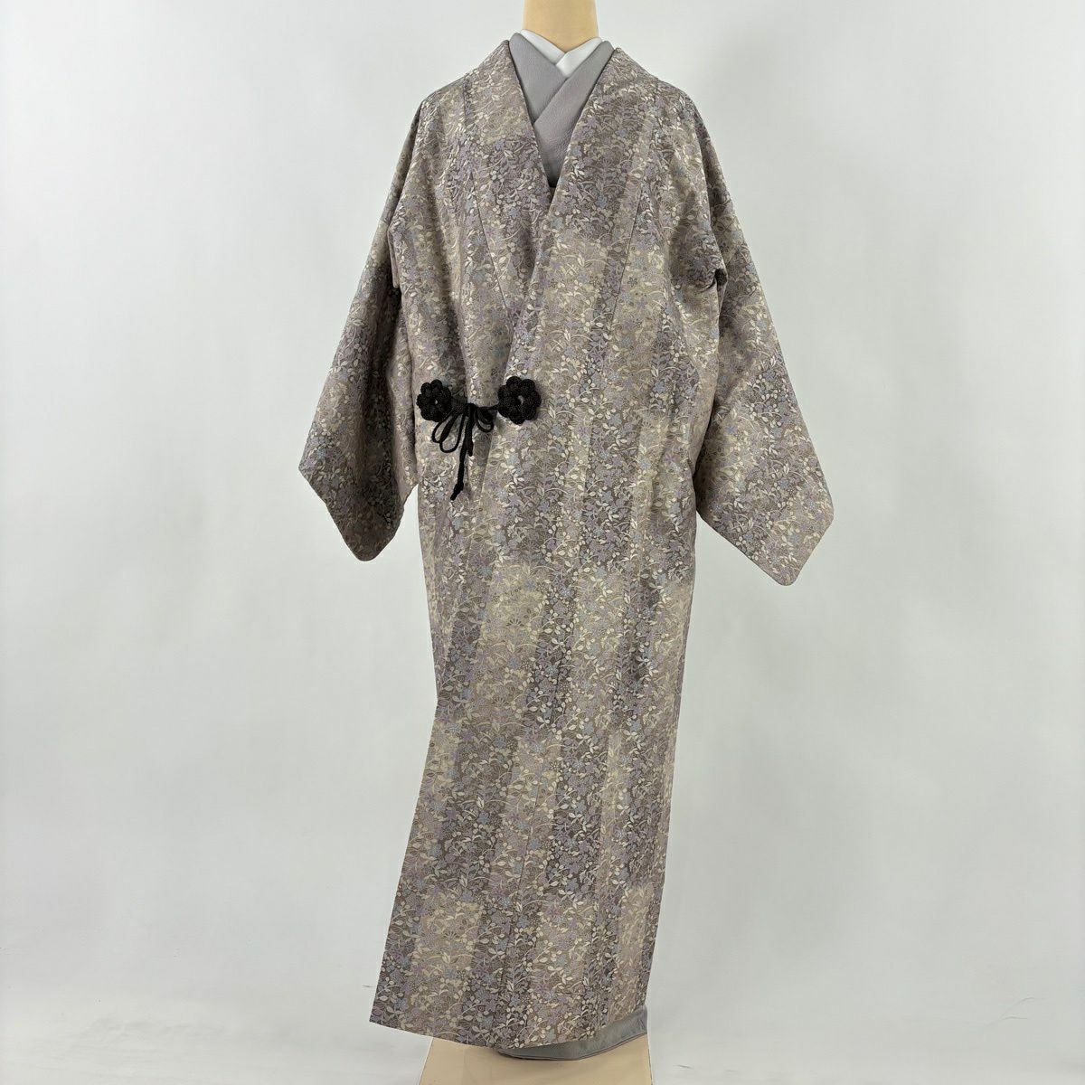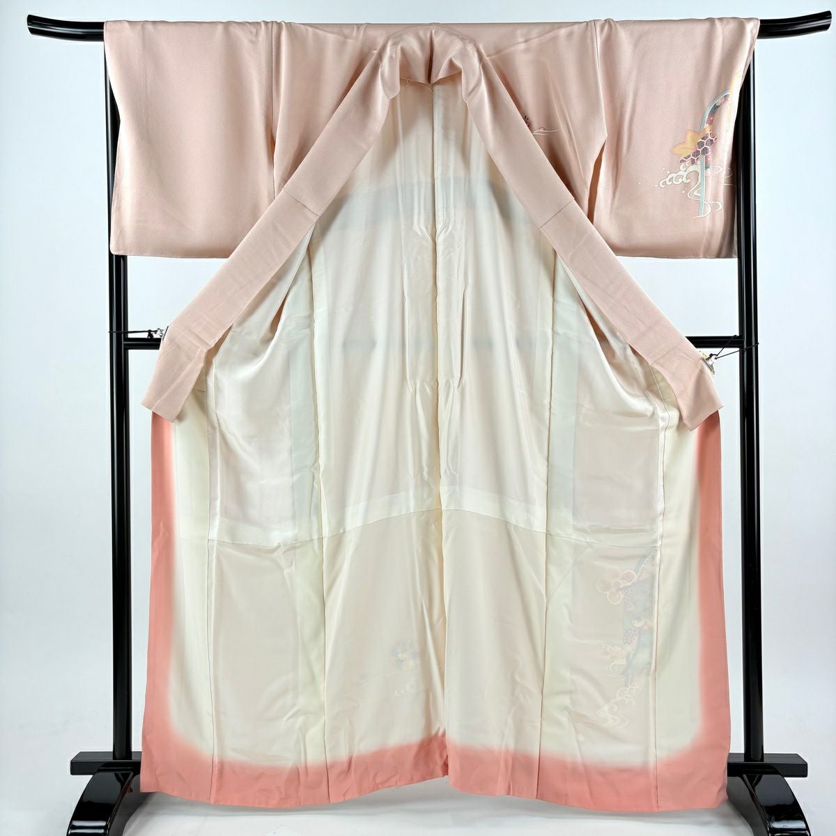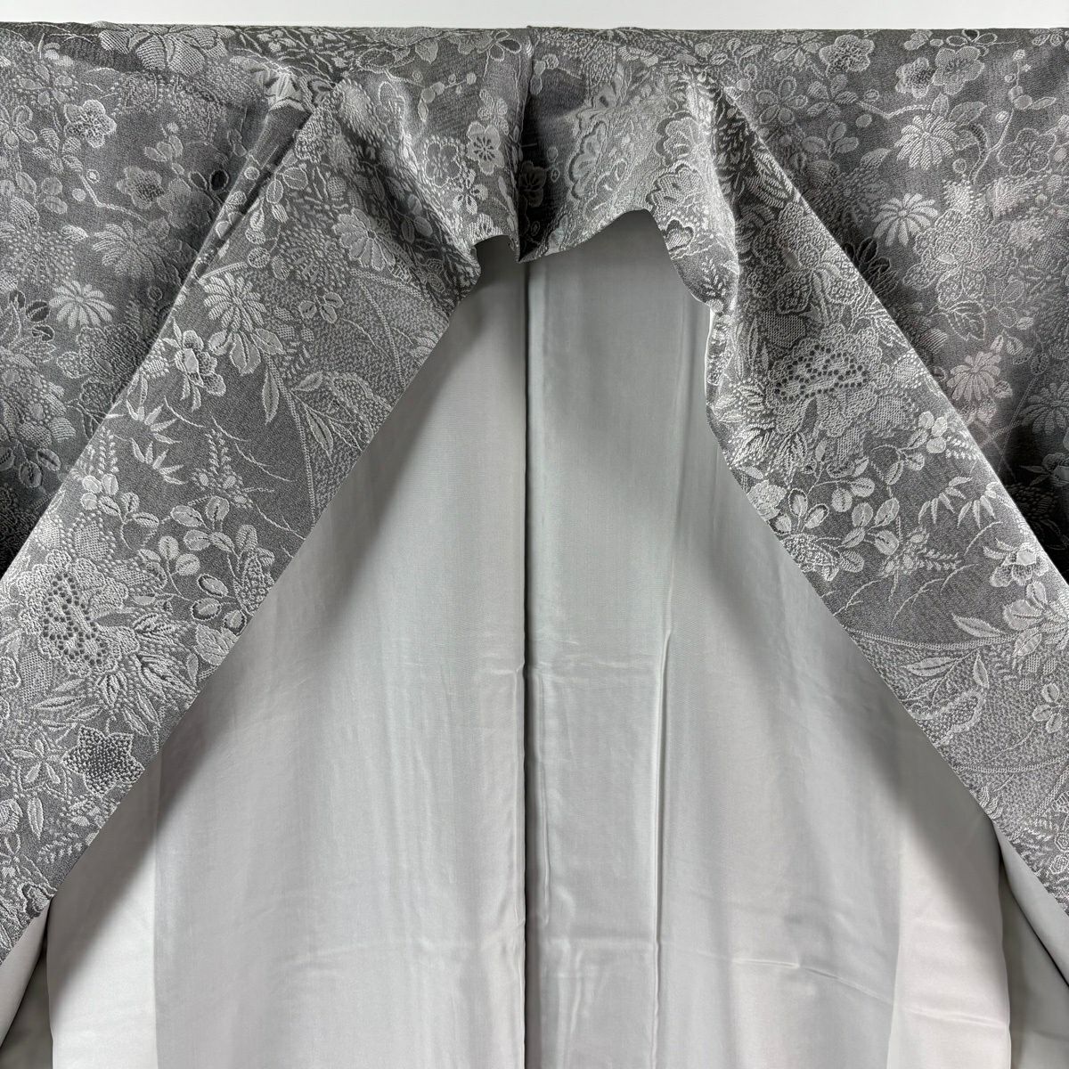 訪問着 身丈151.5cm 裄丈63cm S 袷 落款あり 菊 松梅 金糸 染め分け 灰色 正絹 逸品 一つ紋