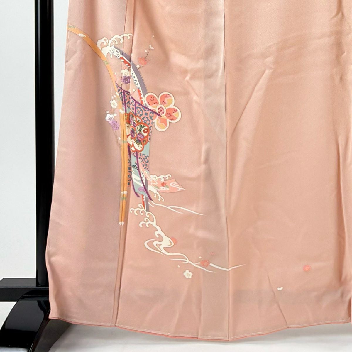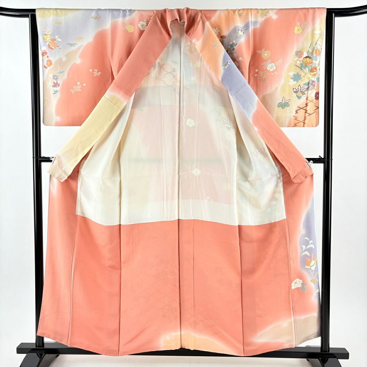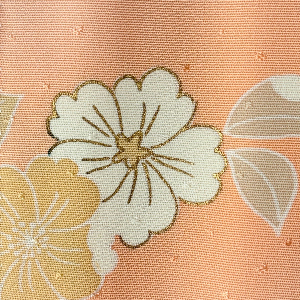 【在庫一掃】 【美品】 道中着 身丈95cm 裄丈67.5cm L 和装コート 蝶 草花 薄オレンジ 正絹 逸品