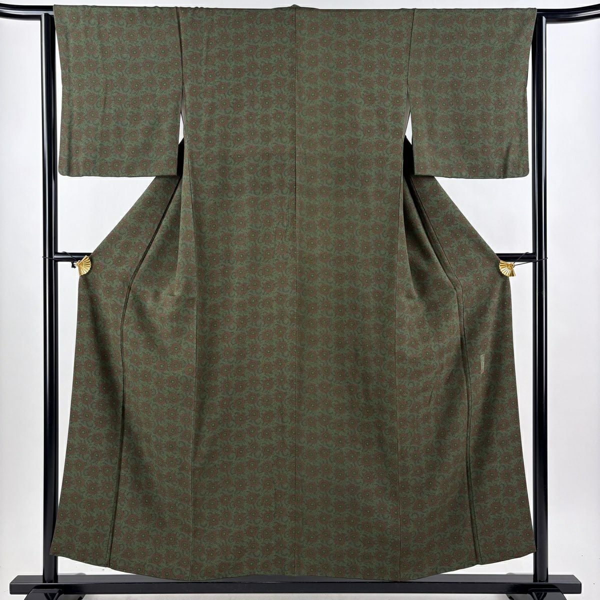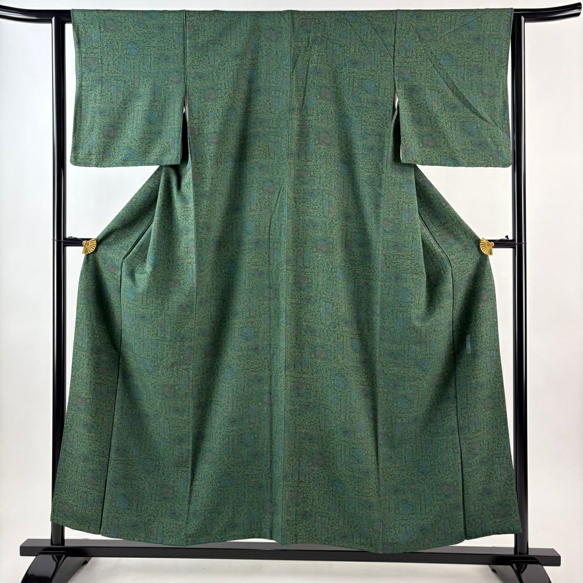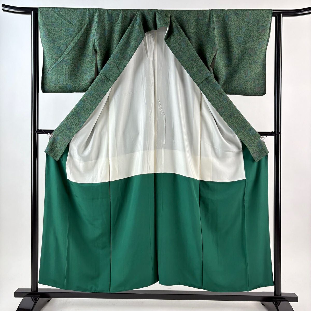 【美品】 結城紬 身丈156cm 裄丈65.5cm M 袷 本場結城紬 奥順 証紙あり 蝶 笠松 深緑 正絹 逸品