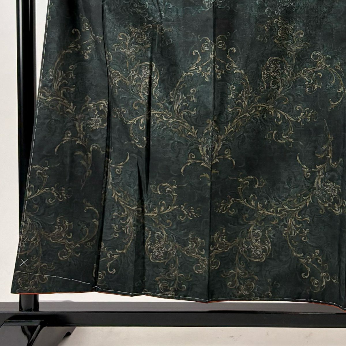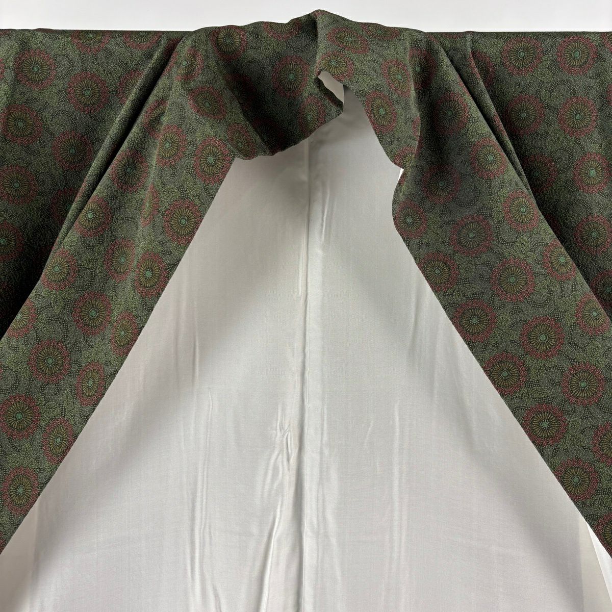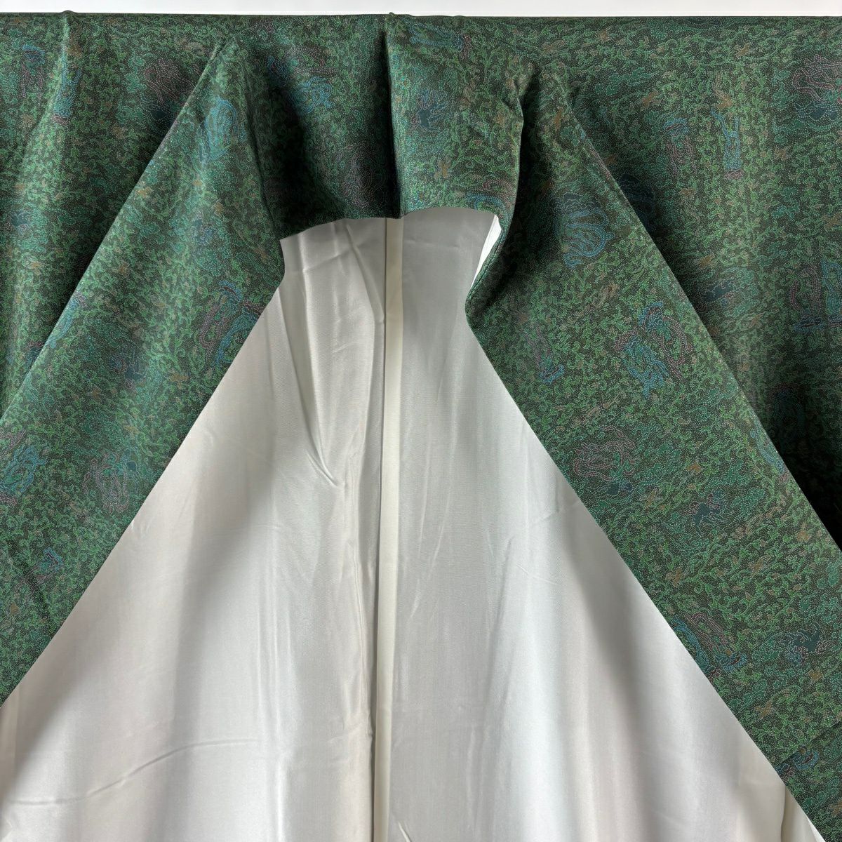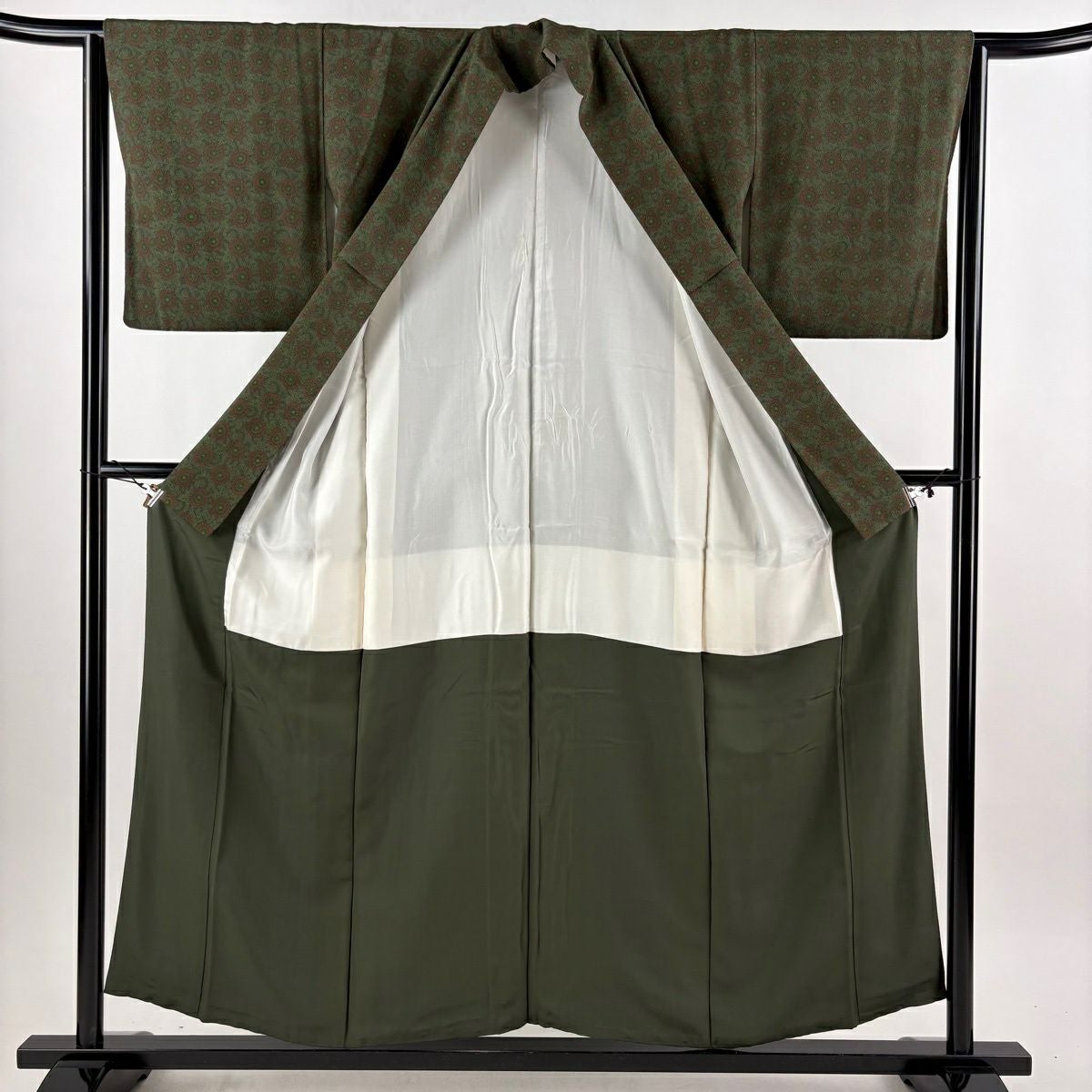 【美品】 結城紬 身丈156cm 裄丈65.5cm M 袷 本場結城紬 奥順 証紙あり 蝶 笠松 深緑 正絹 逸品