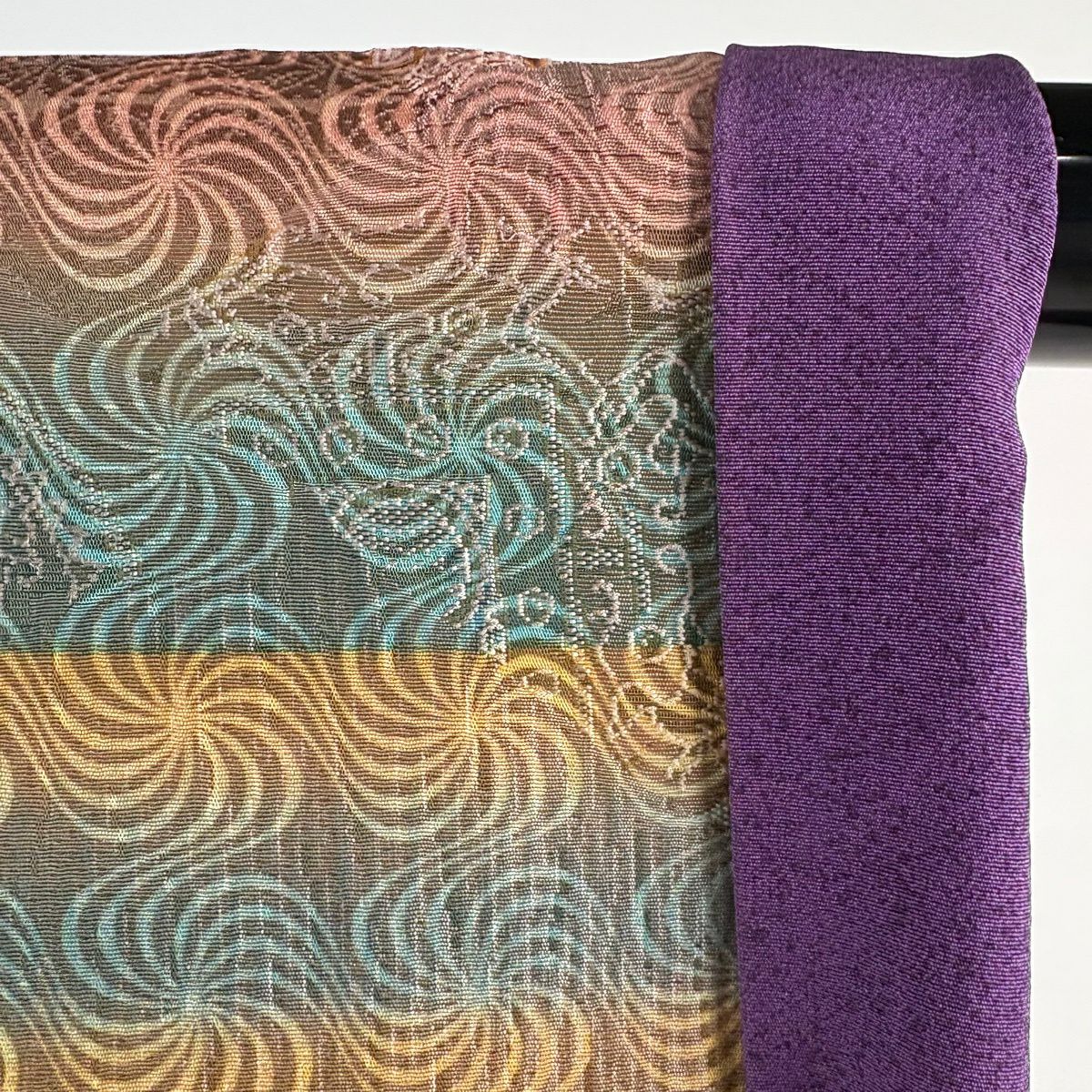 訪問着 身丈150cm 裄丈62cm S 袷 上野街子 精染居 落款あり 笠松 波 染め分け 赤紫 正絹 逸品