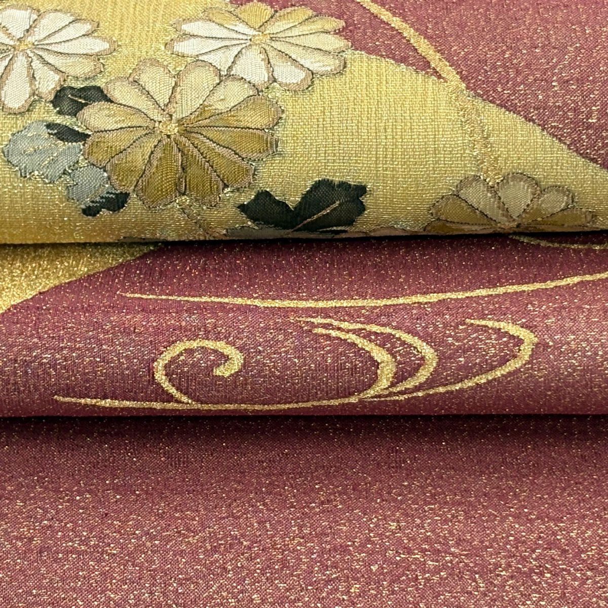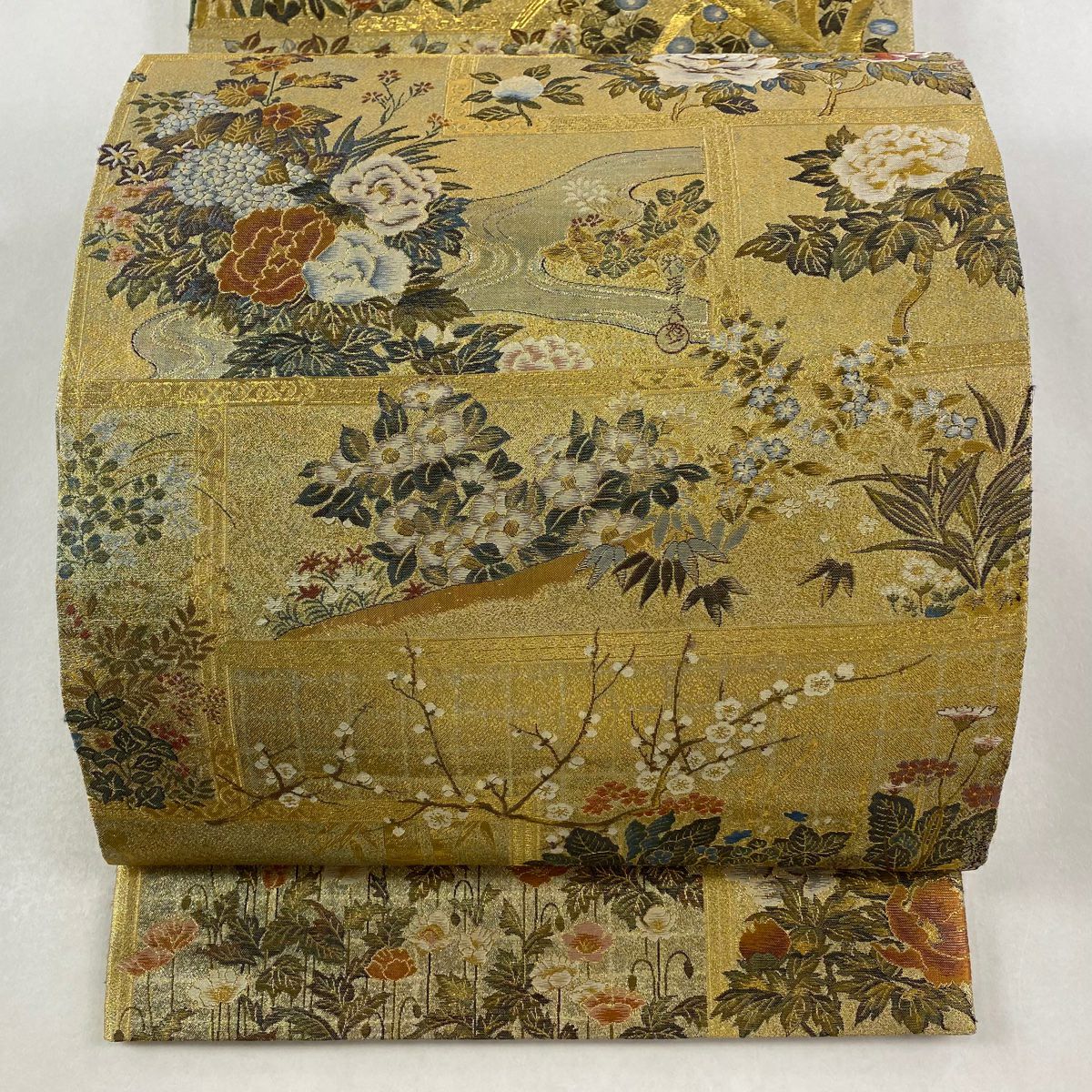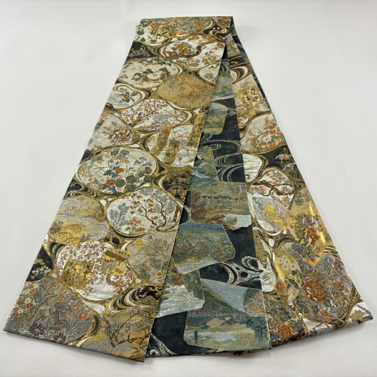 丸帯 逸品 琳派流水名勝図 金糸 箔 金色 お太鼓柄 正絹