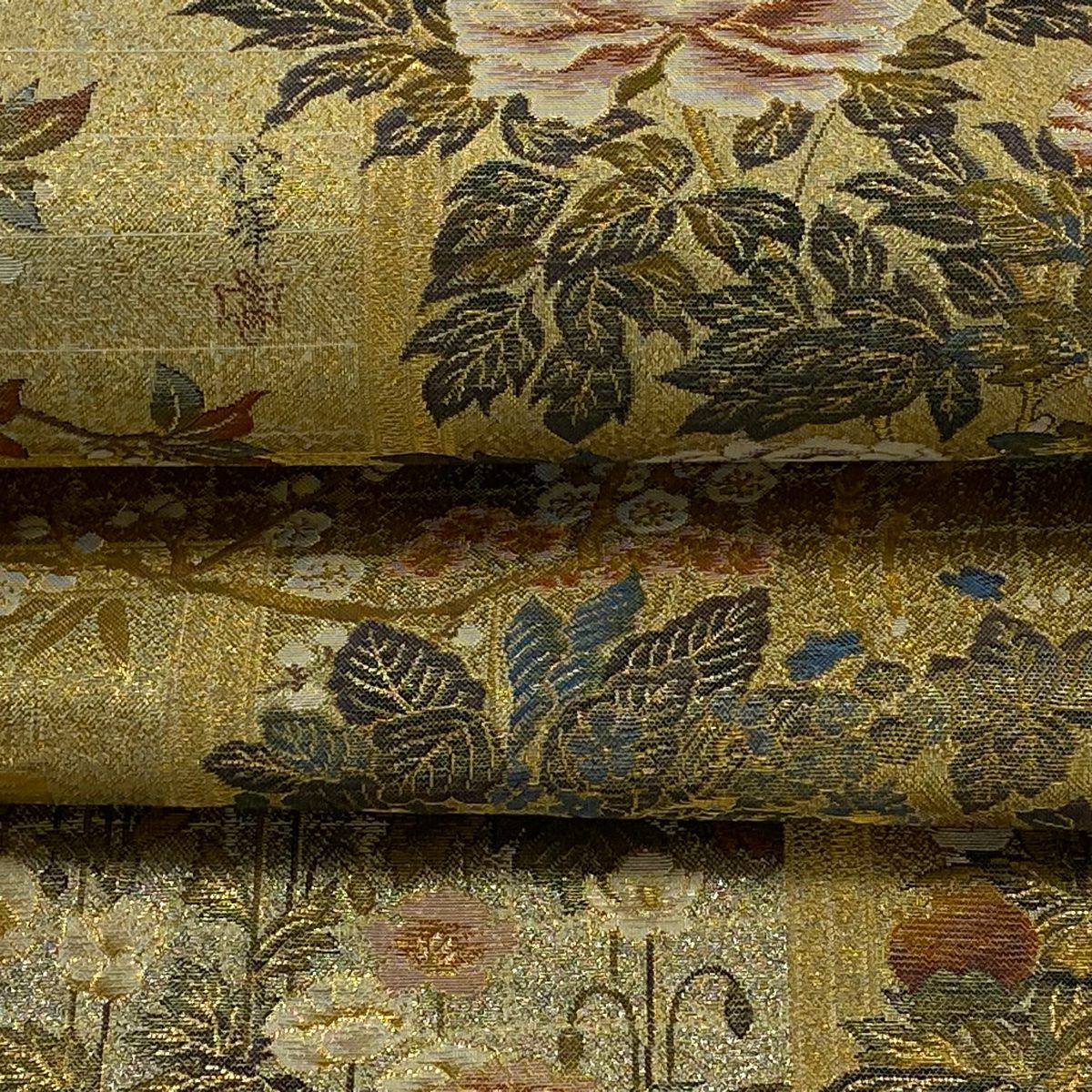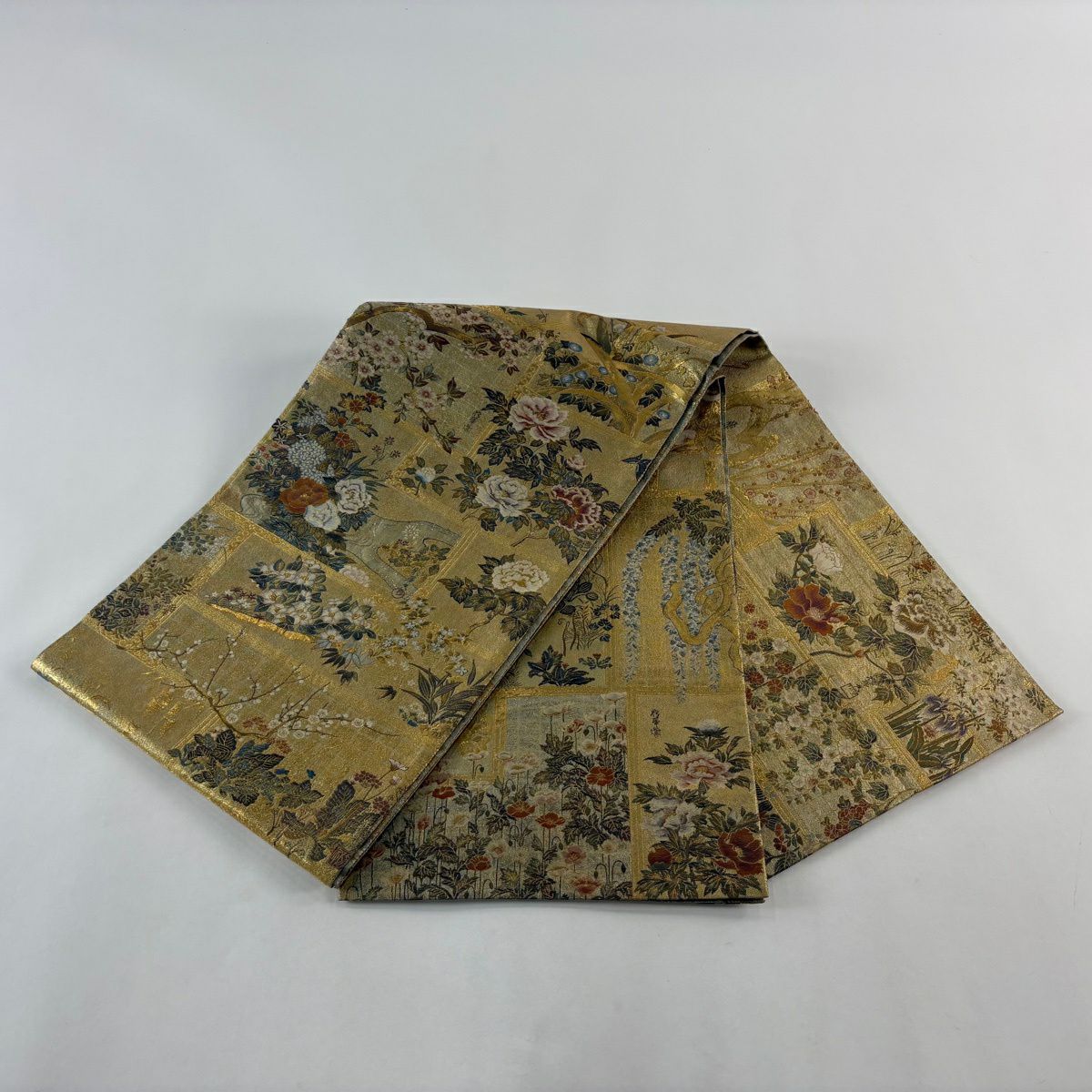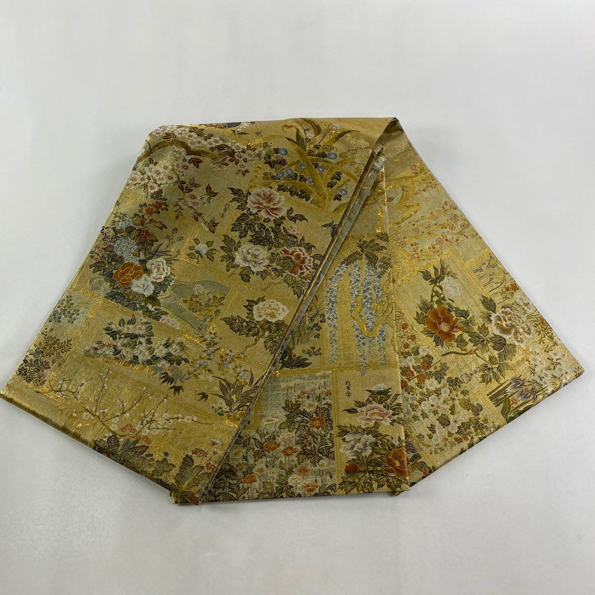 【美品】 丸帯 逸品 草花 金糸 箔 金色 お太鼓柄 正絹