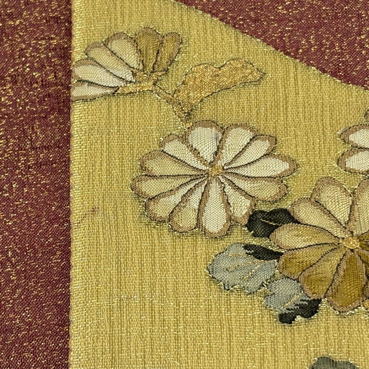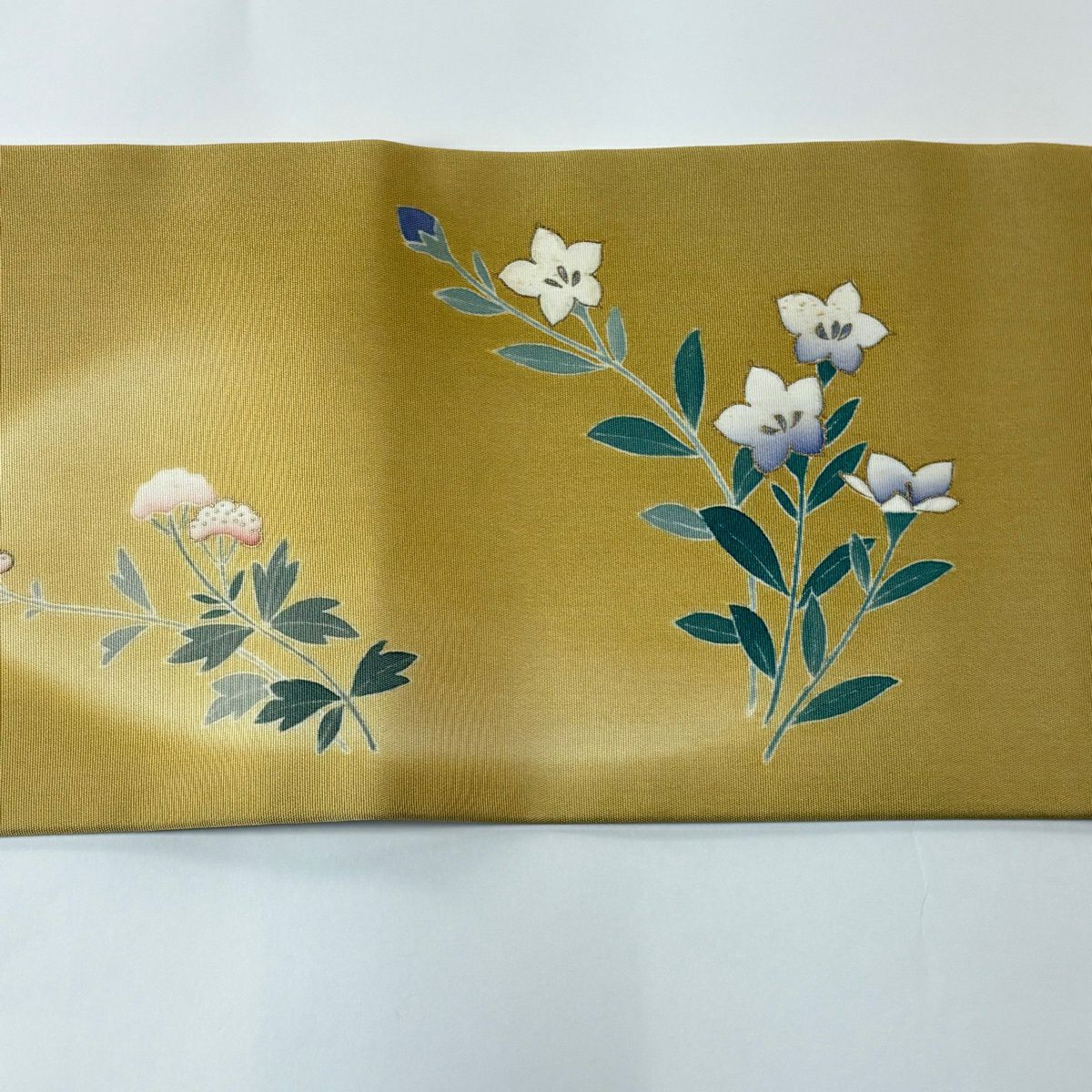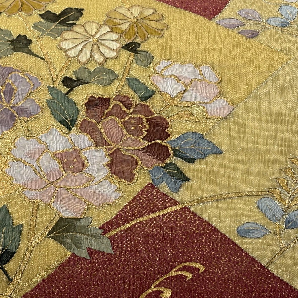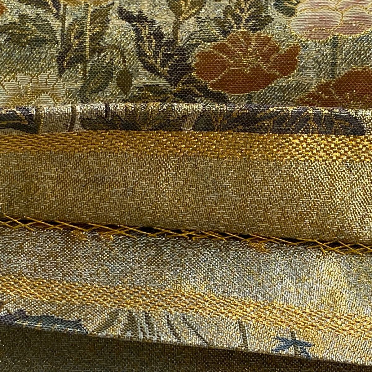 【美品】 丸帯 逸品 草花 金糸 箔 金色 お太鼓柄 正絹