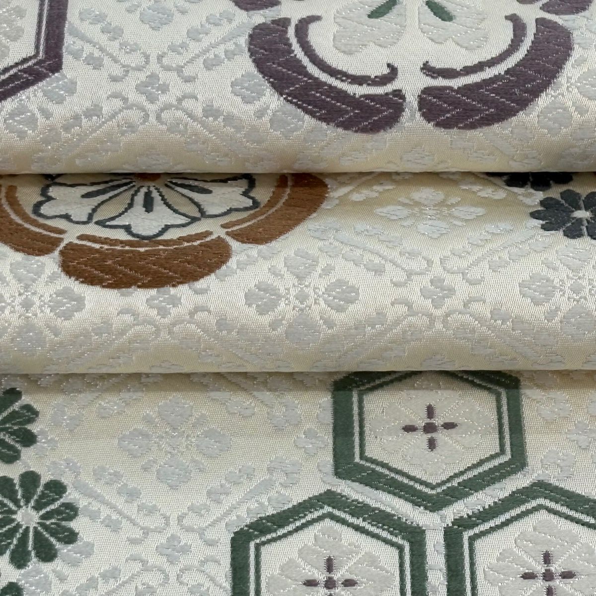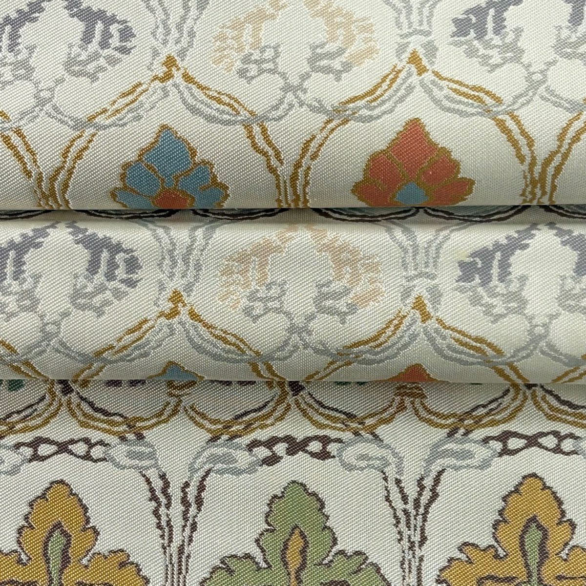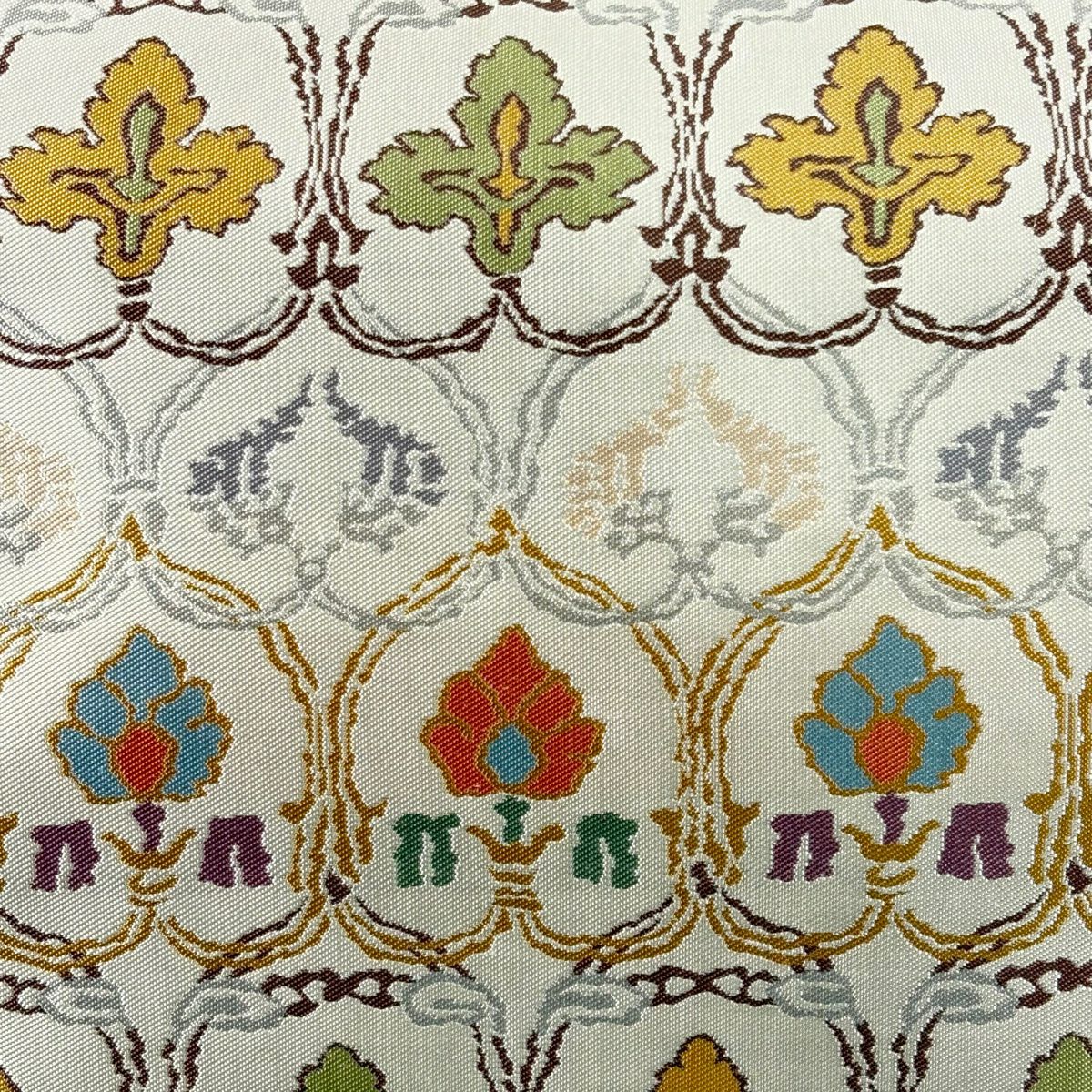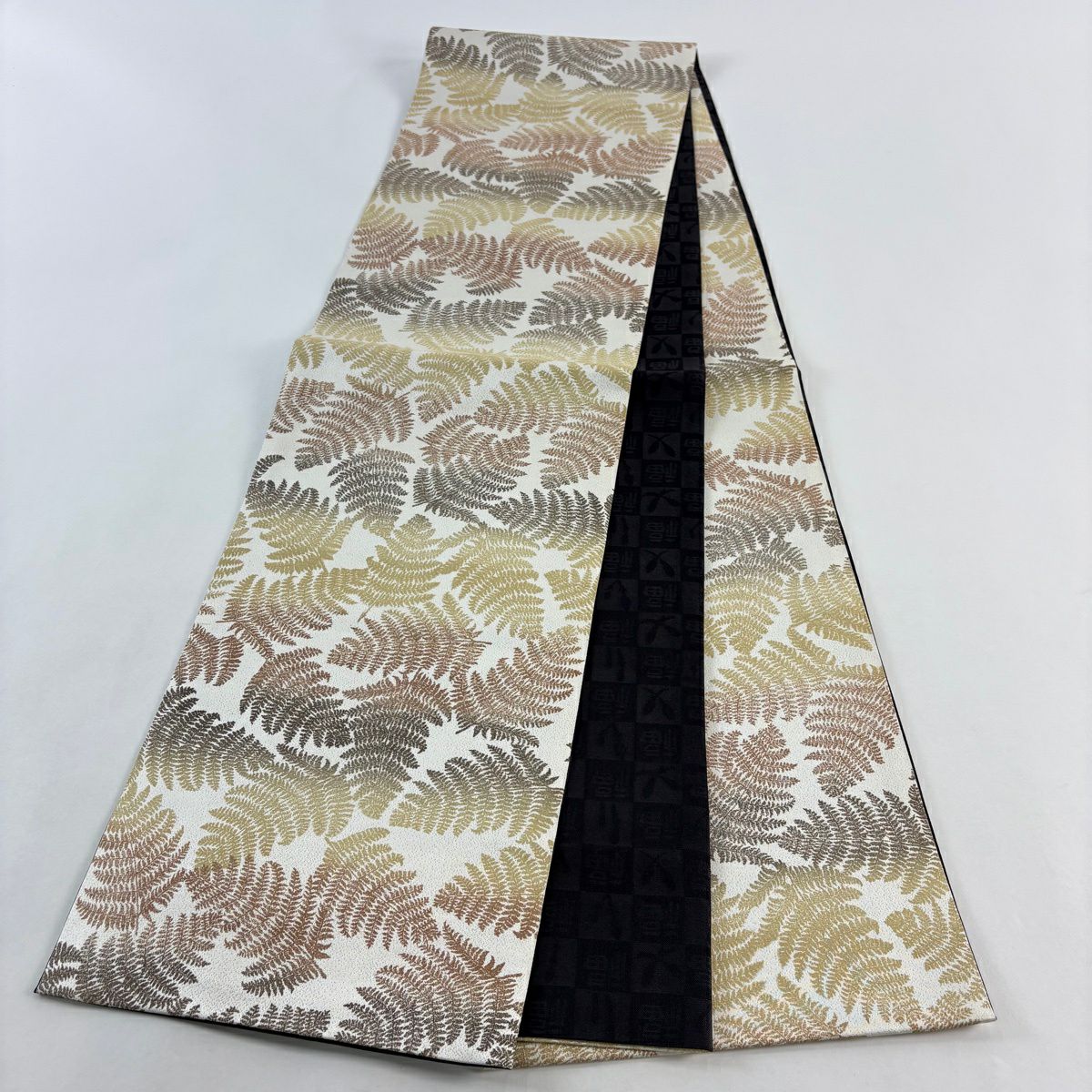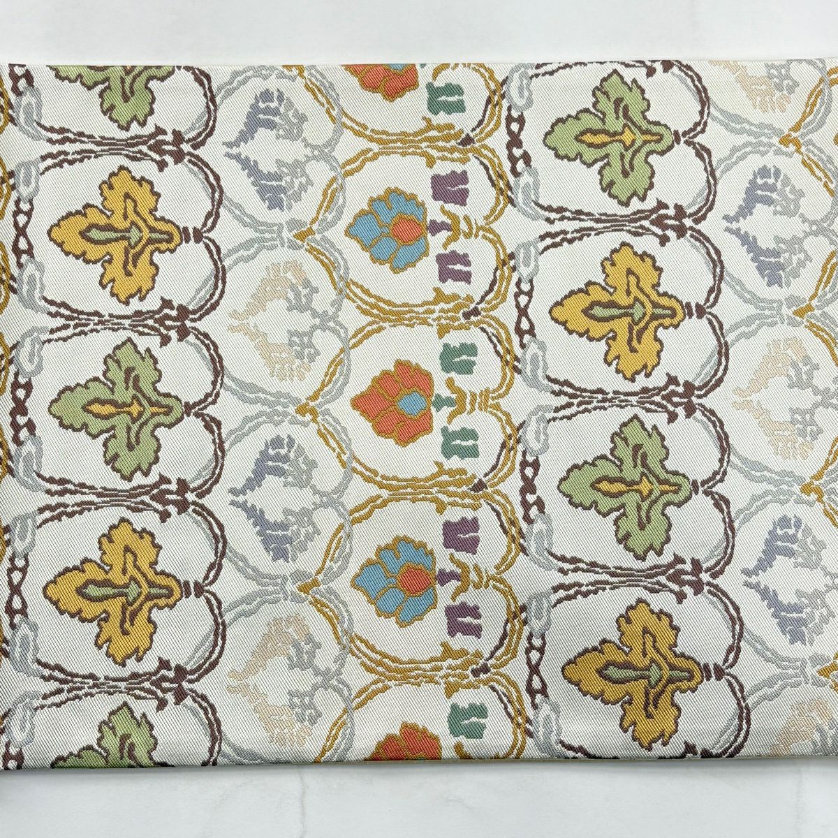 袋帯 逸品 草花 段縞 金糸 唐織 クリーム 六通 正絹