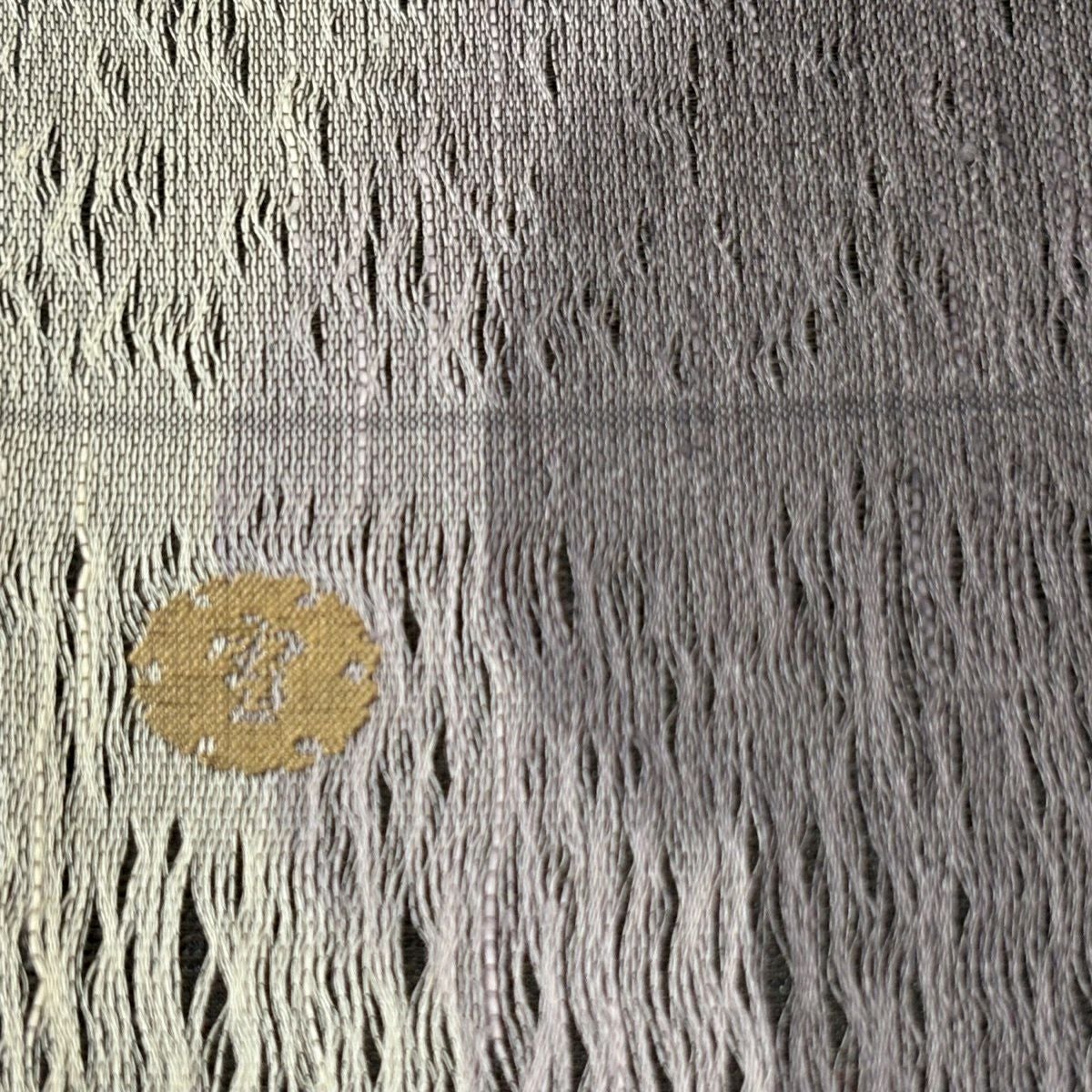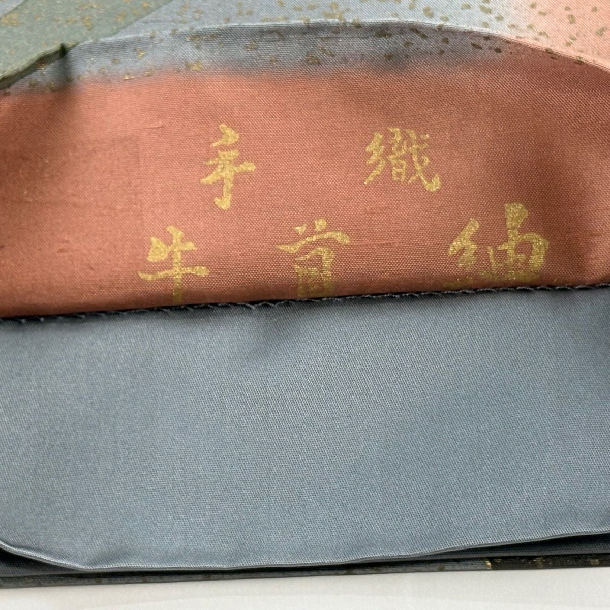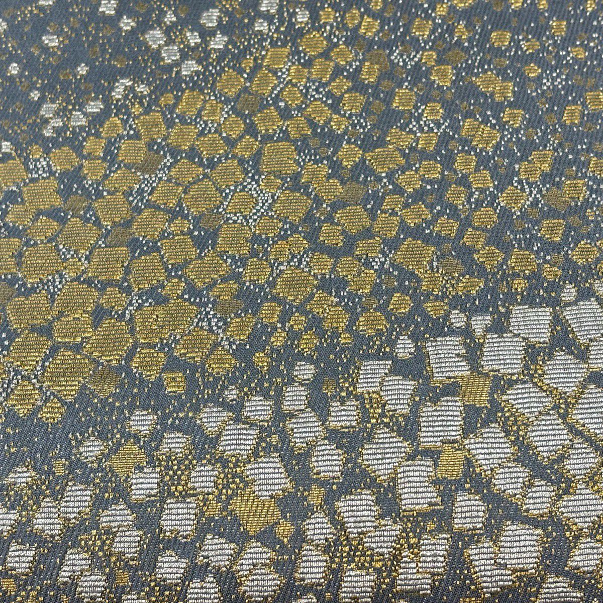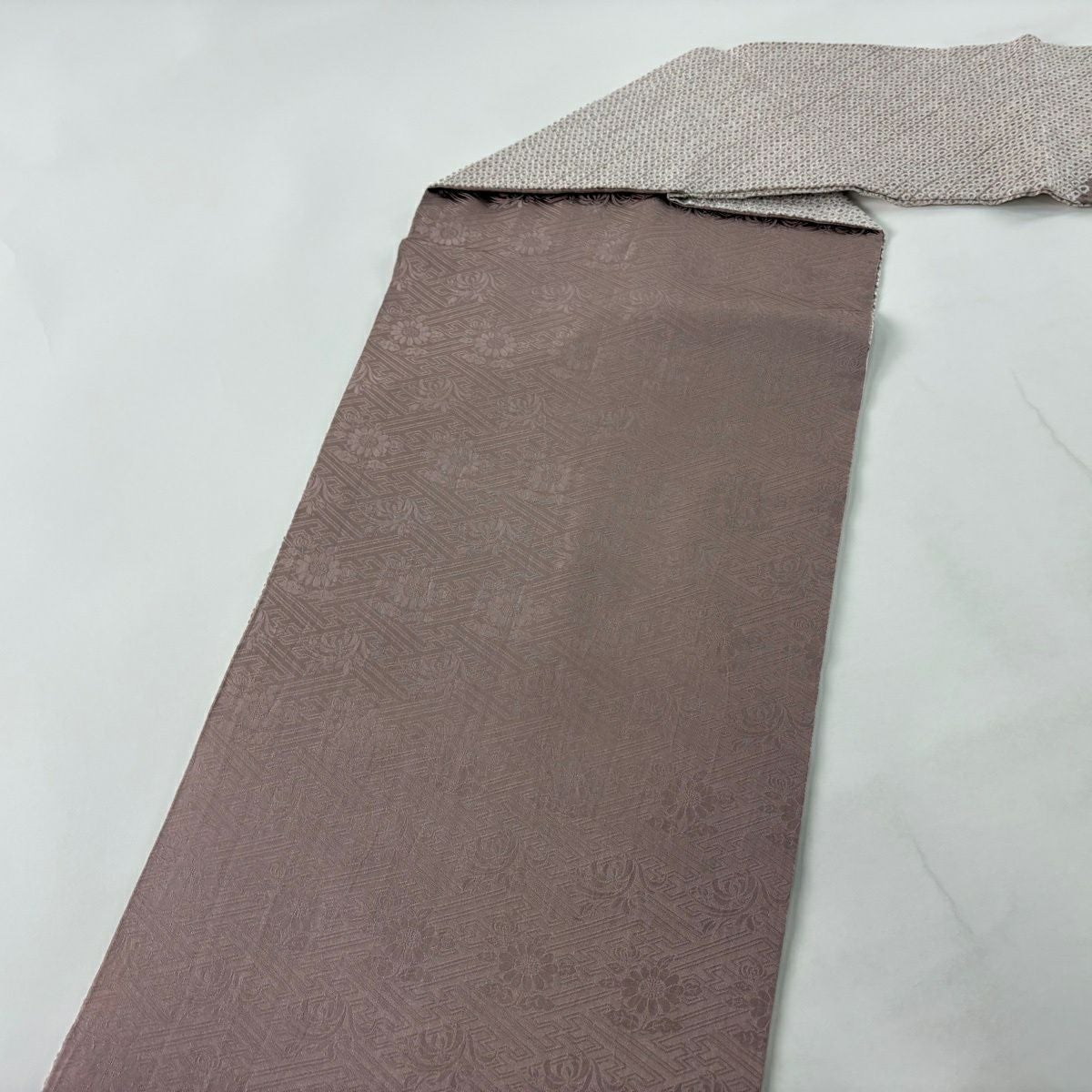 袋帯 逸品 牛首紬地 色紙 幾何学 金彩 灰色 全通 正絹