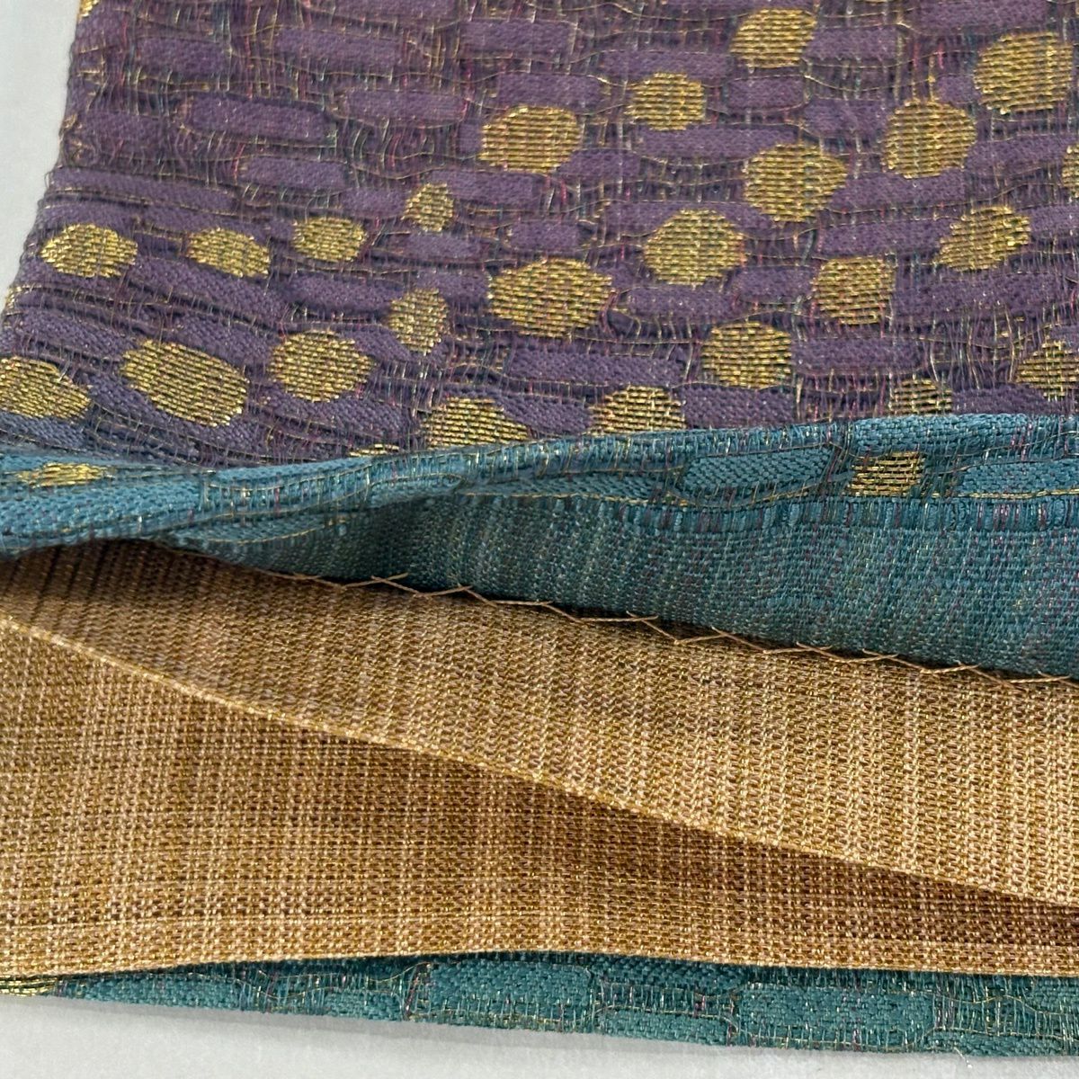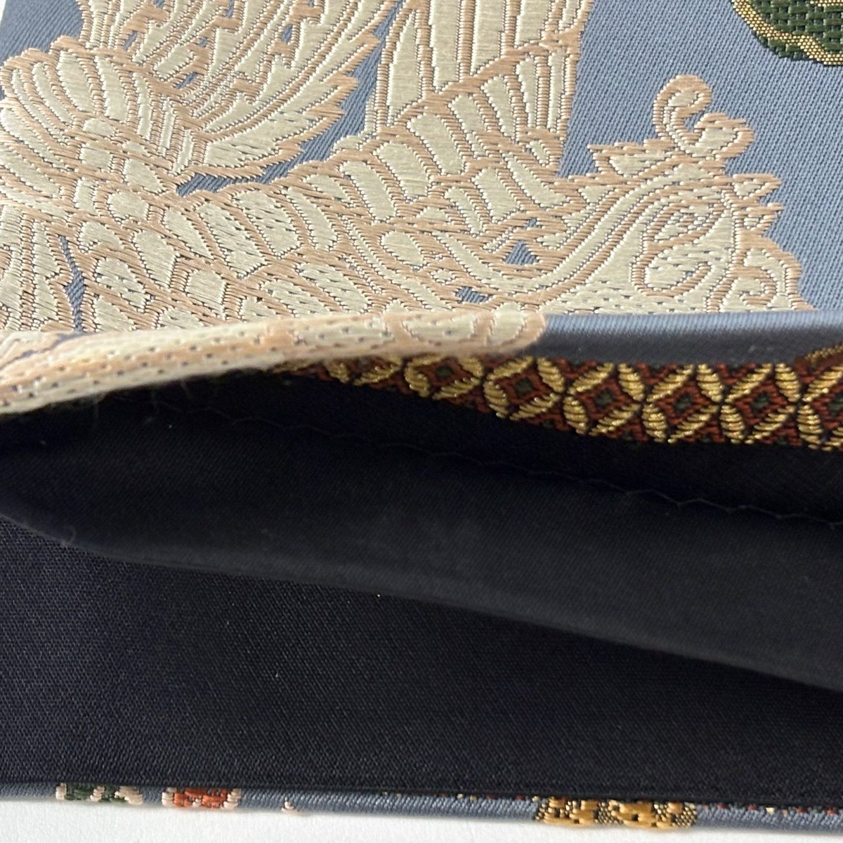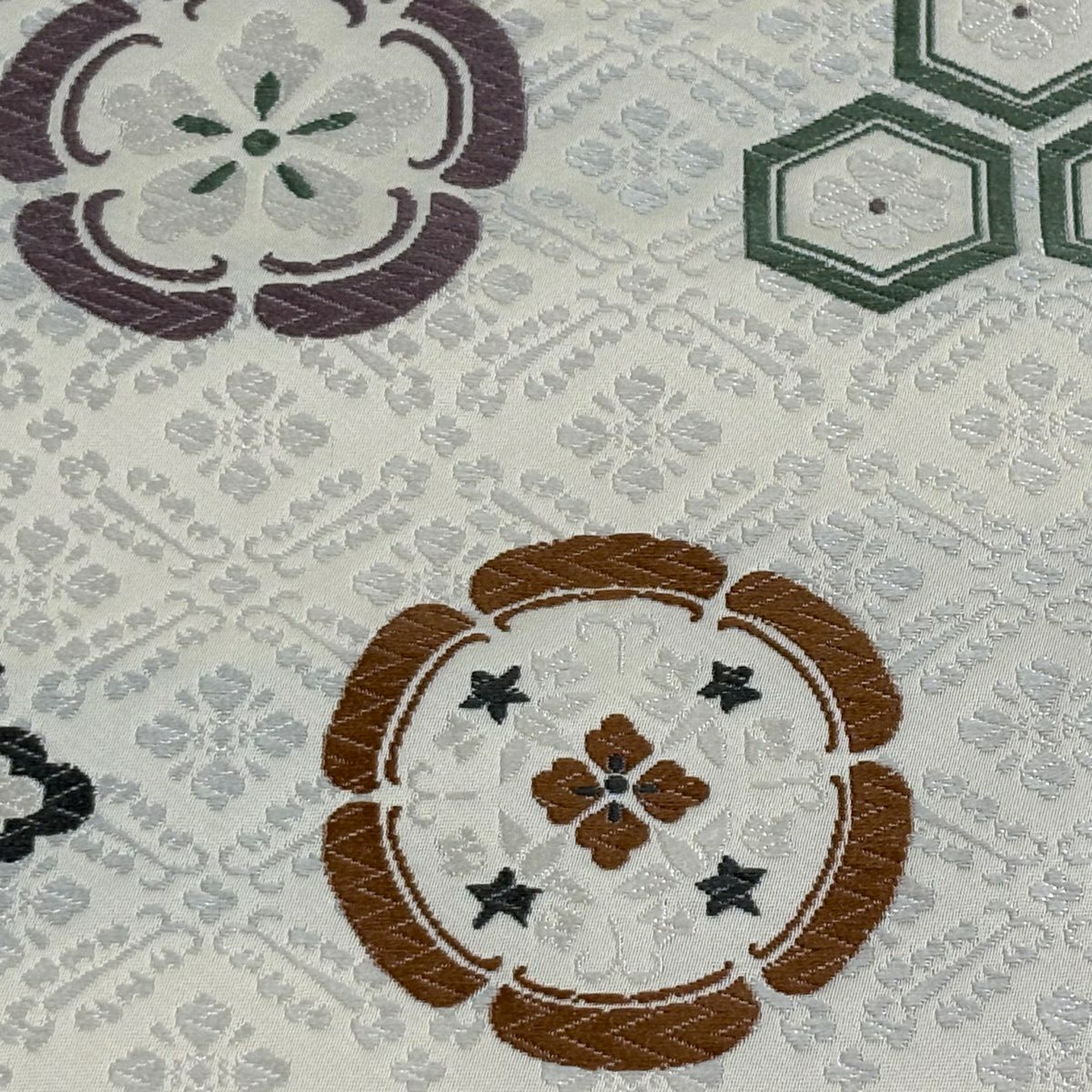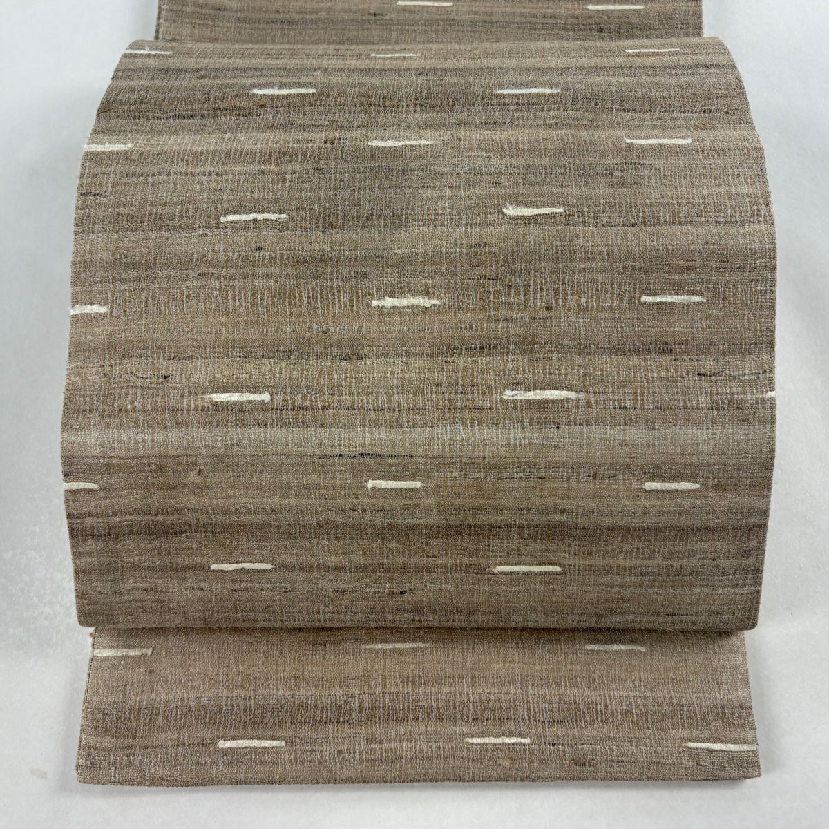 袋帯 逸品 牛首紬地 色紙 幾何学 金彩 灰色 全通 正絹
