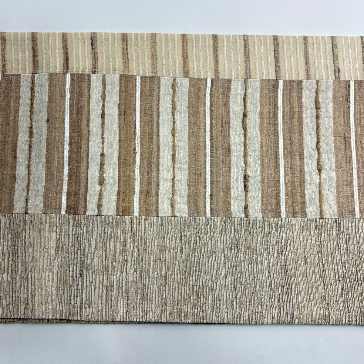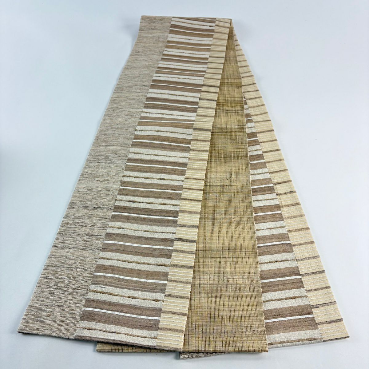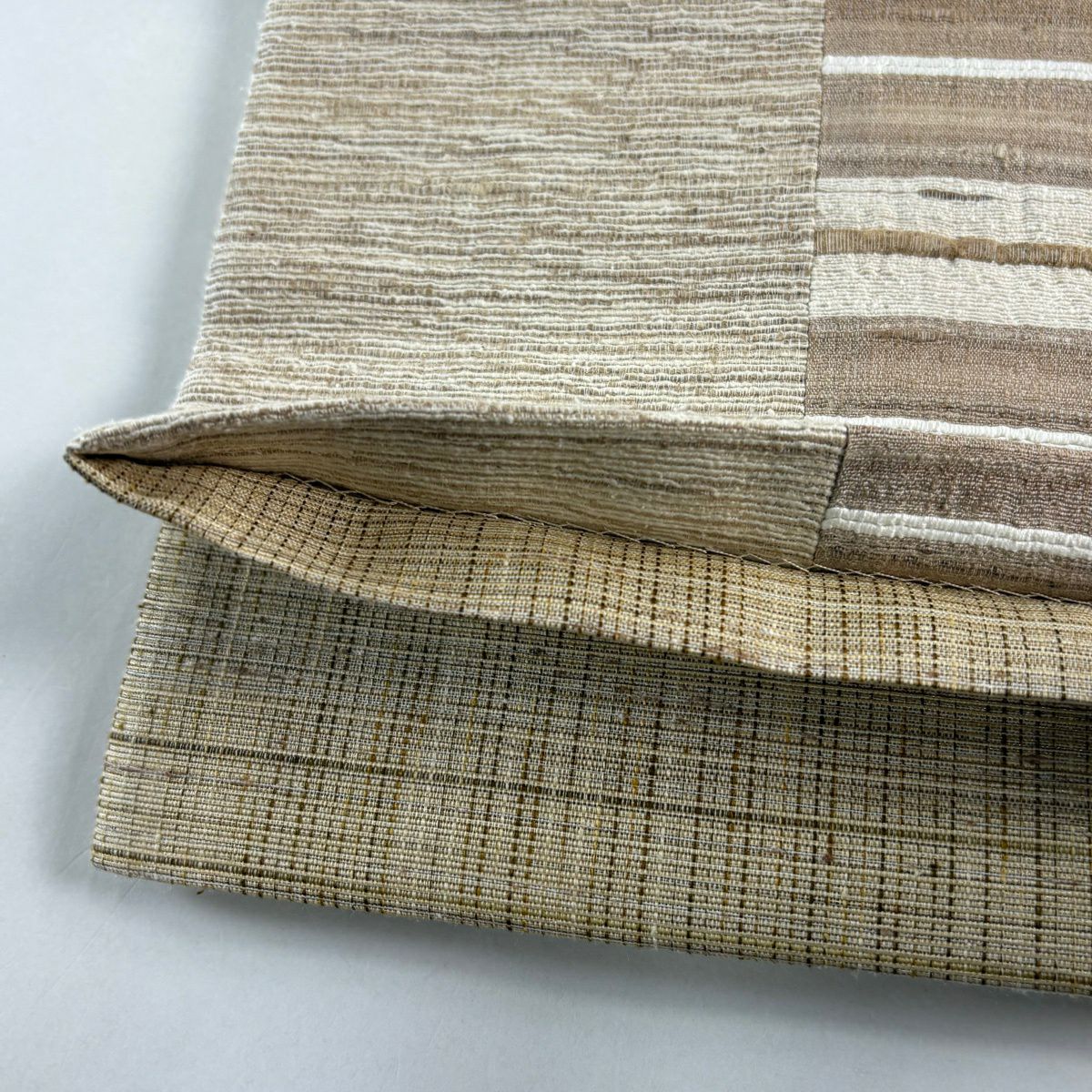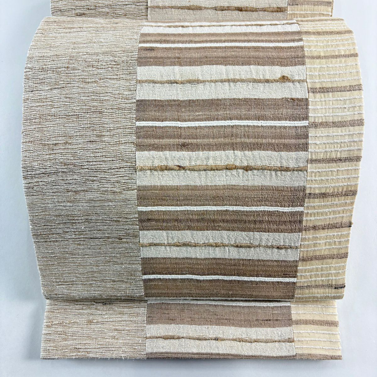 【美品】 袋帯 逸品 紬地 縞 ベージュ 全通 正絹
