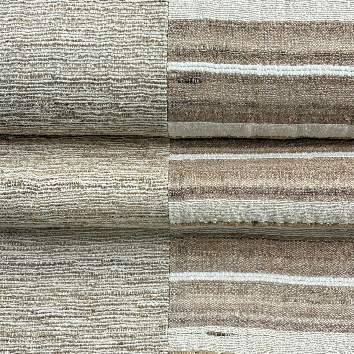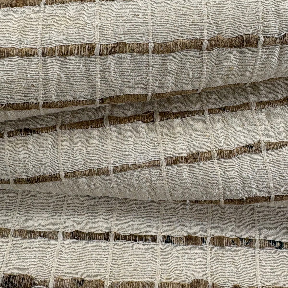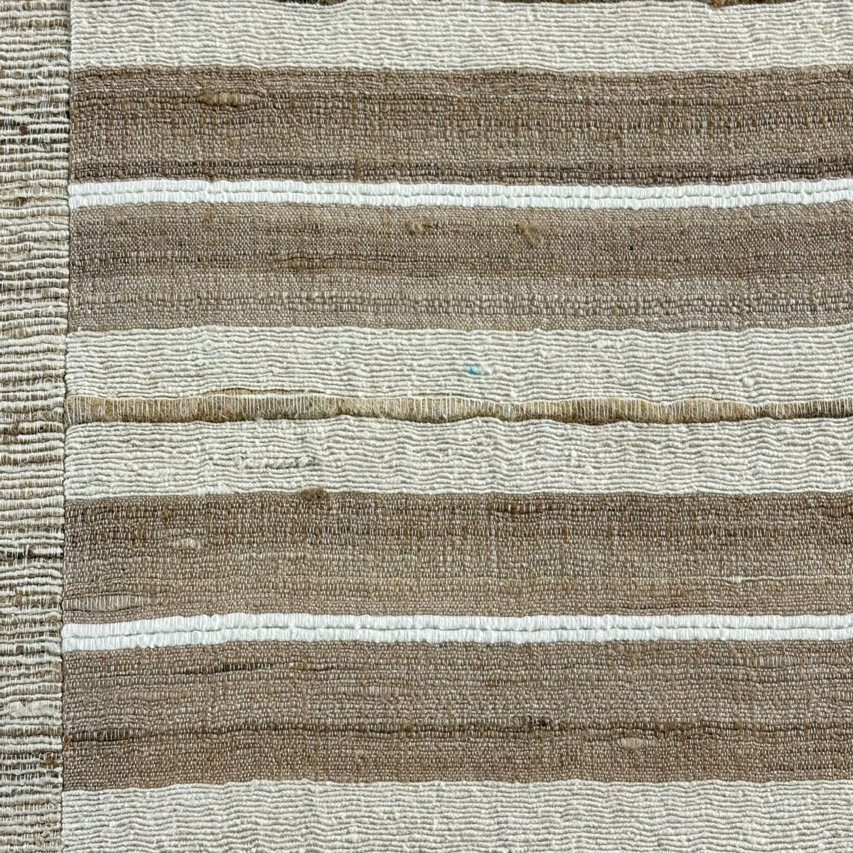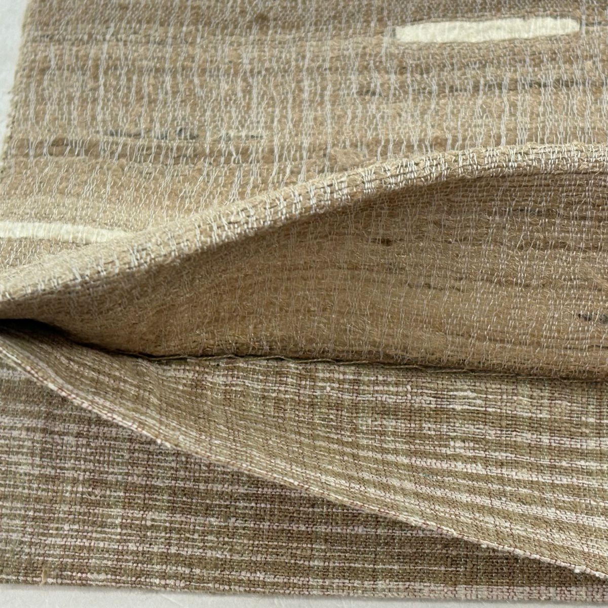 【美品】 袋帯 逸品 紬地 縞 ベージュ 全通 正絹