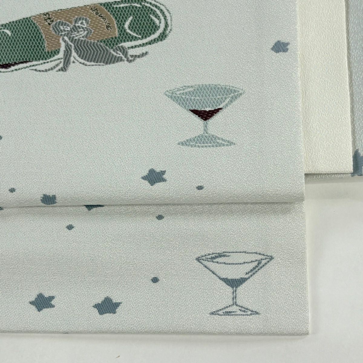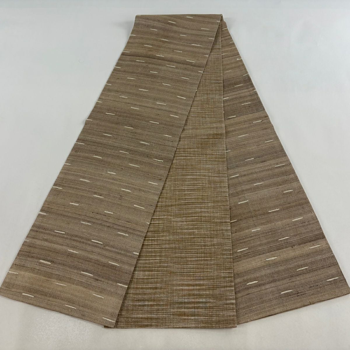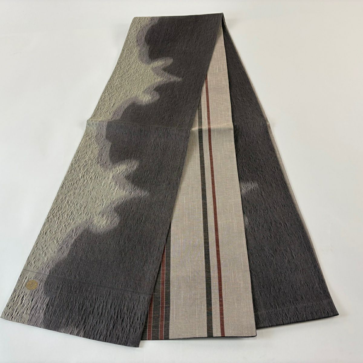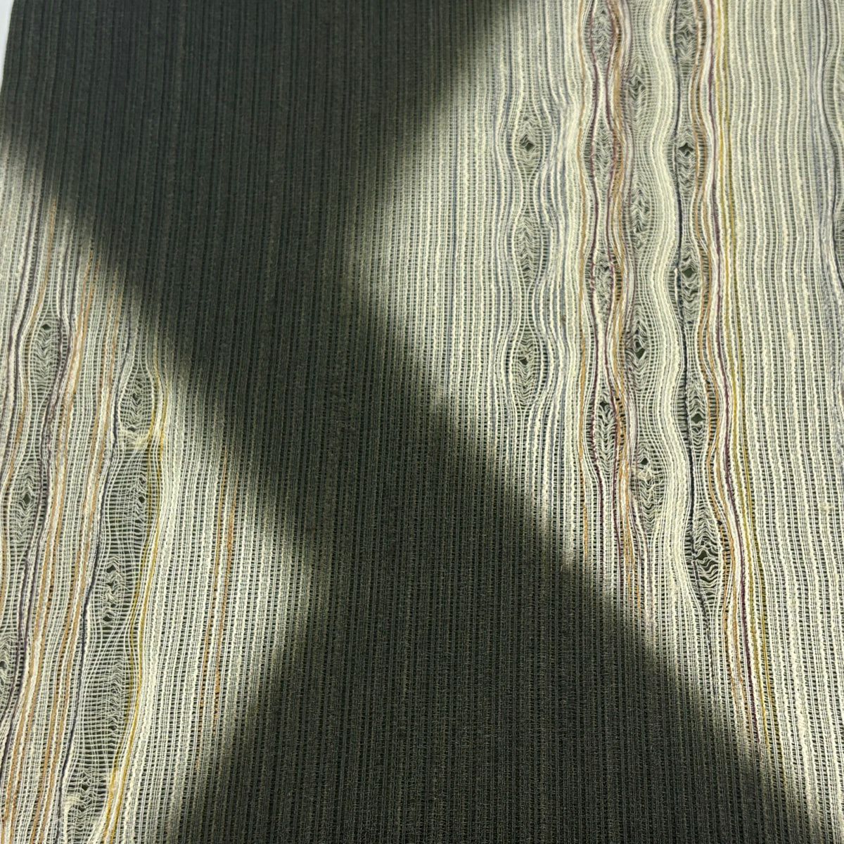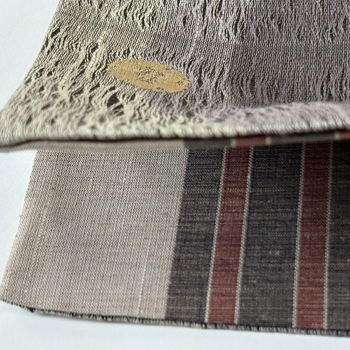 【美品】 名古屋帯 逸品 紬地 幾何学模様 縞 灰白 正絹
