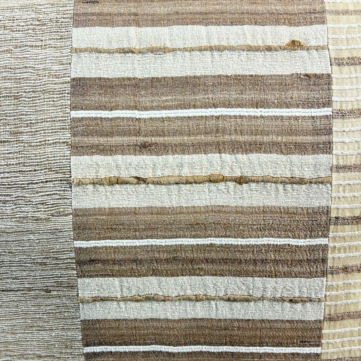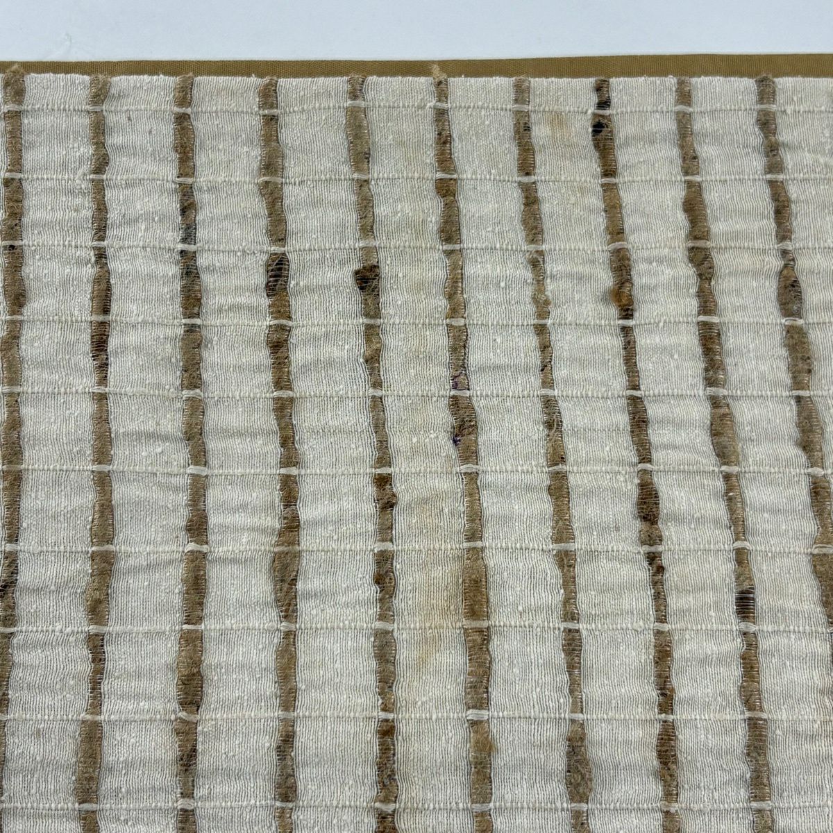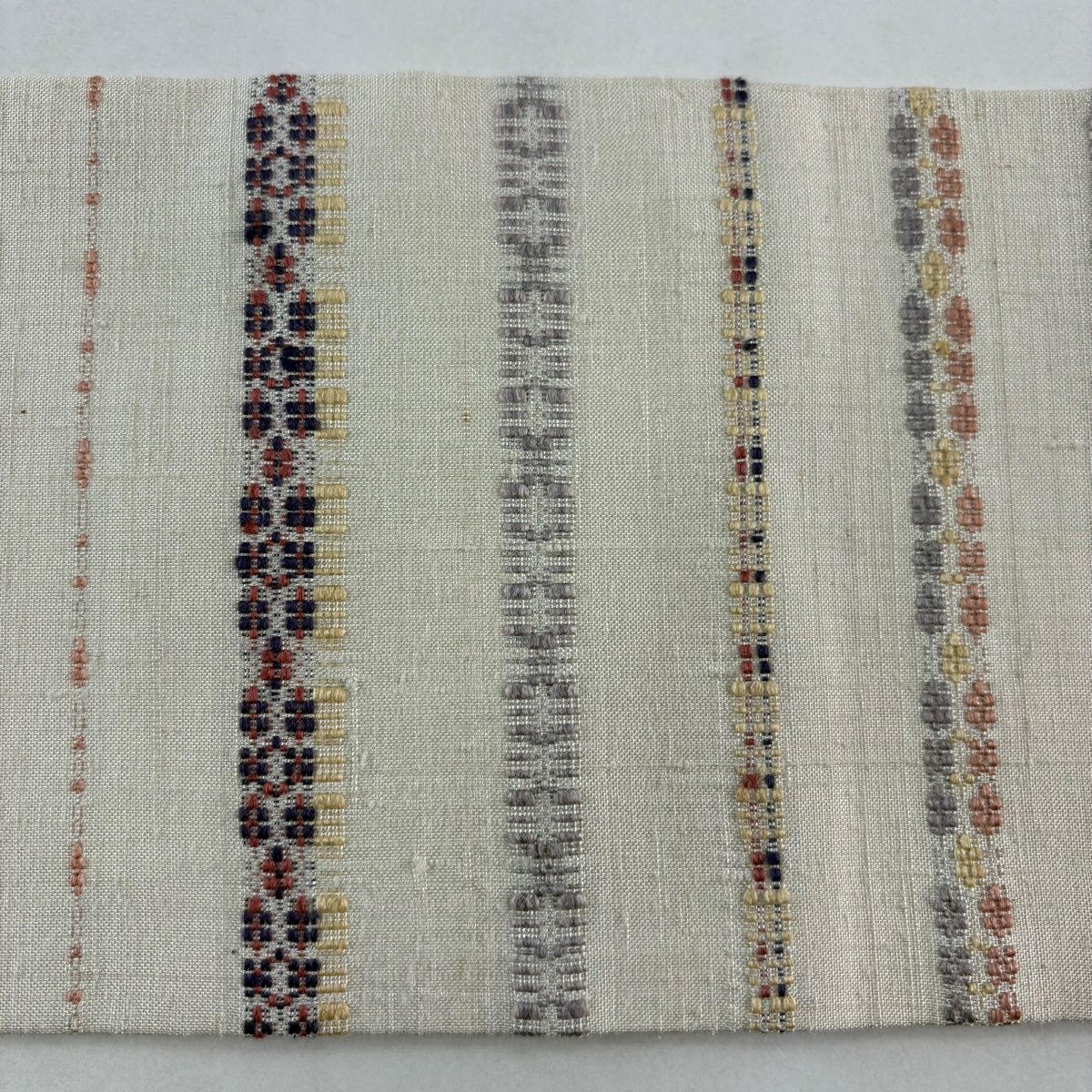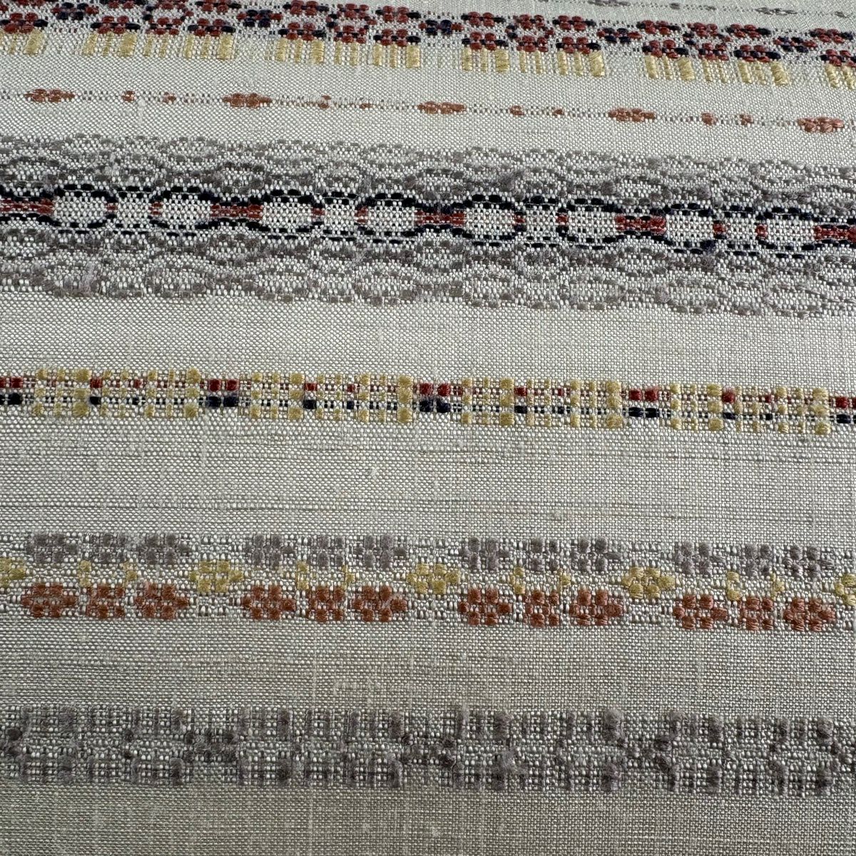 【美品】 名古屋帯 逸品 紬地 幾何学模様 縞 灰白 正絹