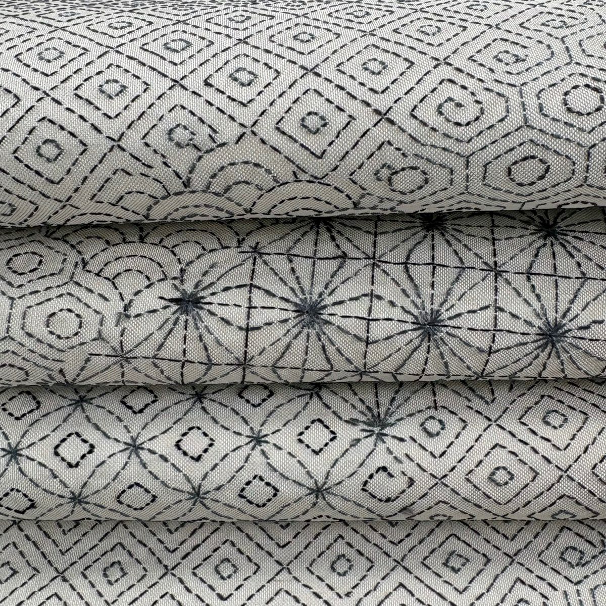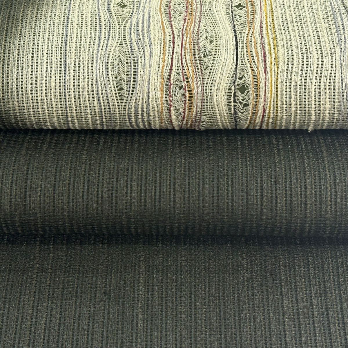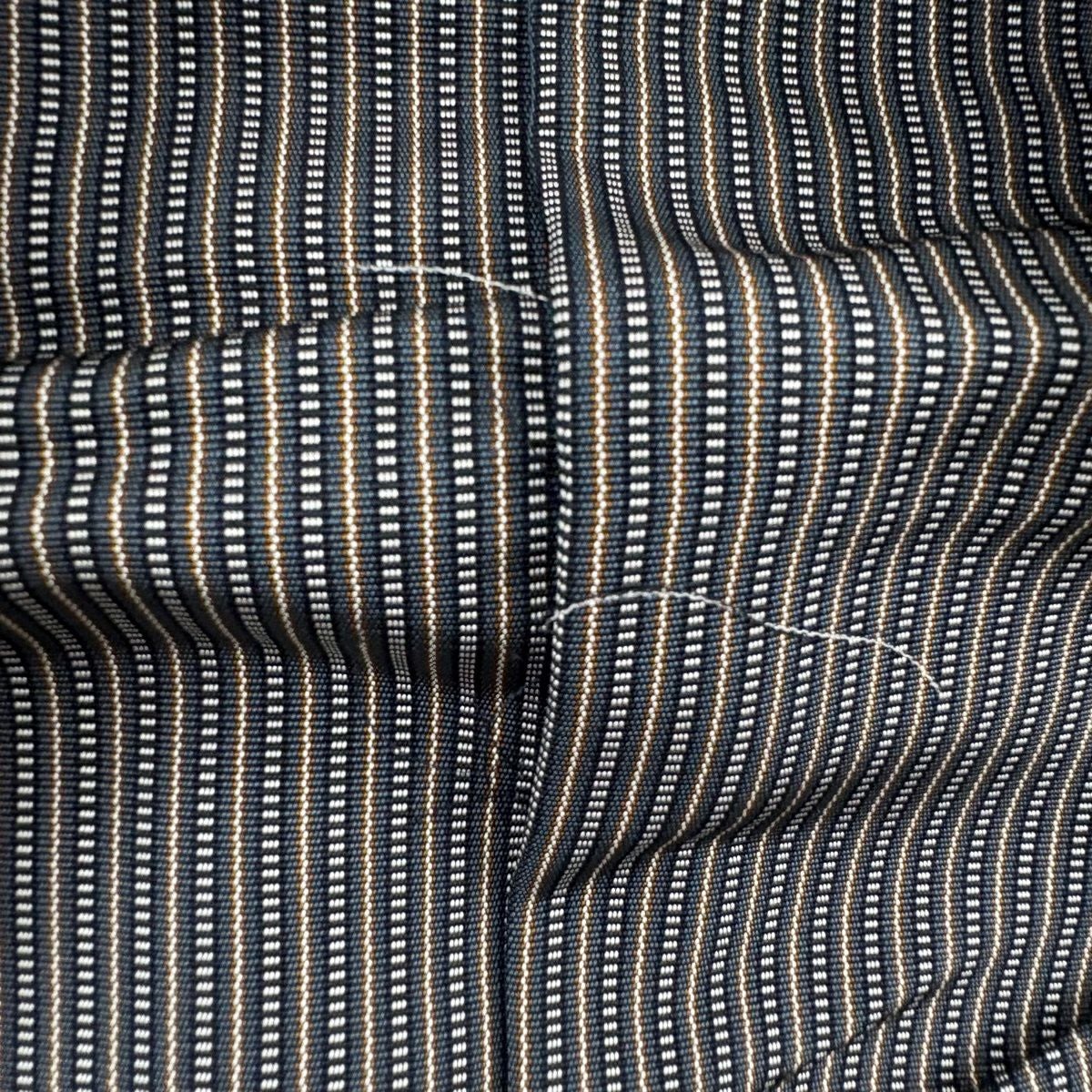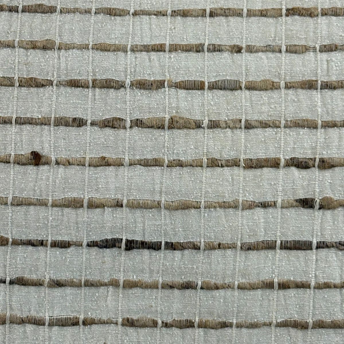 【美品】 名古屋帯 逸品 紬地 幾何学模様 縞 灰白 正絹