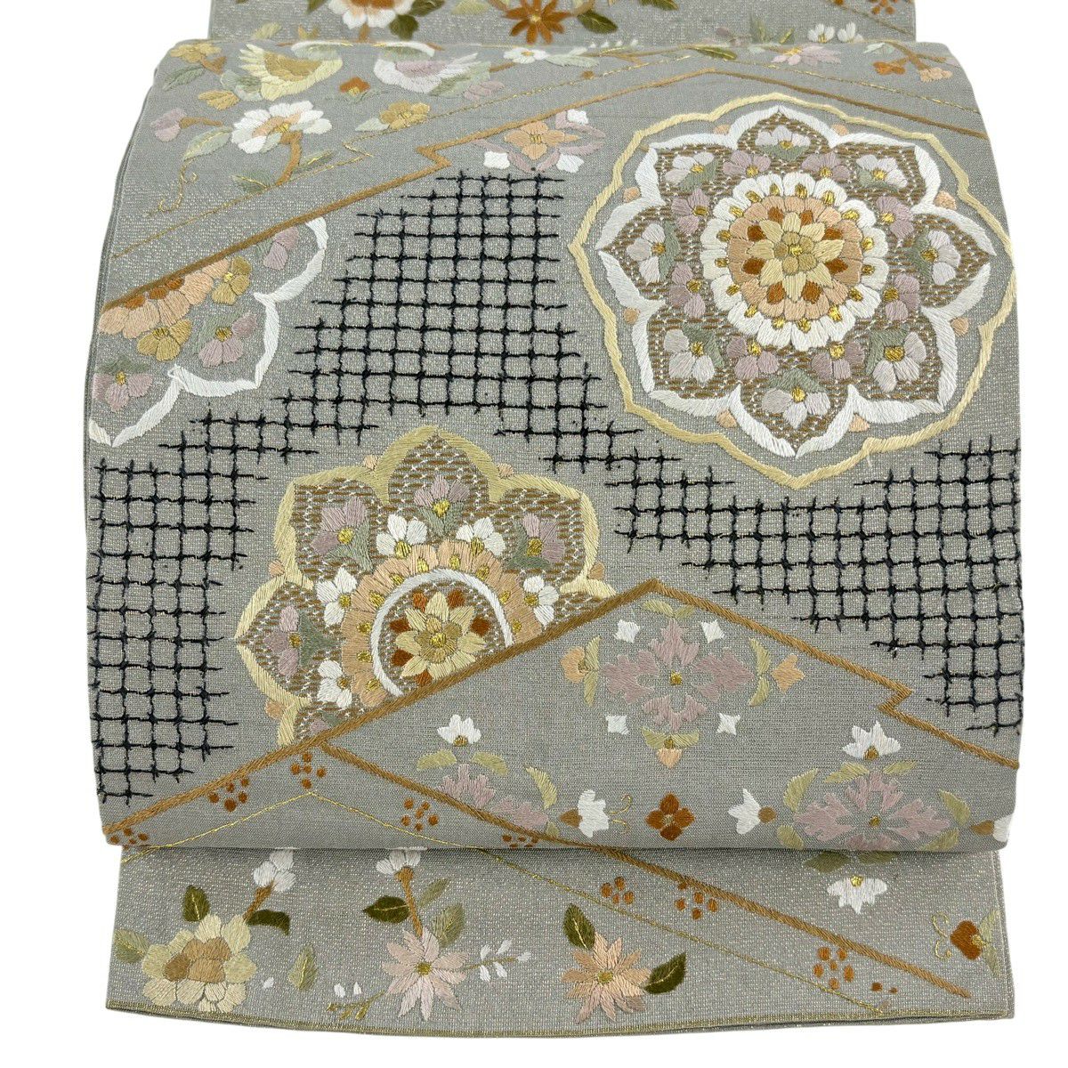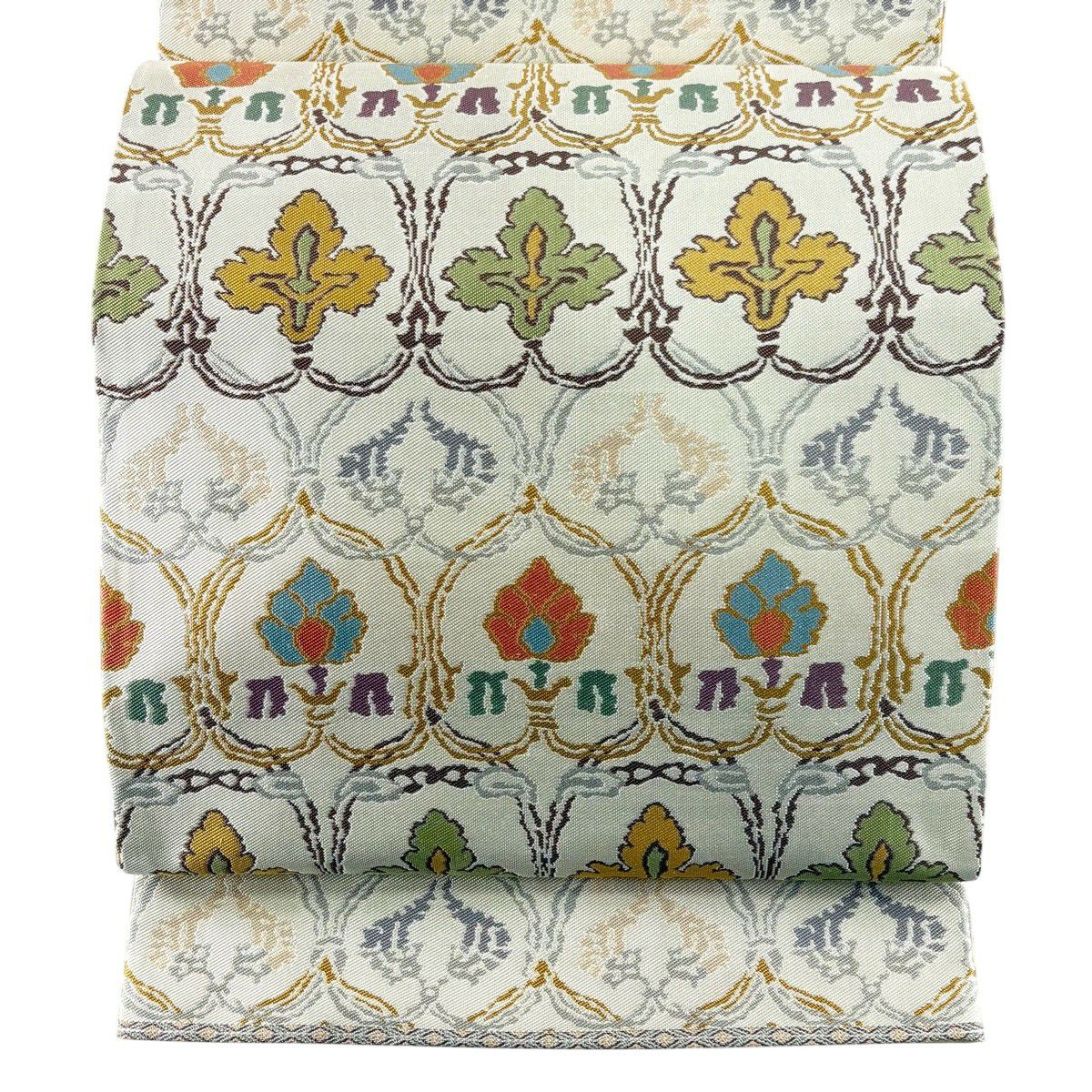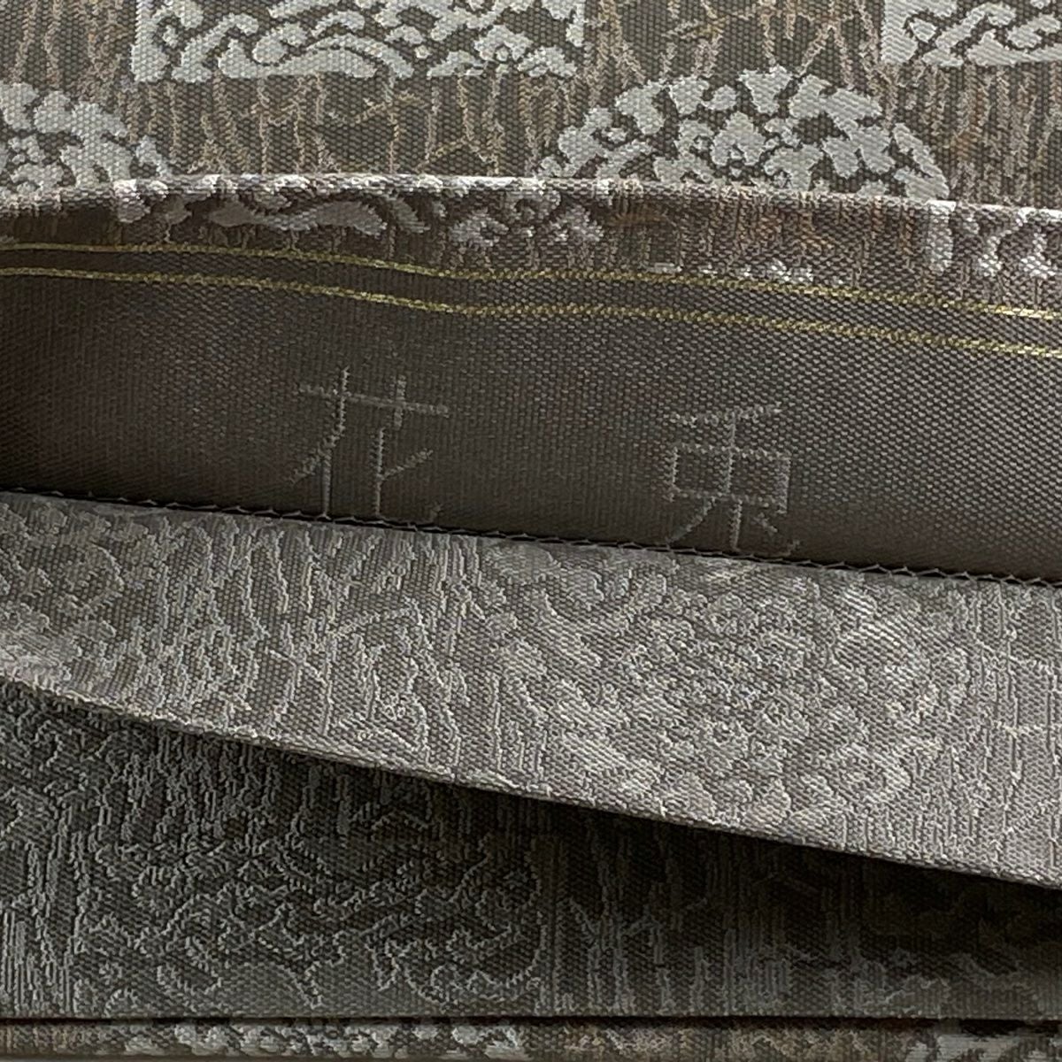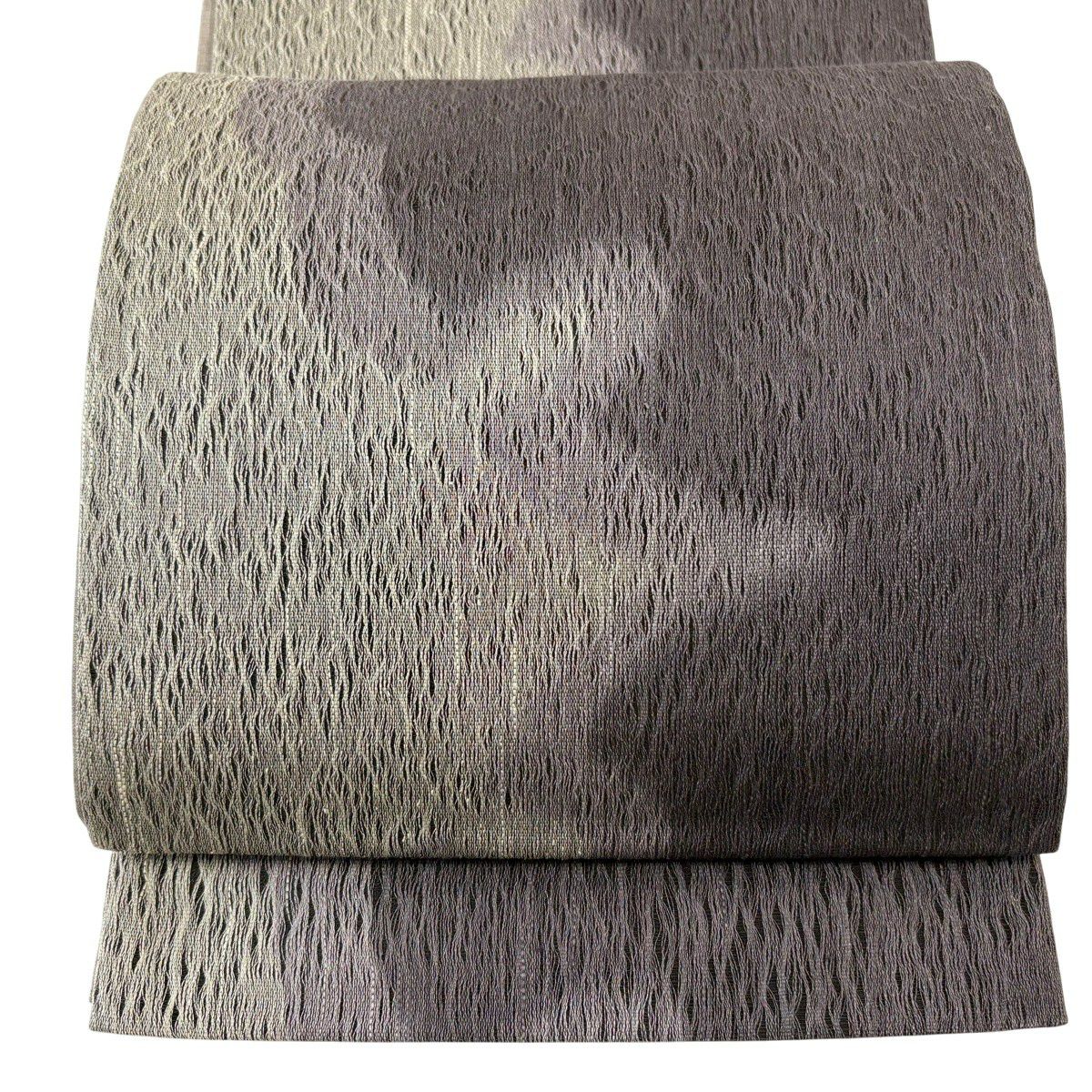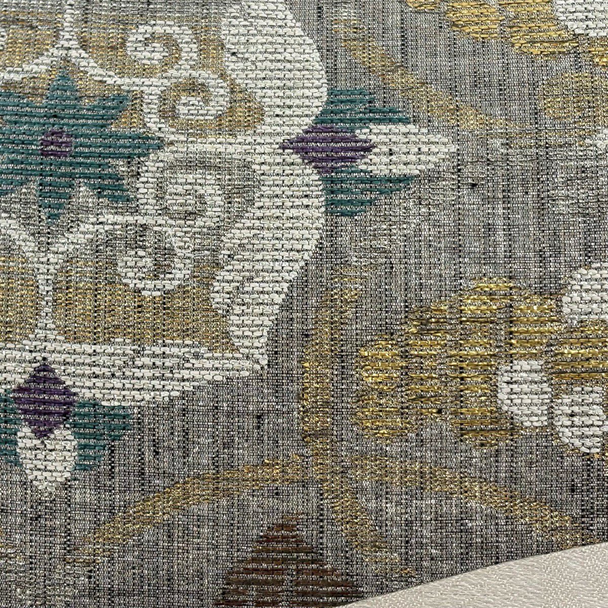 【美品】 名古屋帯 逸品 華文 葡萄 箔 銀糸 灰色 正絹