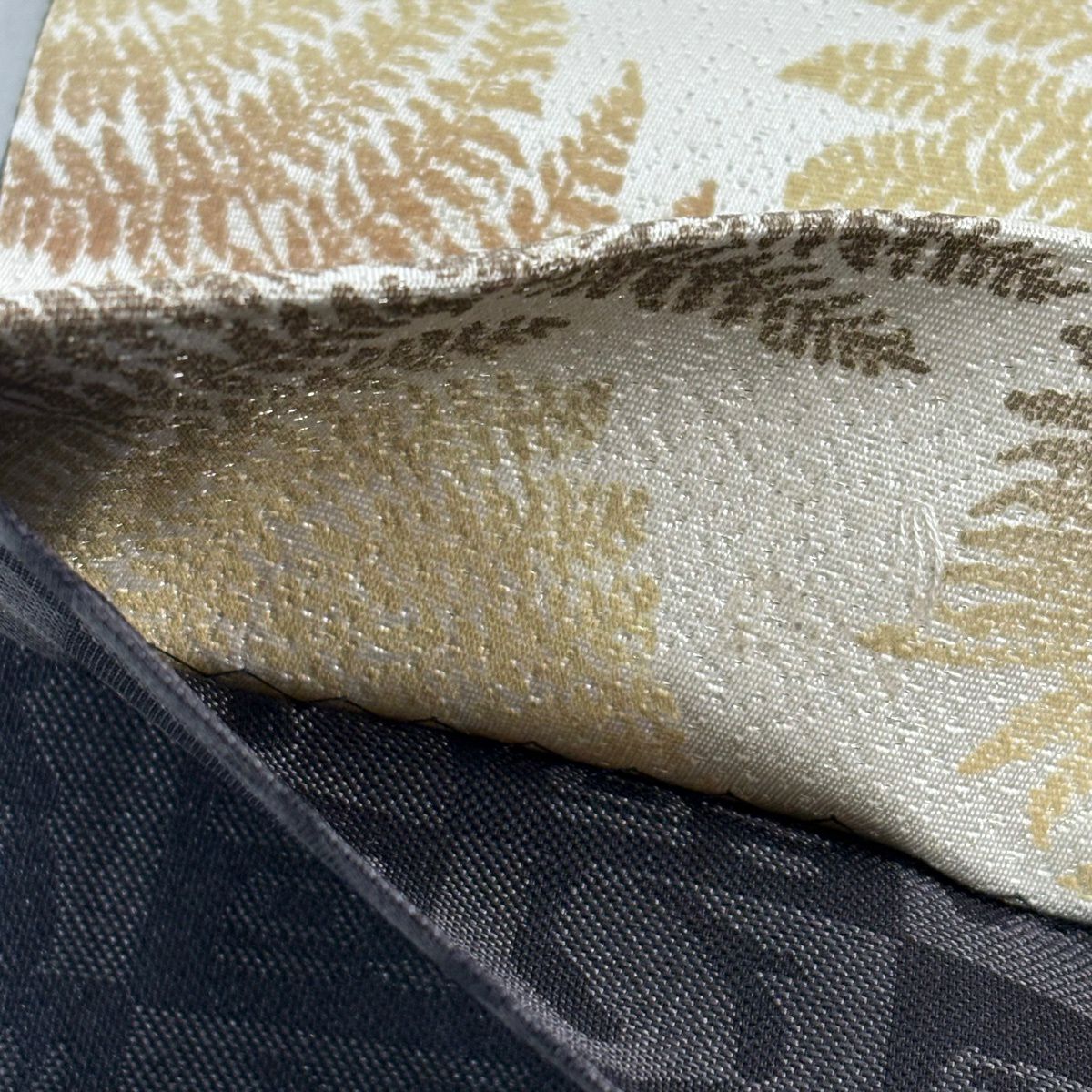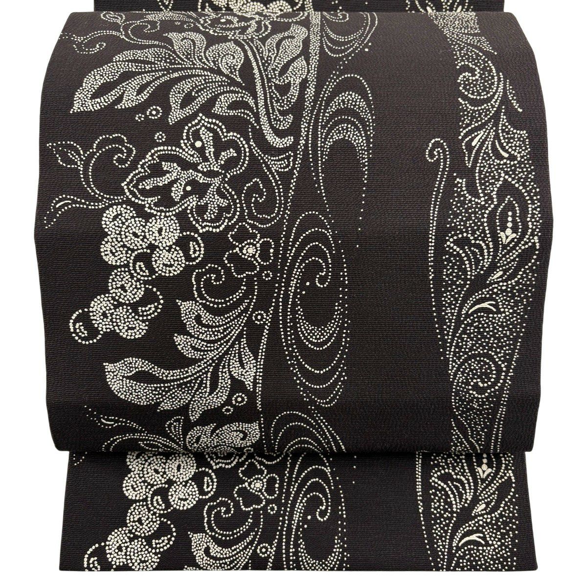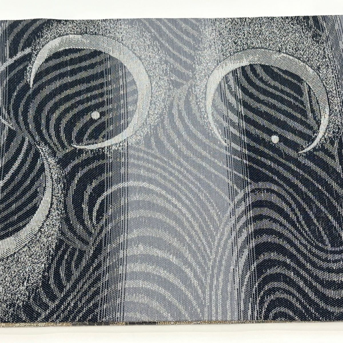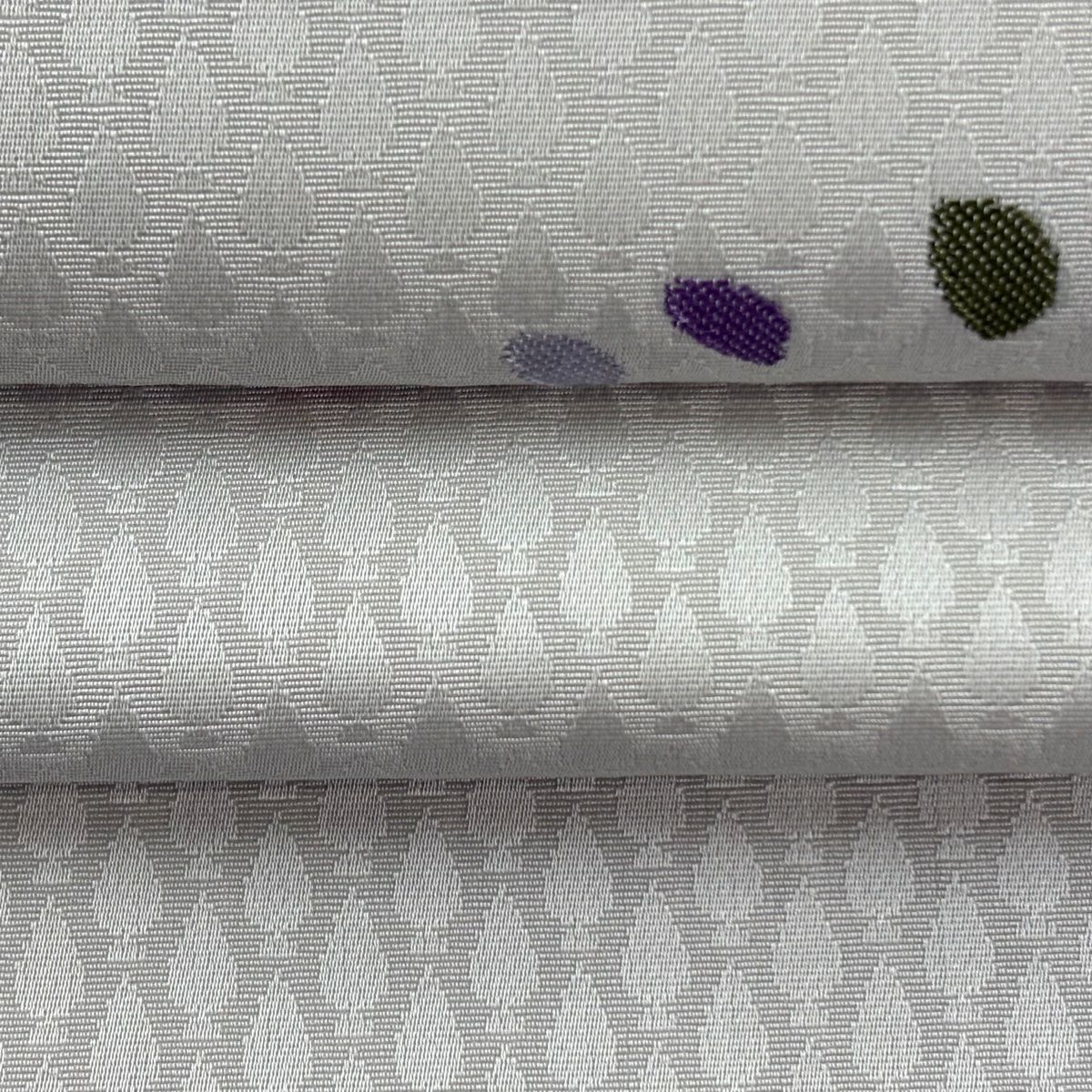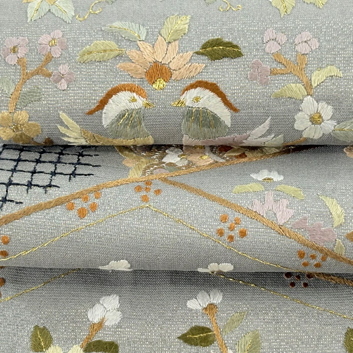 【美品】 名古屋帯 逸品 華文 葡萄 箔 銀糸 灰色 正絹