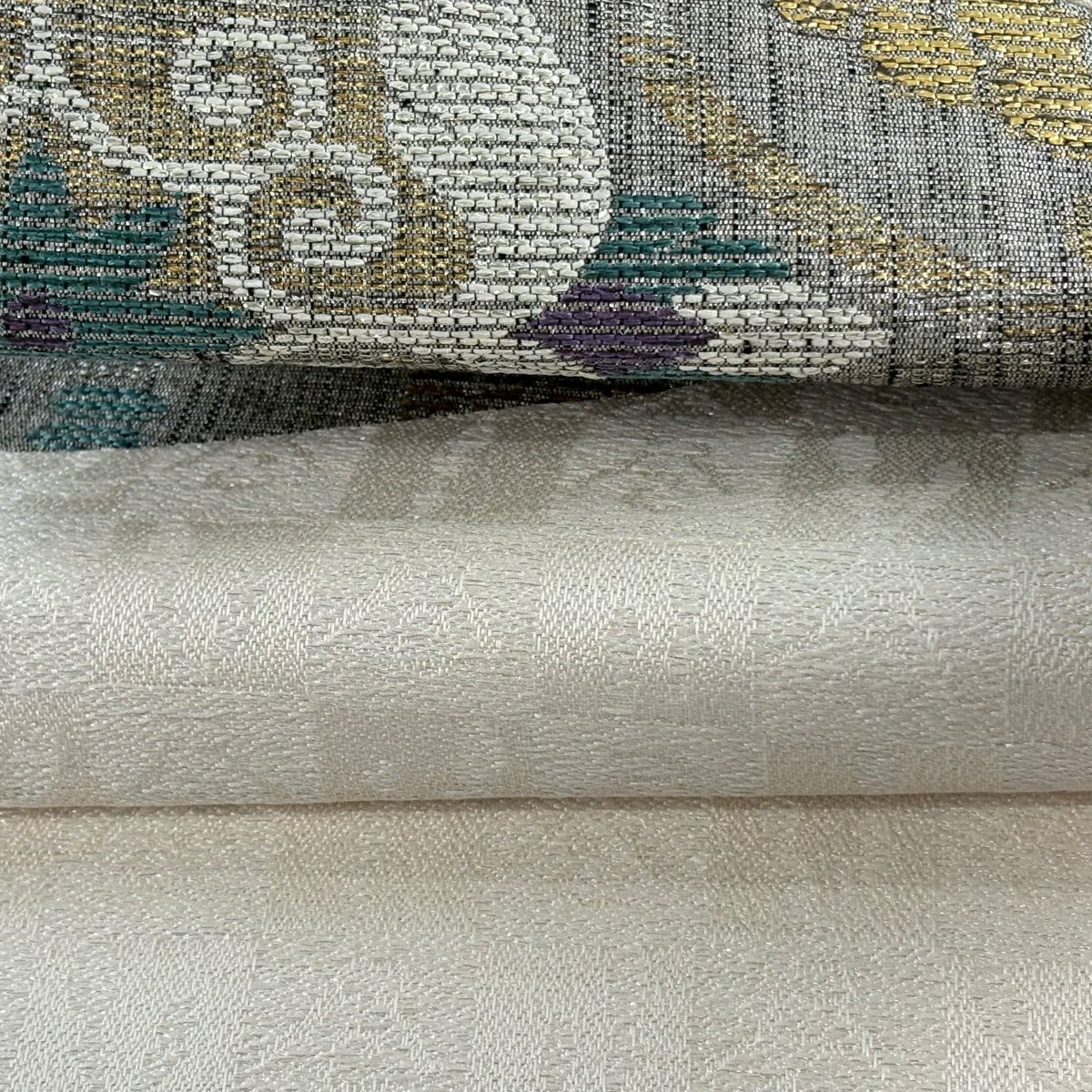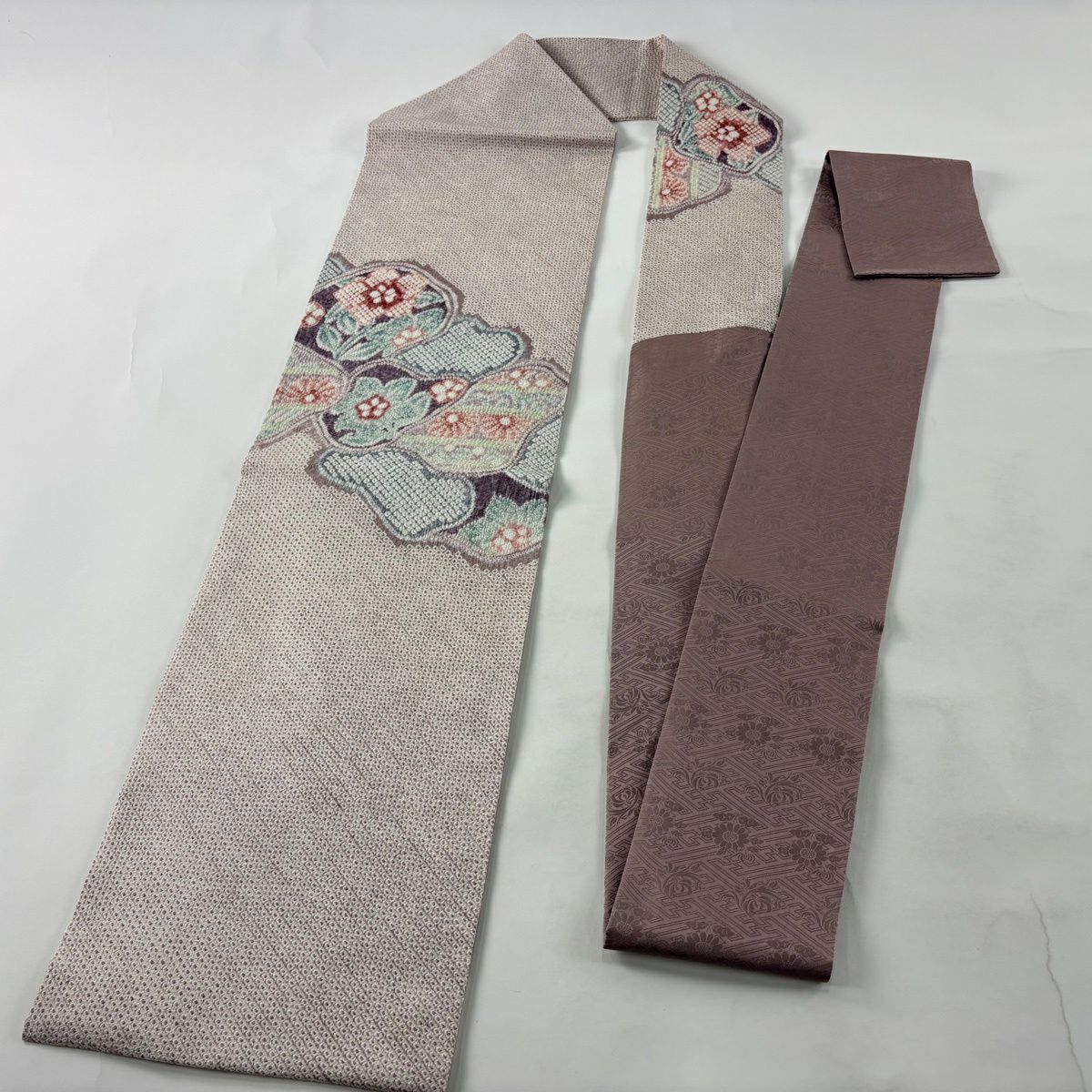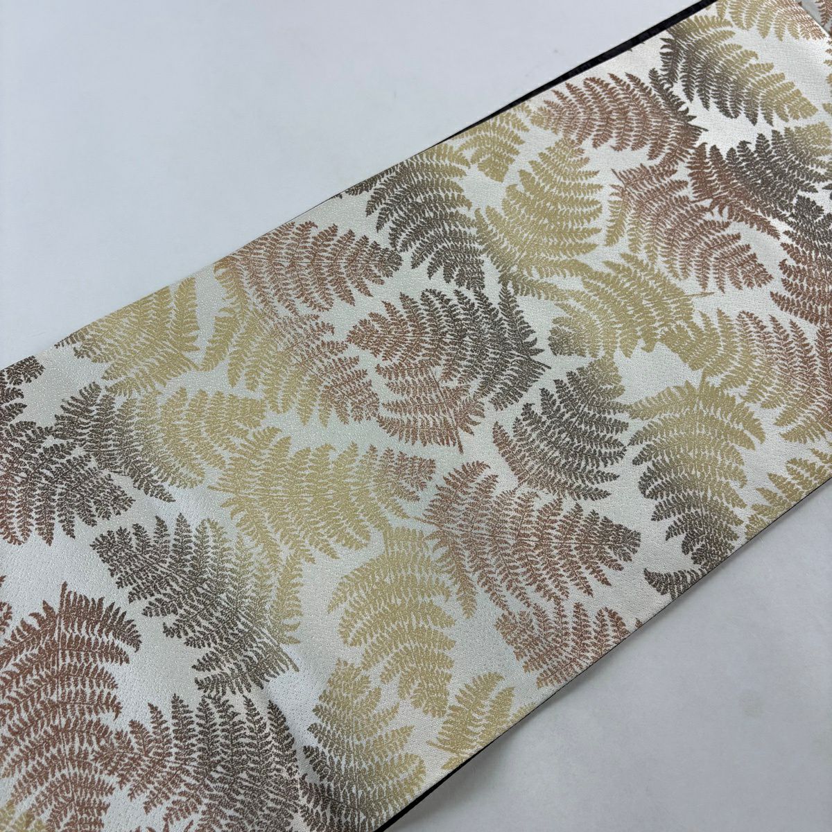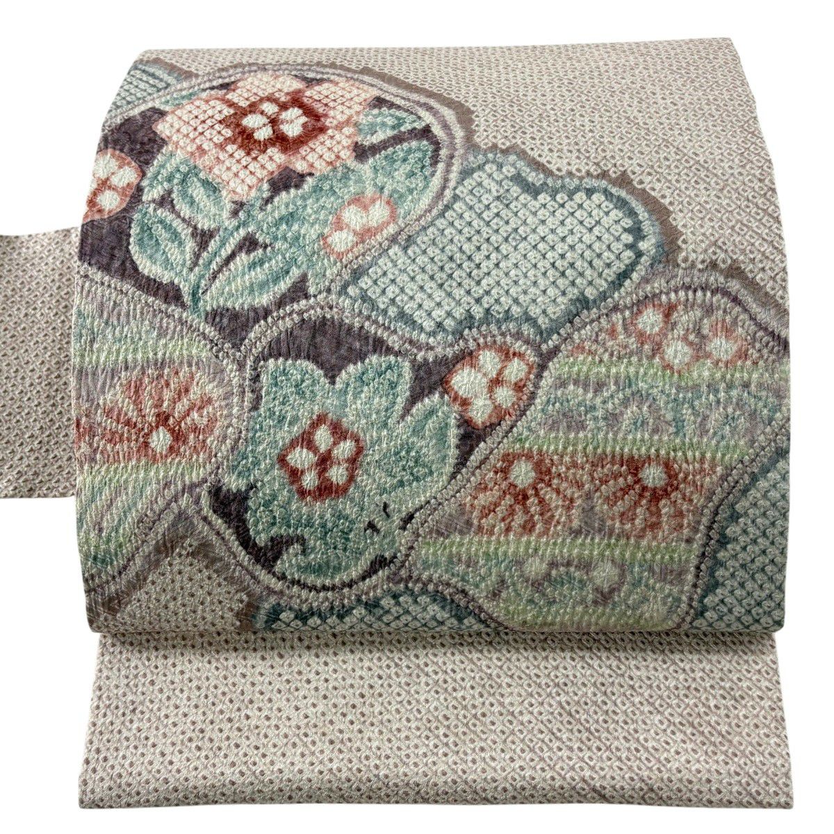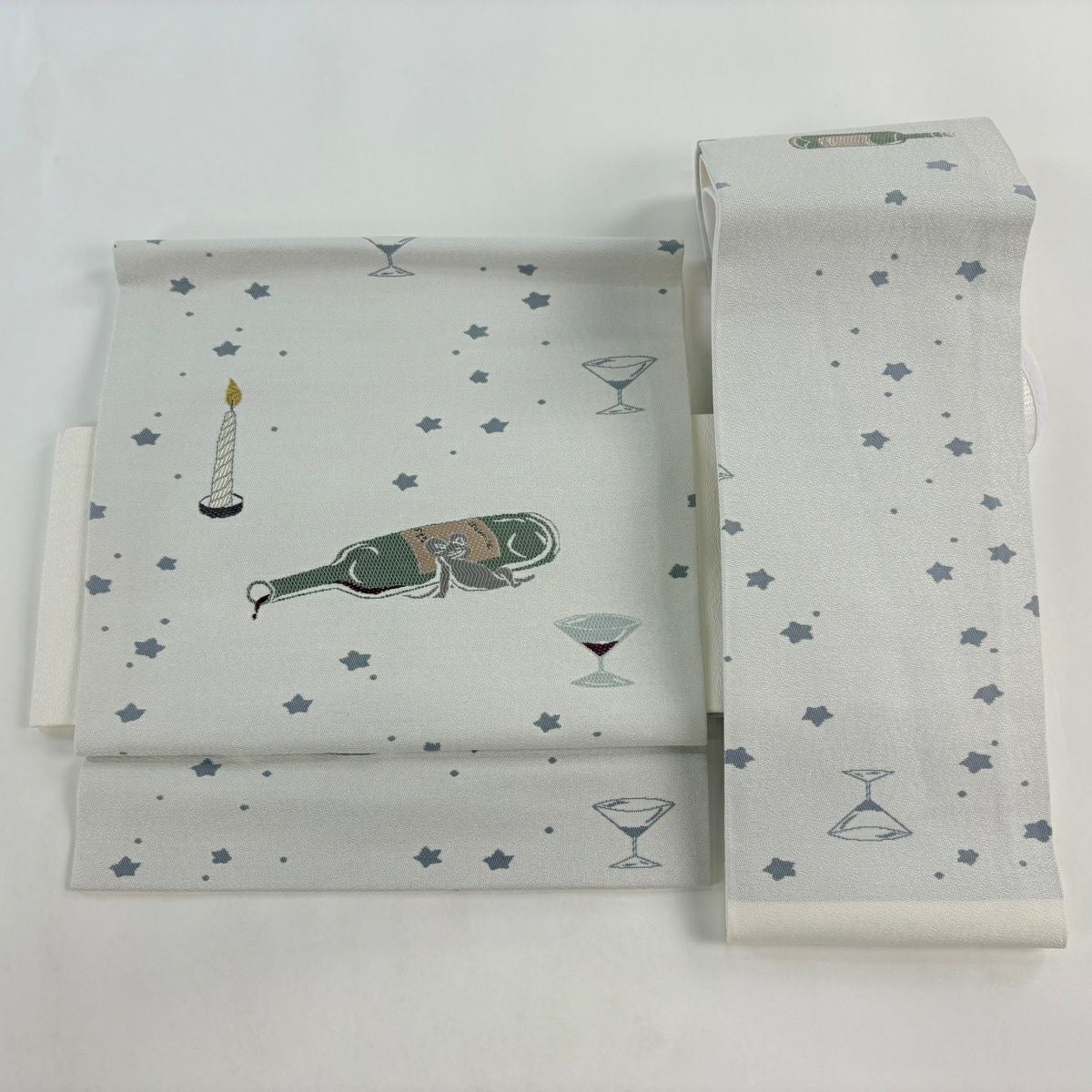 【美品】 名古屋帯 逸品 華文 葡萄 箔 銀糸 灰色 正絹