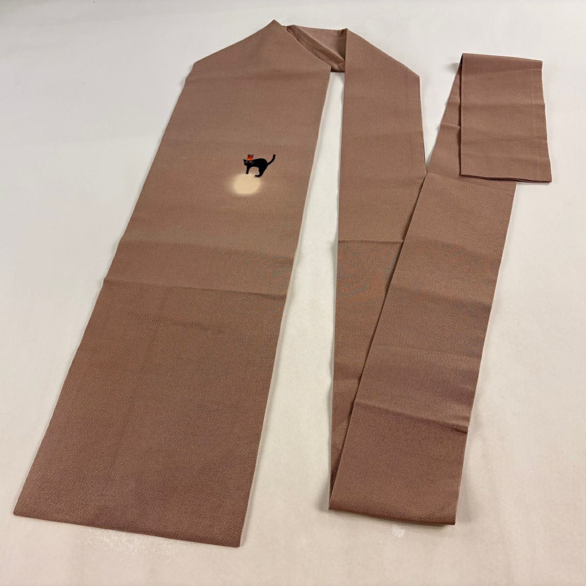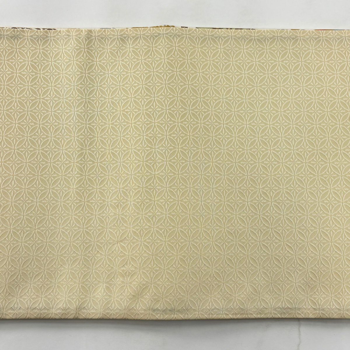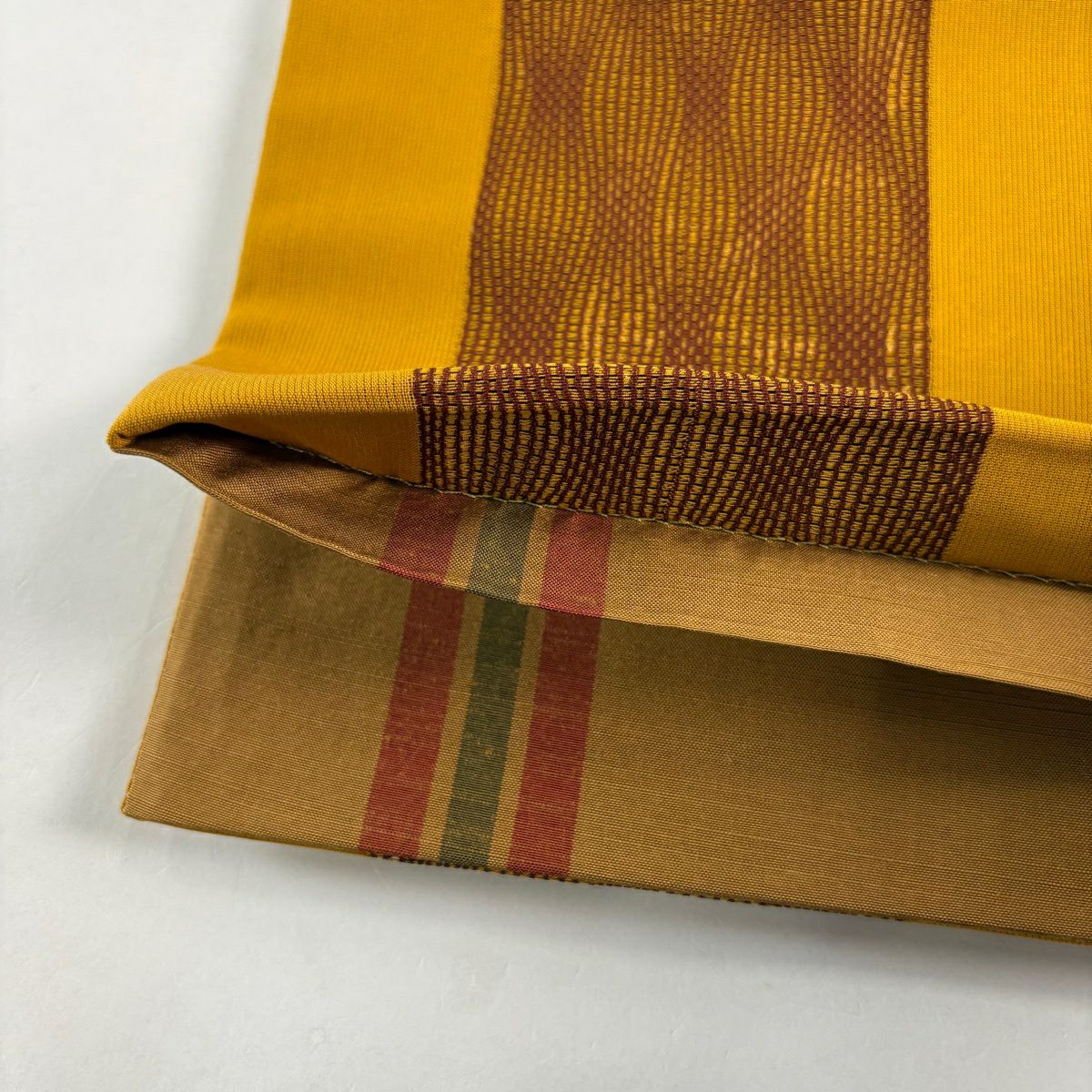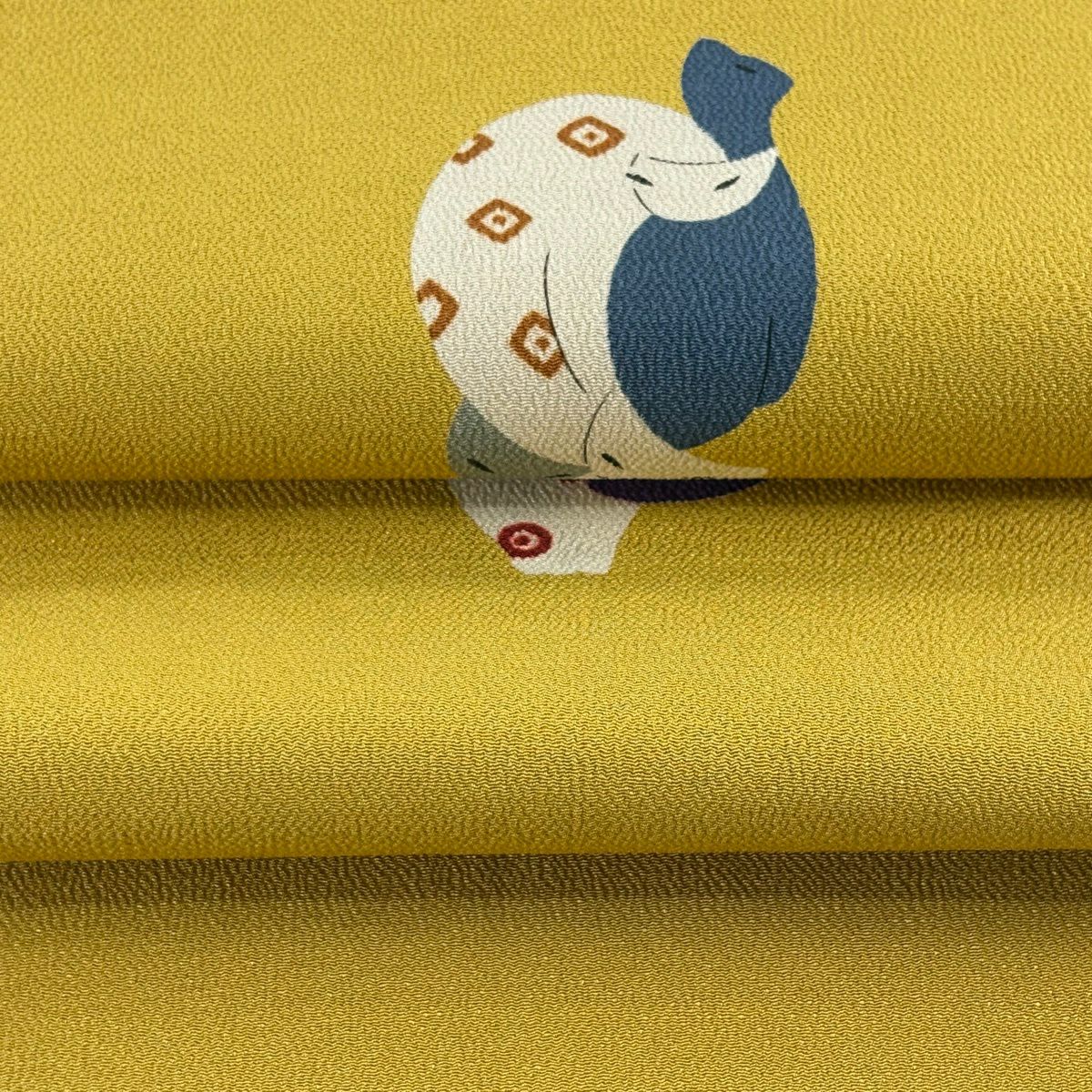 【美品】 名古屋帯 逸品 猫 幾何学 縮緬 からし色 正絹