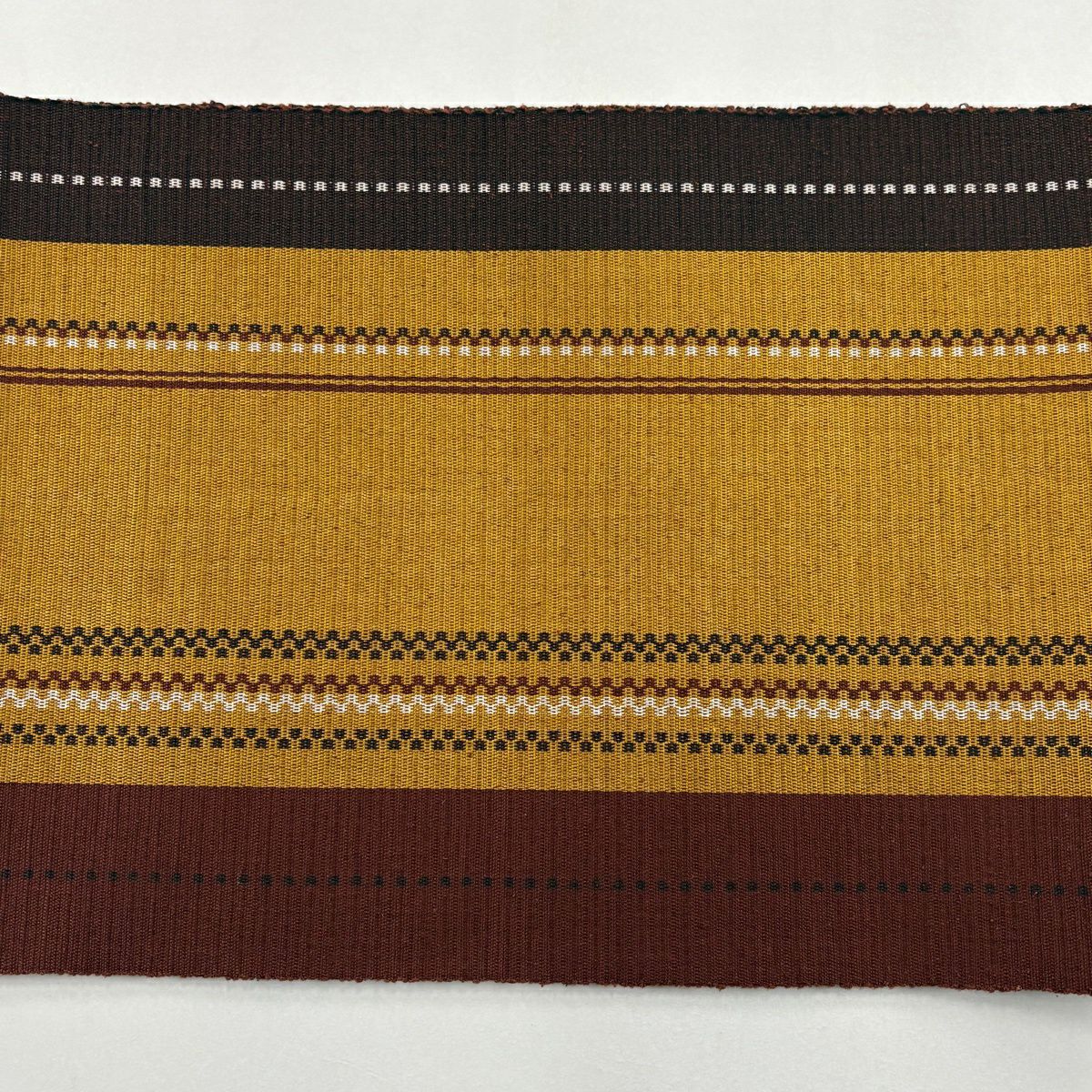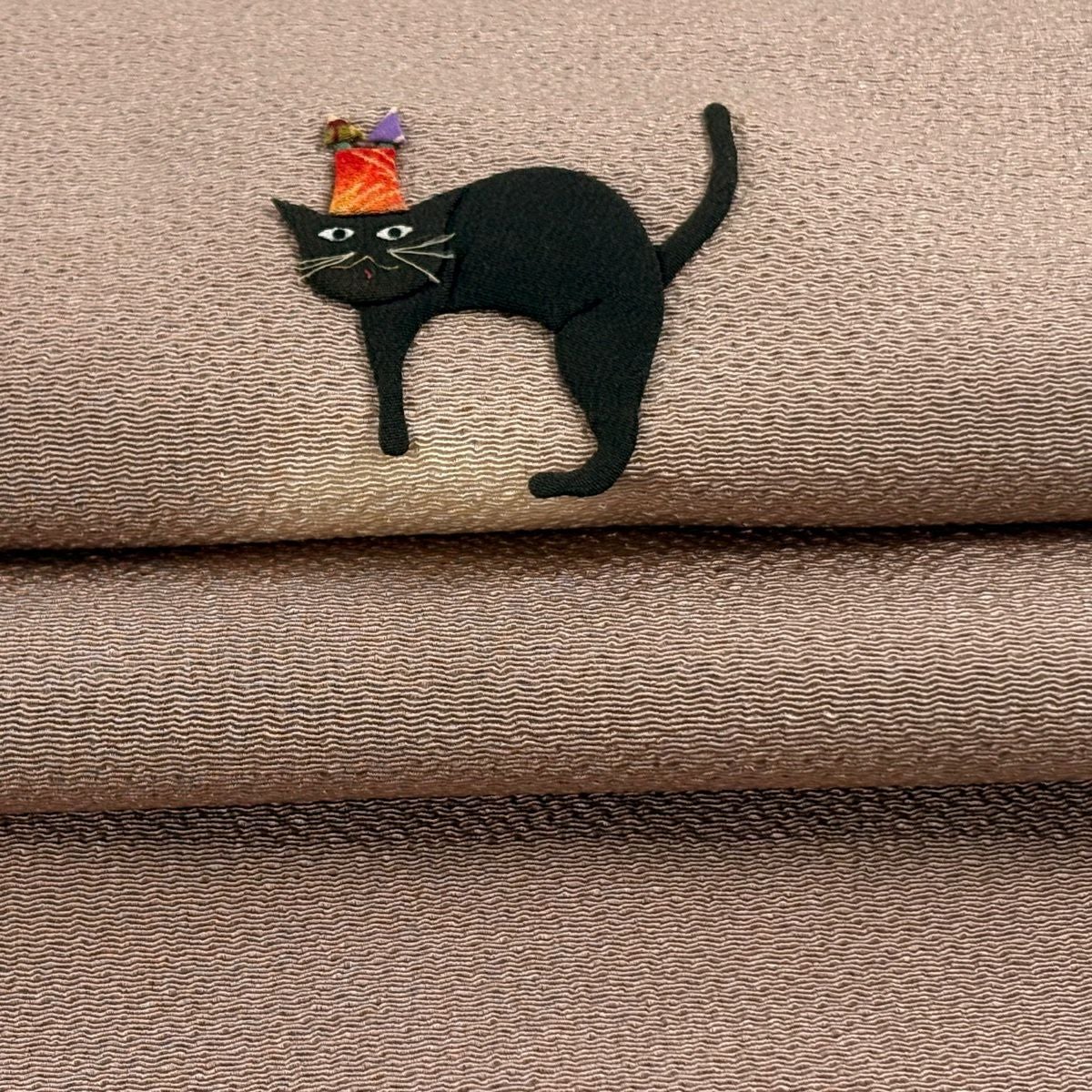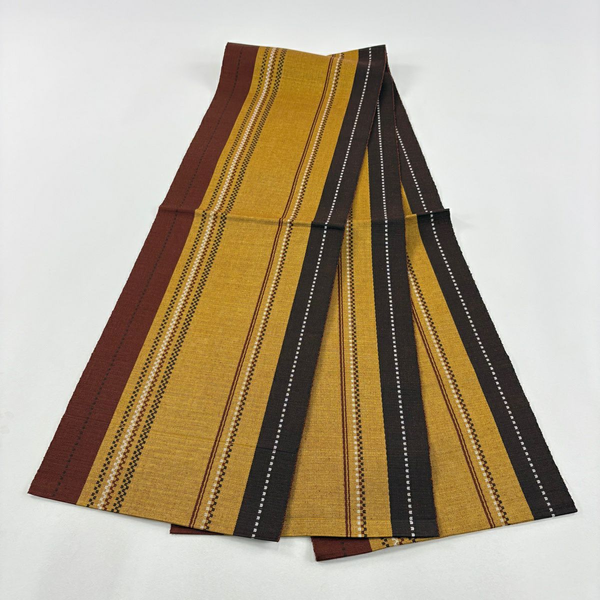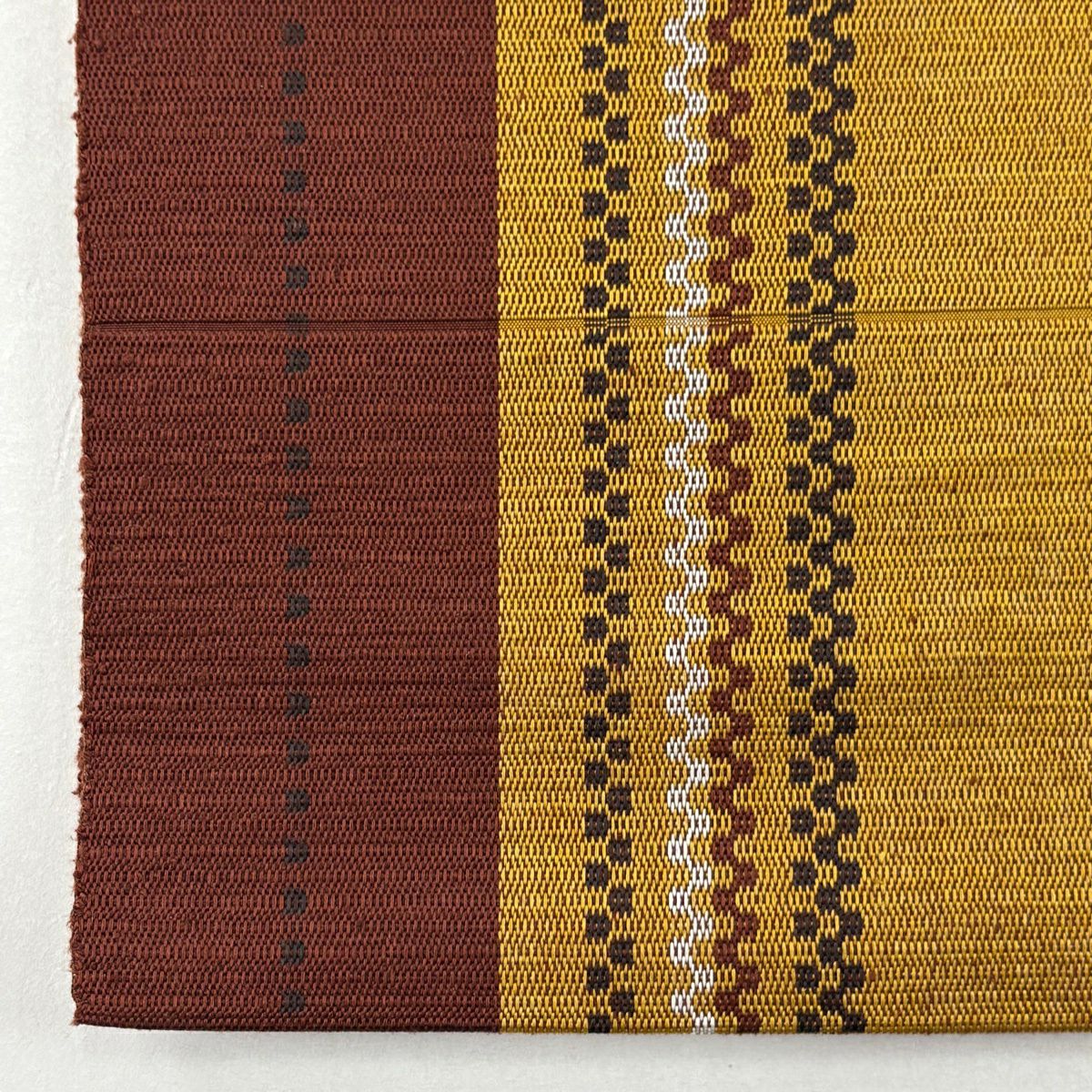 【美品】 名古屋帯 逸品 猫 幾何学 縮緬 からし色 正絹